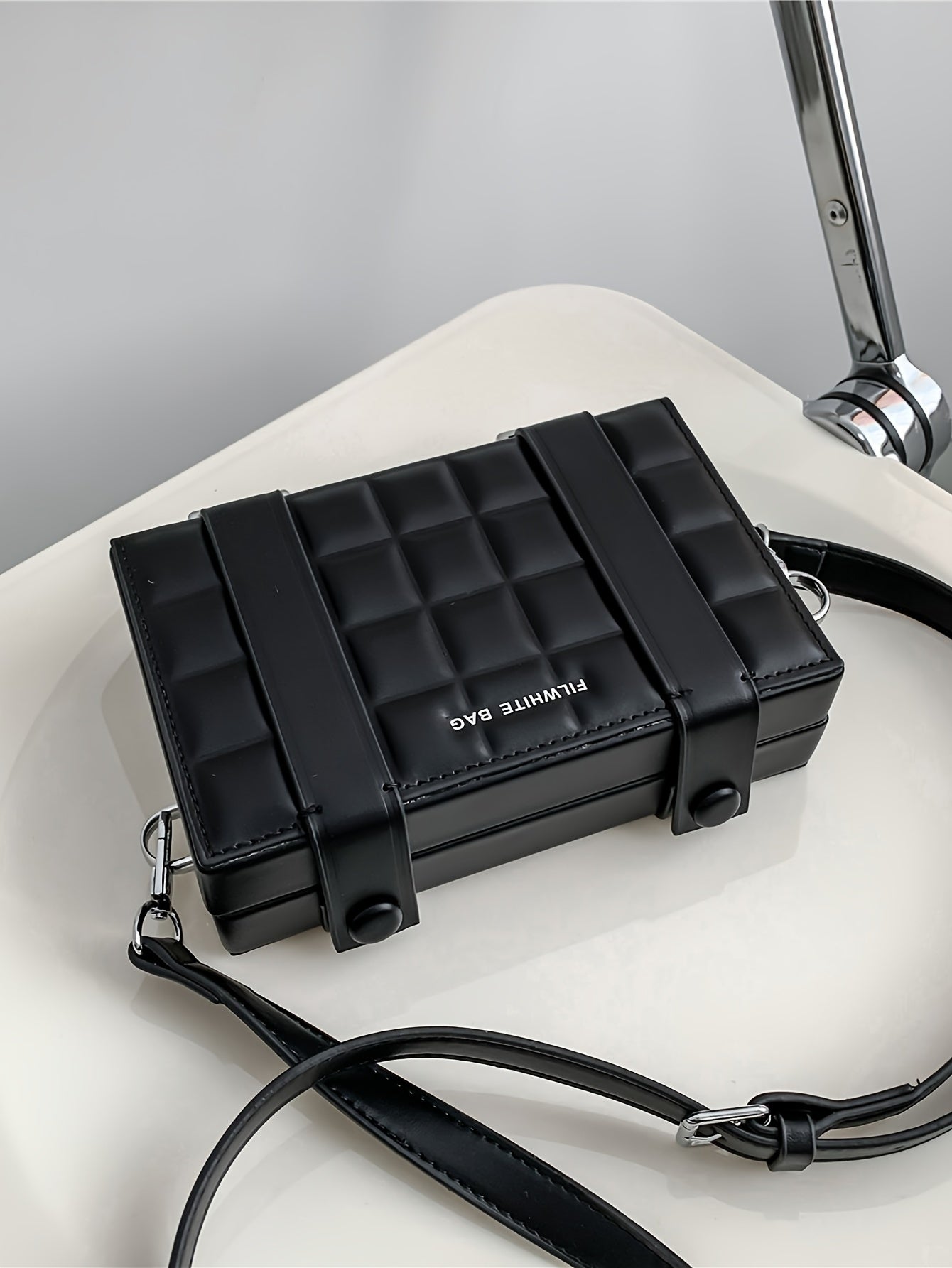 [Business Essential] Stylish Men’s Mini Box Crossbody Bag - Black, Adjustable Strap, Embossed Design, Compact Square Bag for Travel, Commute Casual Outings, Summer Day Bag Sporty Style Bag Durable