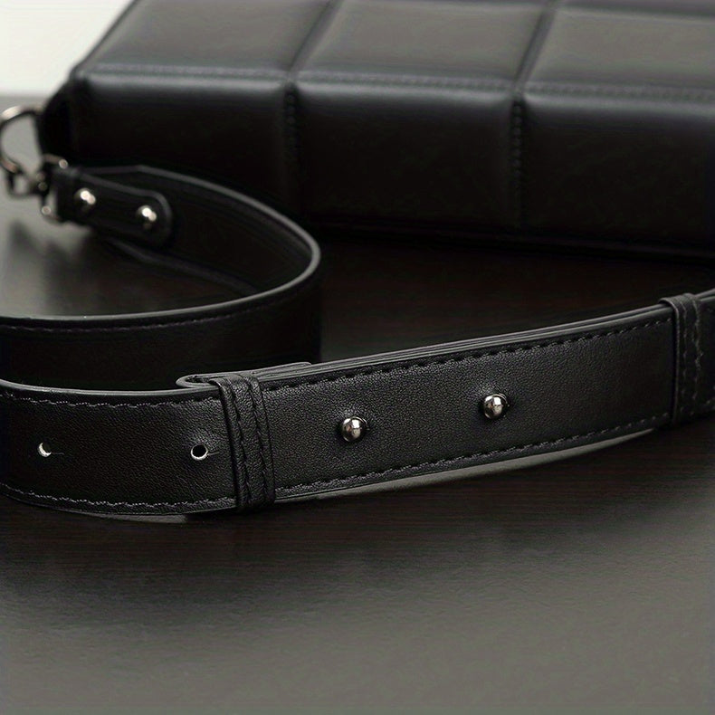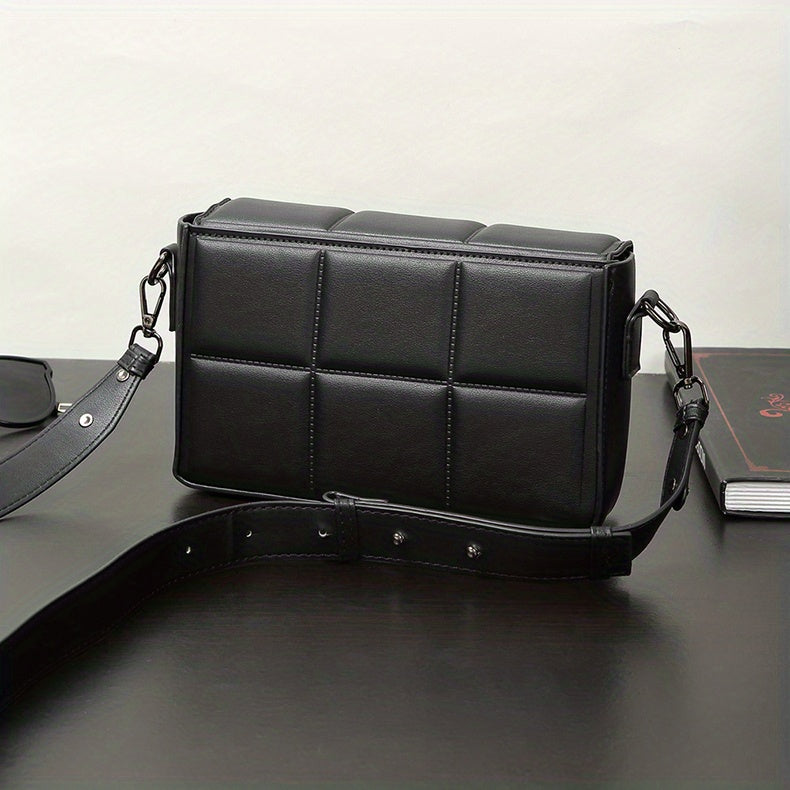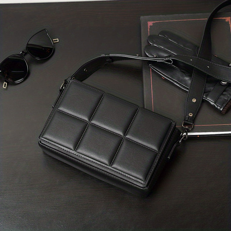 caivektine Men's Stylish Black Crossbody Bag - Adjustable Strap, Quilted Grid Design, Casual Business Shoulder Bag for Everyday Outings, Casual Business Bag Sleek Modern Bag Adjustable Strap Bag, Small Crossbody Bag