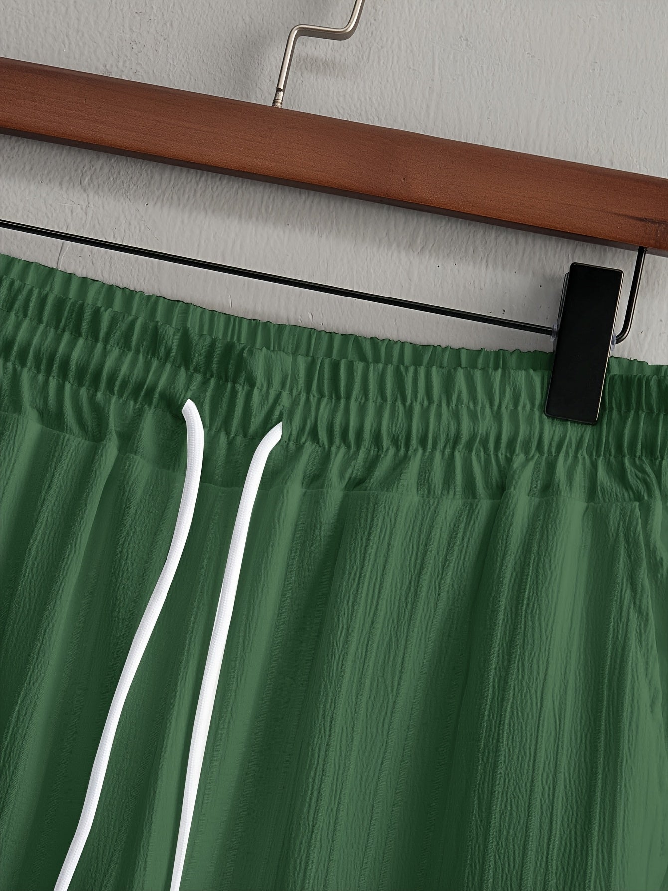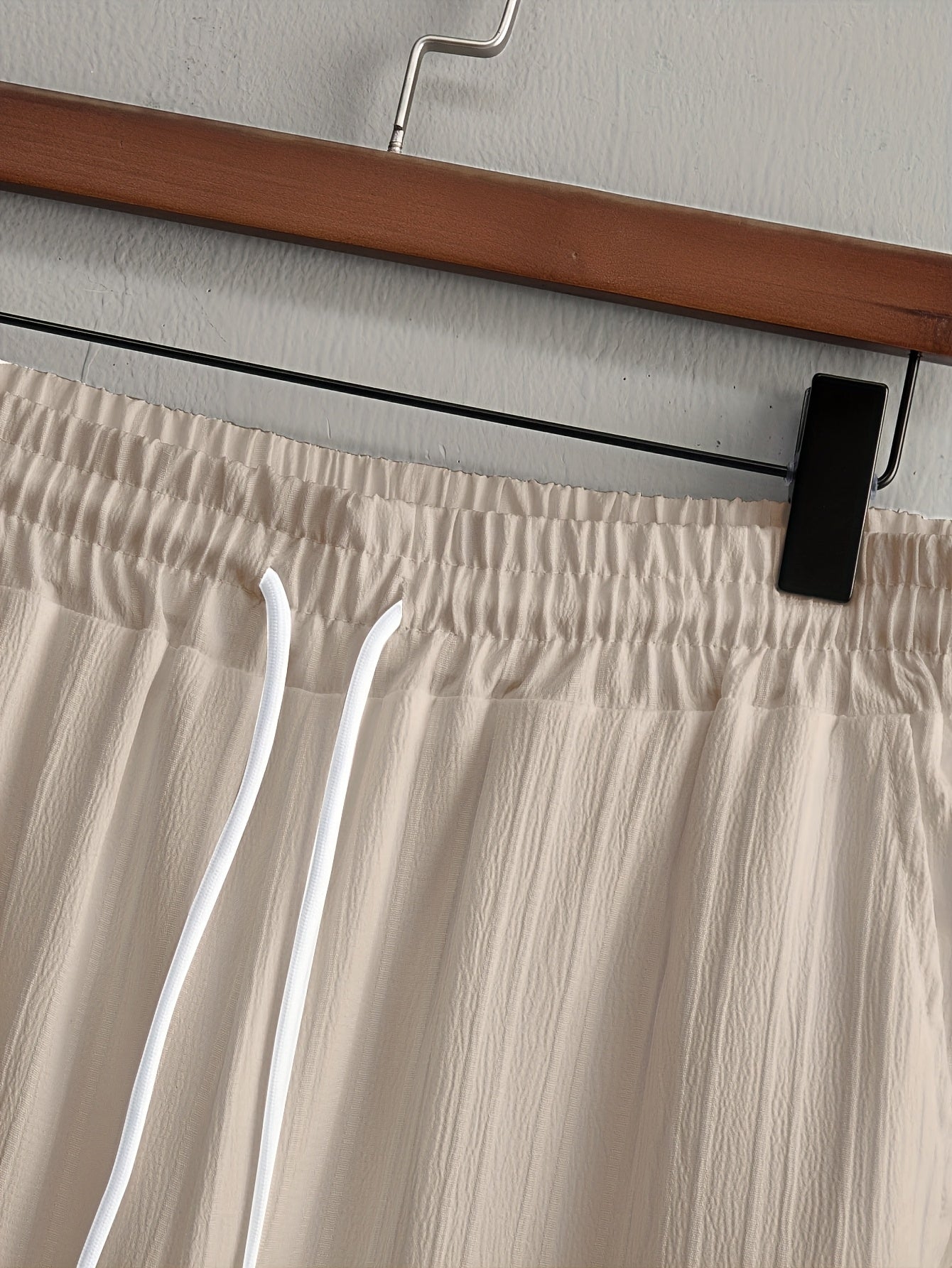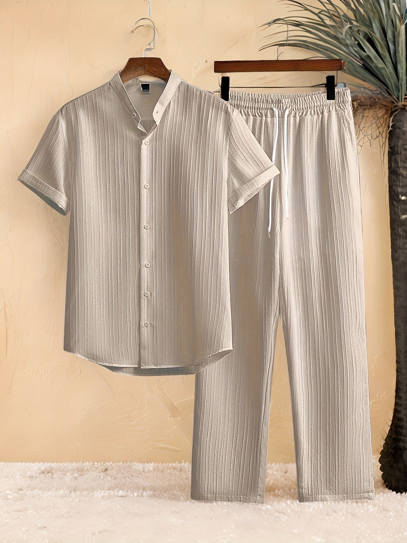 Casual 2pcs Set: Short Sleeve Stand Collar Shirt + Tie Straight Leg Pants, Suitable for Vacation Beach Outdoor Leisure Party