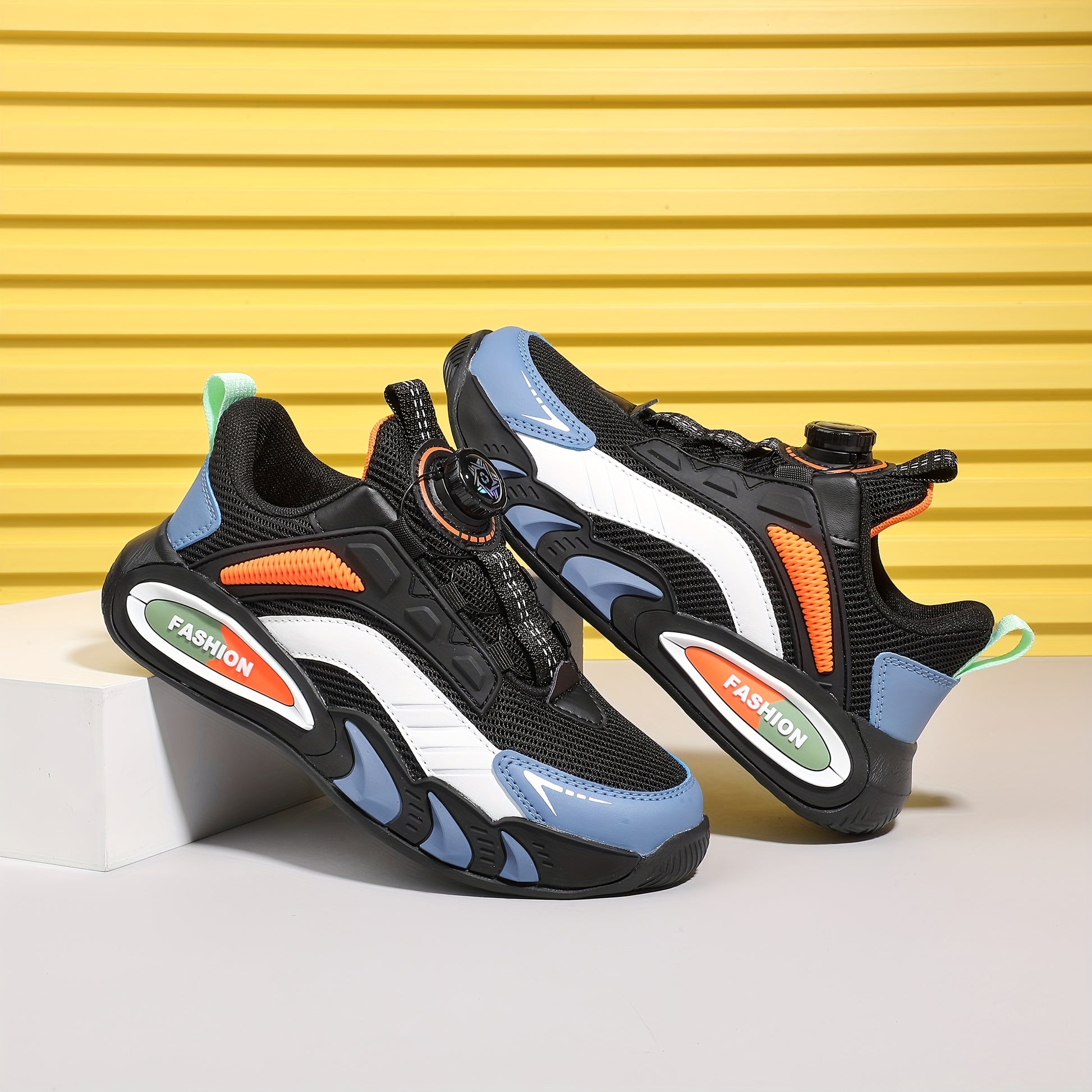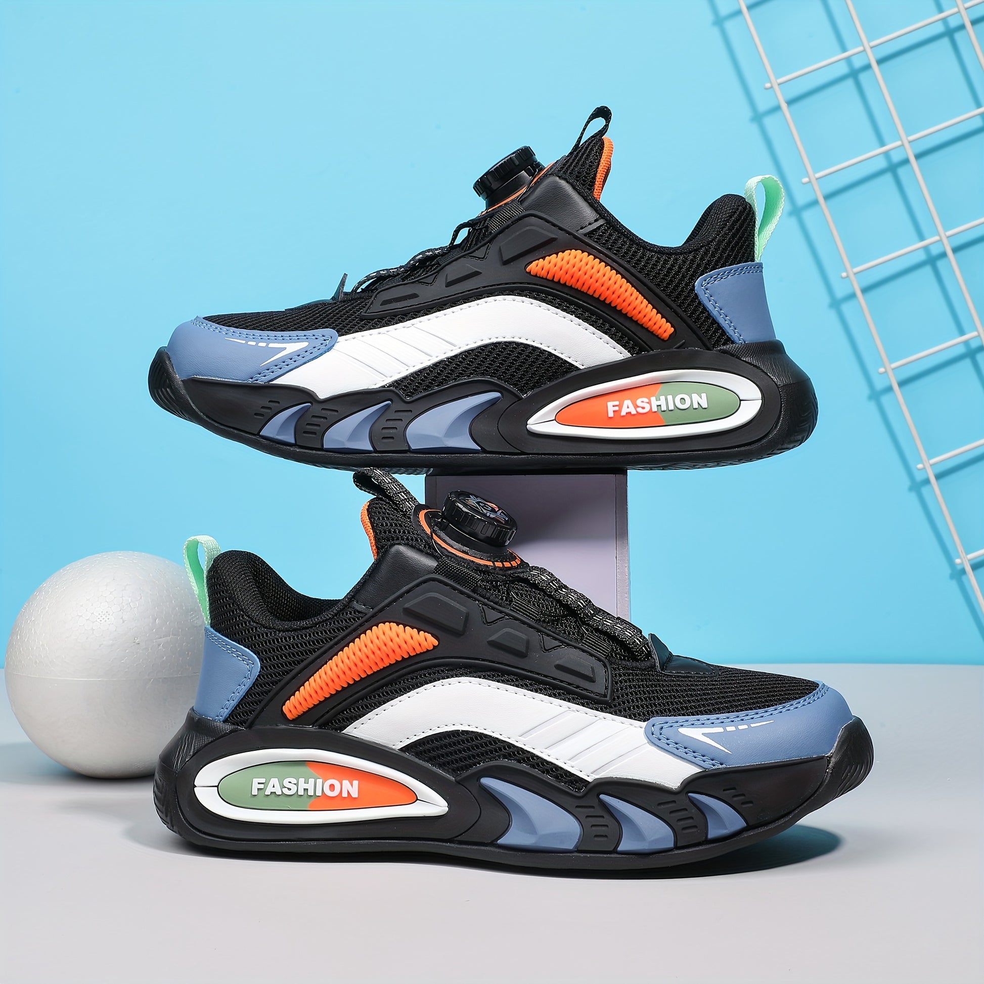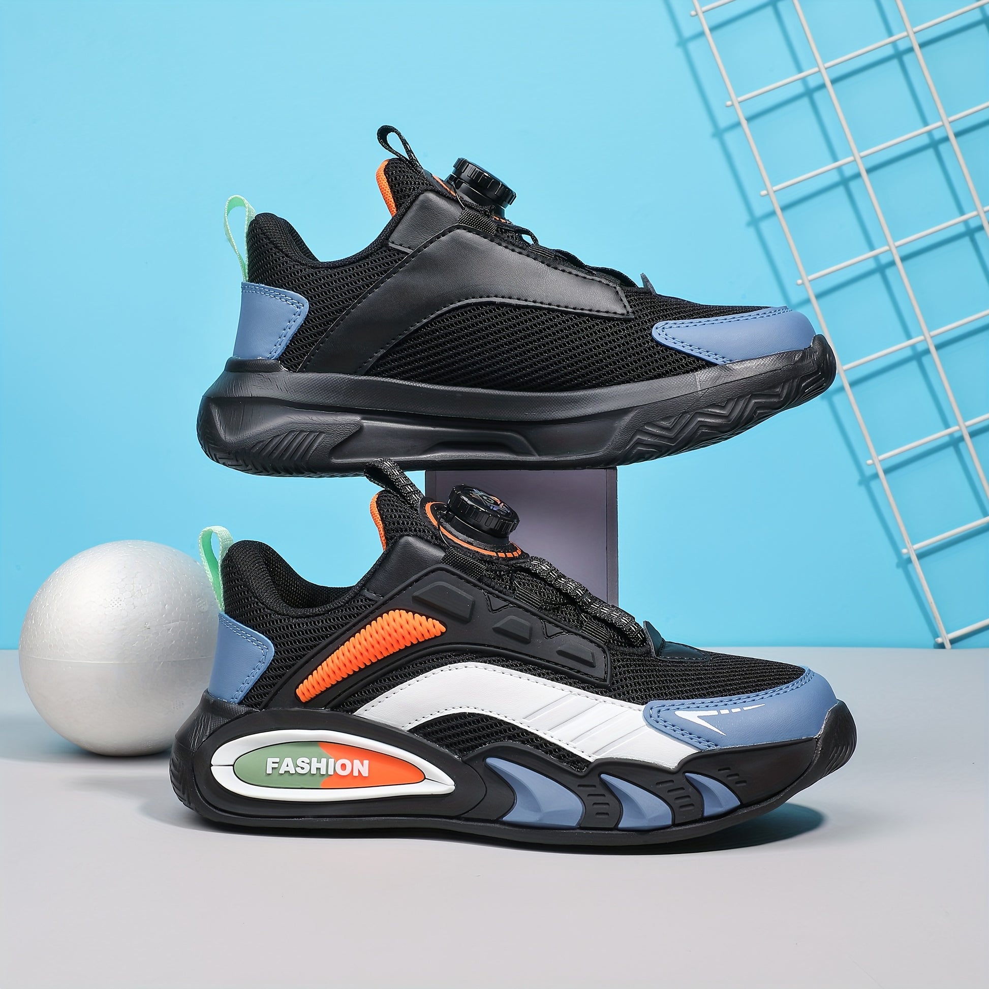 Casual Cool Low Top Sneakers With Rotating Button For Boys, Breathable Shock-absorbing Running Shoes For Spring Summer Autumn