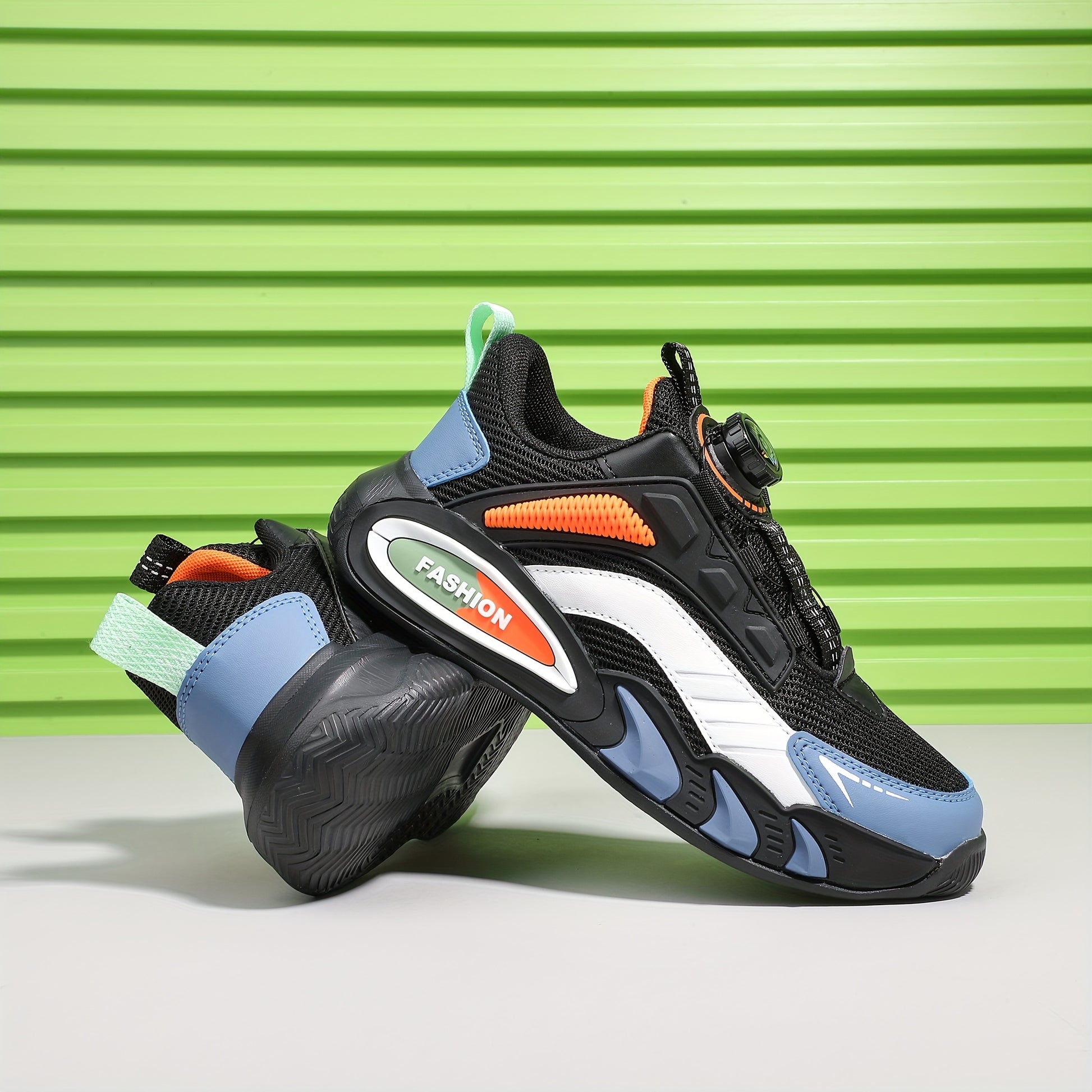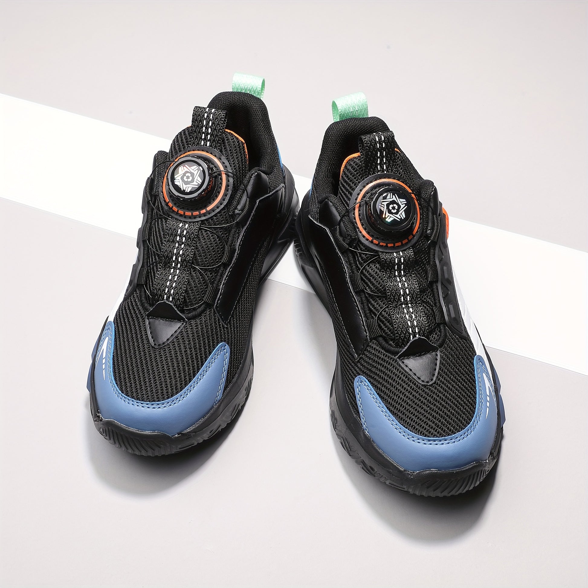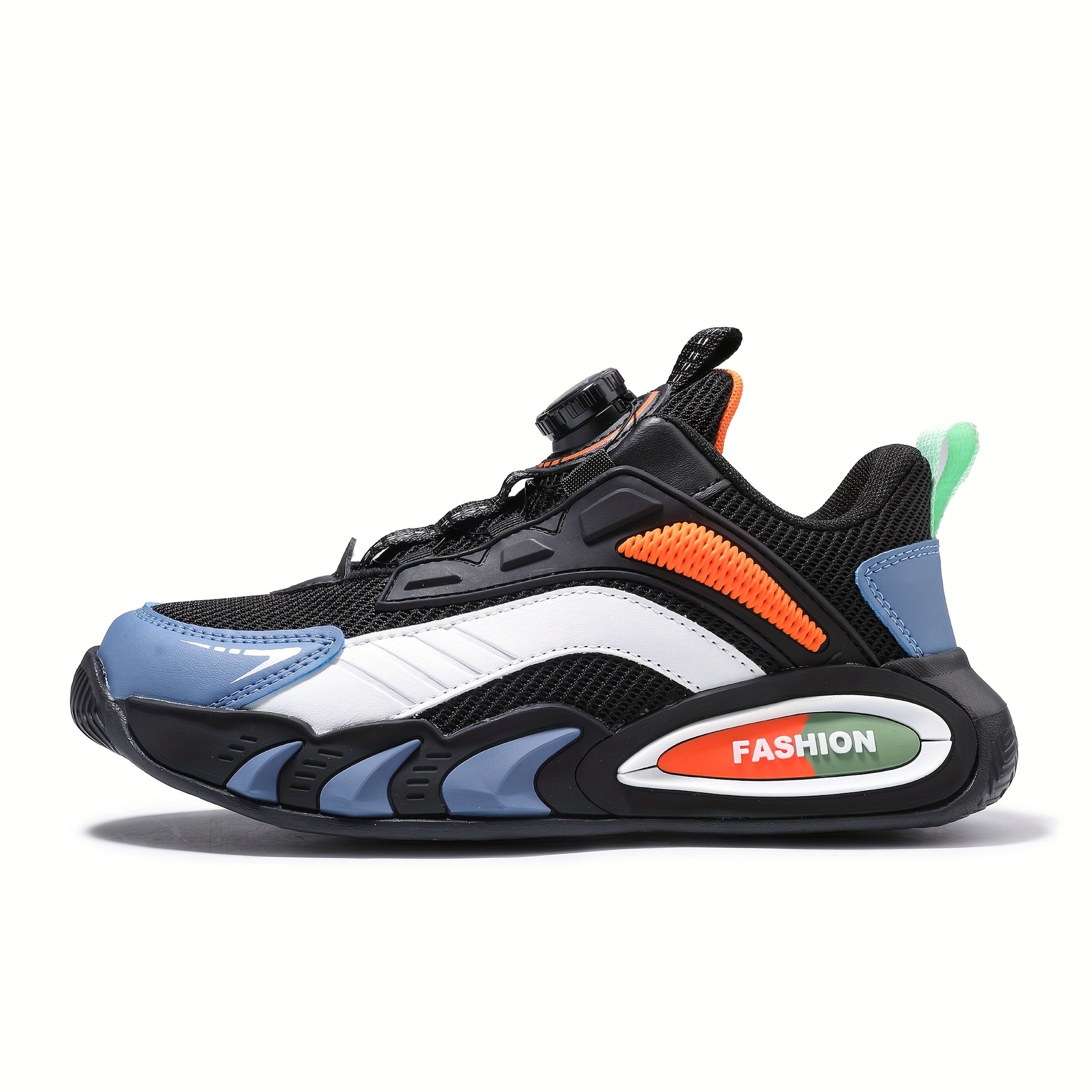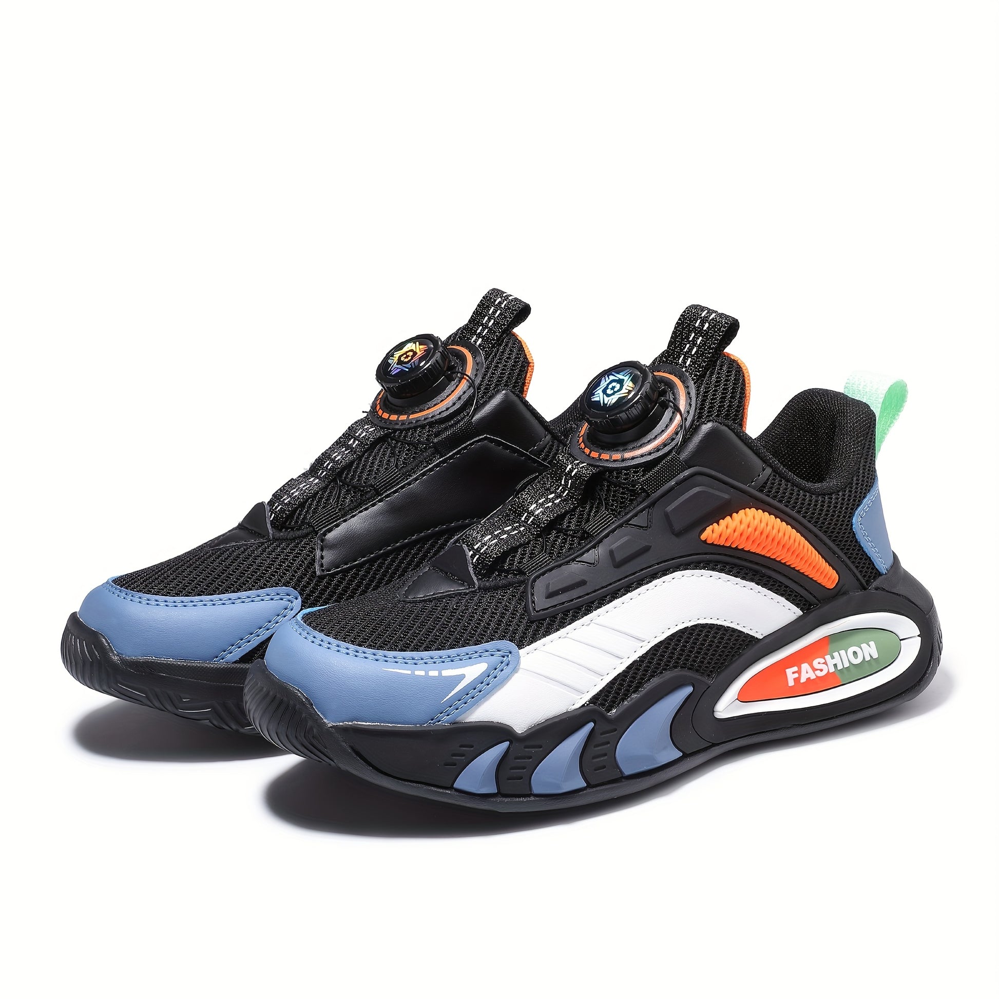 Casual Cool Low Top Sneakers With Rotating Button For Boys, Breathable Shock-absorbing Running Shoes For Spring Summer Autumn