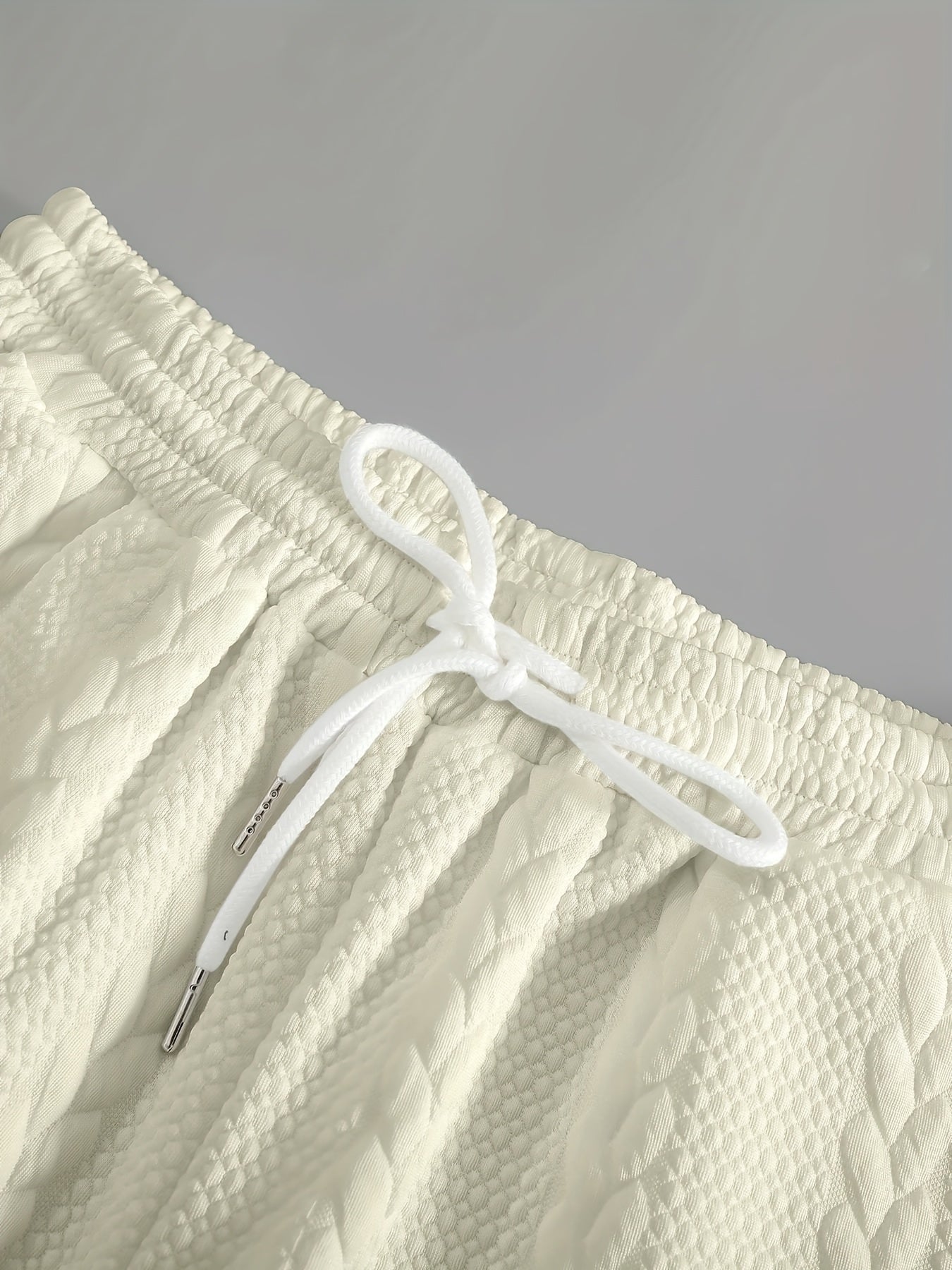 Casual Crew Neck Short Sleeve T-Shirt & Drawstring Shorts - Brown, Summer Outfit