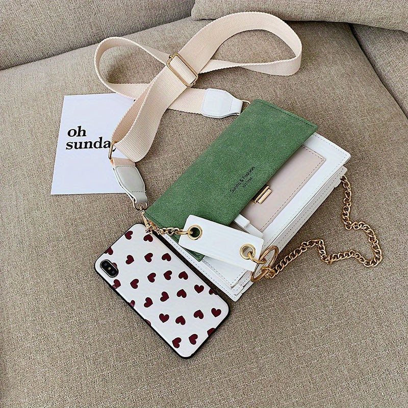 Chic Mini Crossbody Bag for Women - Stylish Synthetic Faux Leather with Golden Chain Strap, Buckle Closure, and Decorative Painted Edges - Perfect for Phone & Essentials