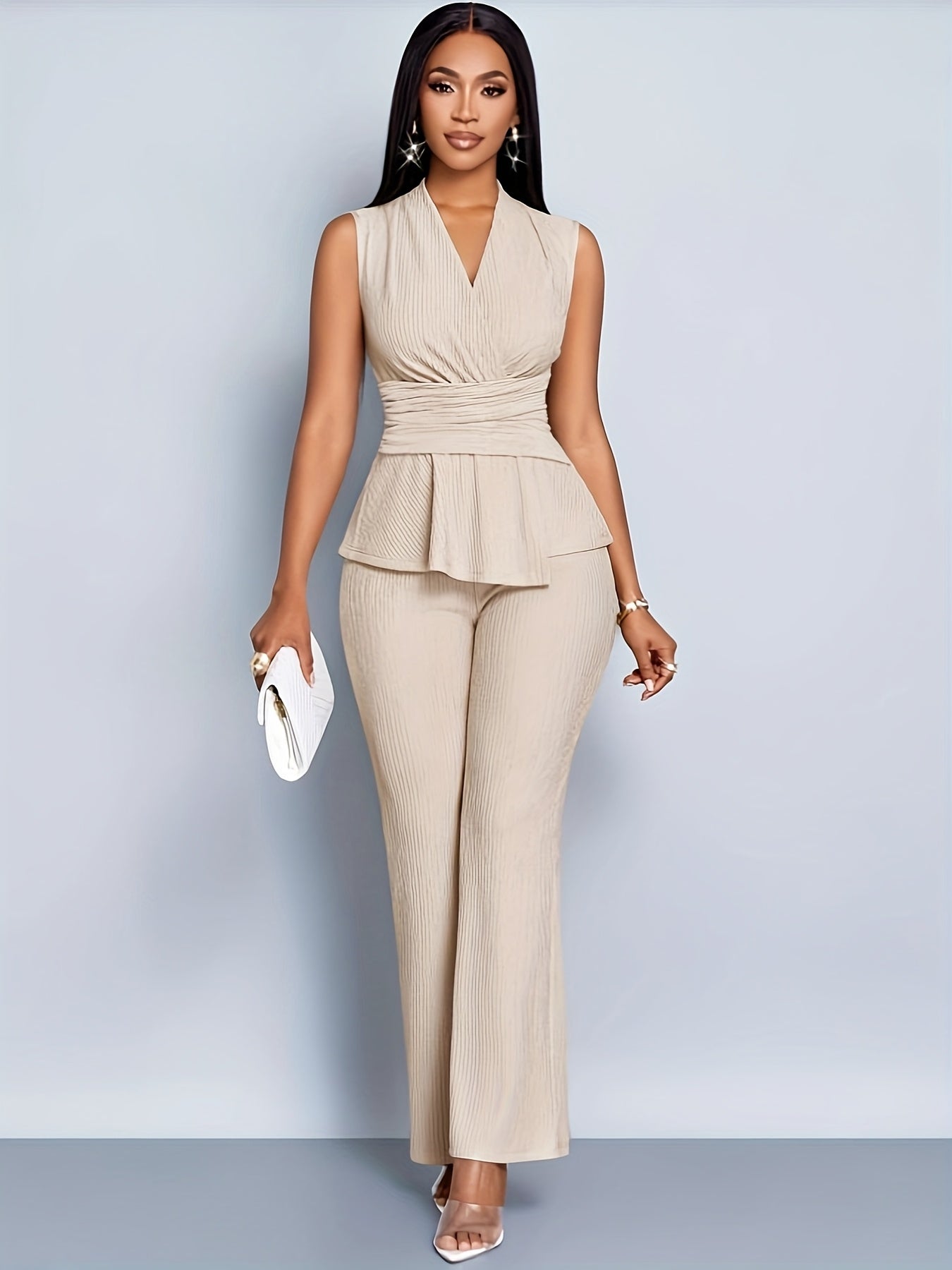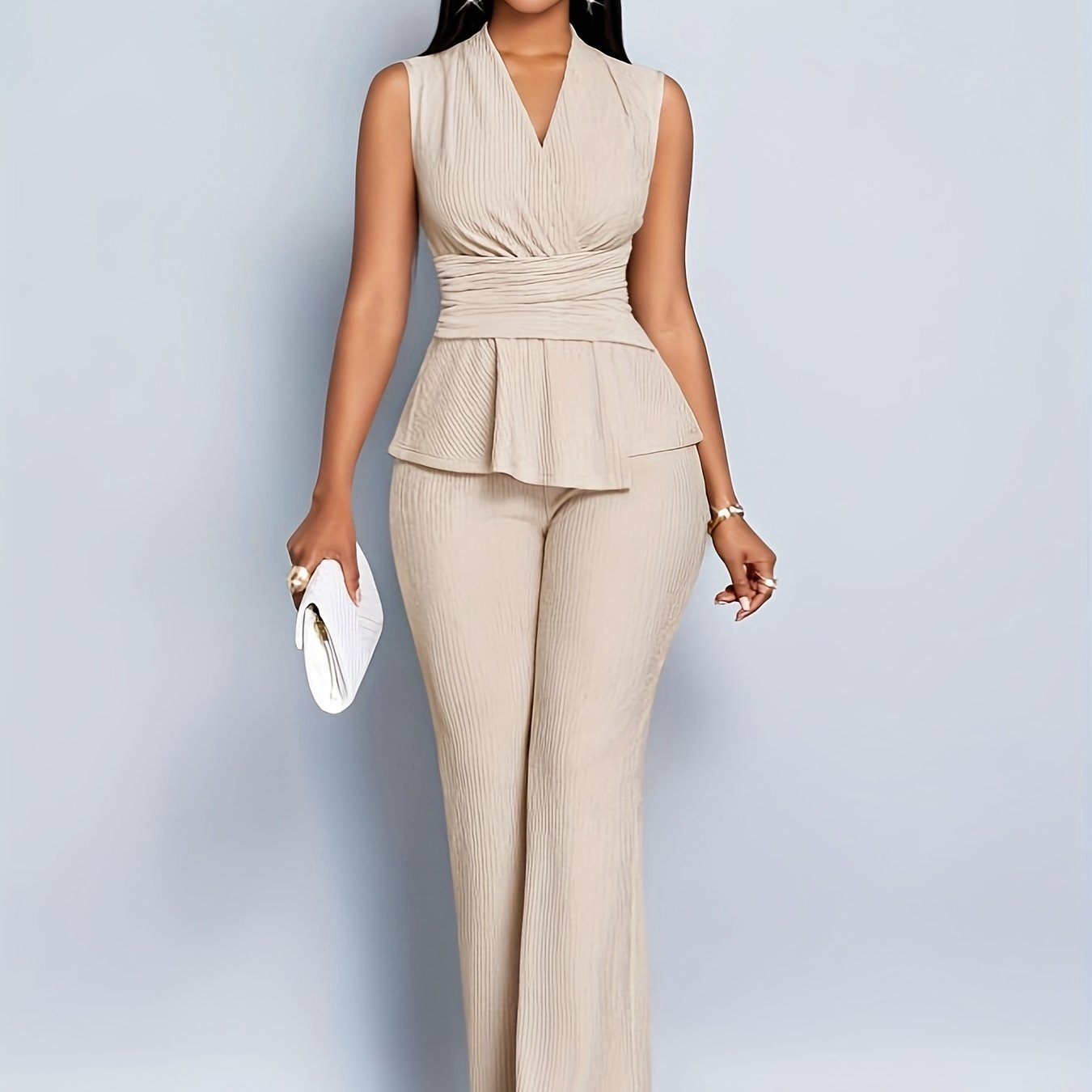 Chic V-Neck T-Shirt and Wide-Leg Pants Two-Piece Set with Asymmetrical Hem Casual Women's Spring and Summer Sleeveless Short-Sleeve Outfit