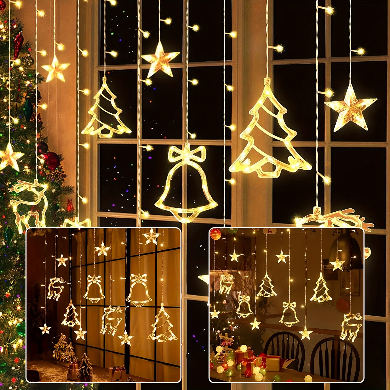 Christmas Decoration Icicle Curtain Lights, Window Wall Hanging String Light, USB Plug in Bell/Reindeer Fairy Lamp, Halloween/Ramadan Decor for Bedroom Living Room Backdrop Wedding Party Indoor Xmas Tree Dorm Fall Home Decor