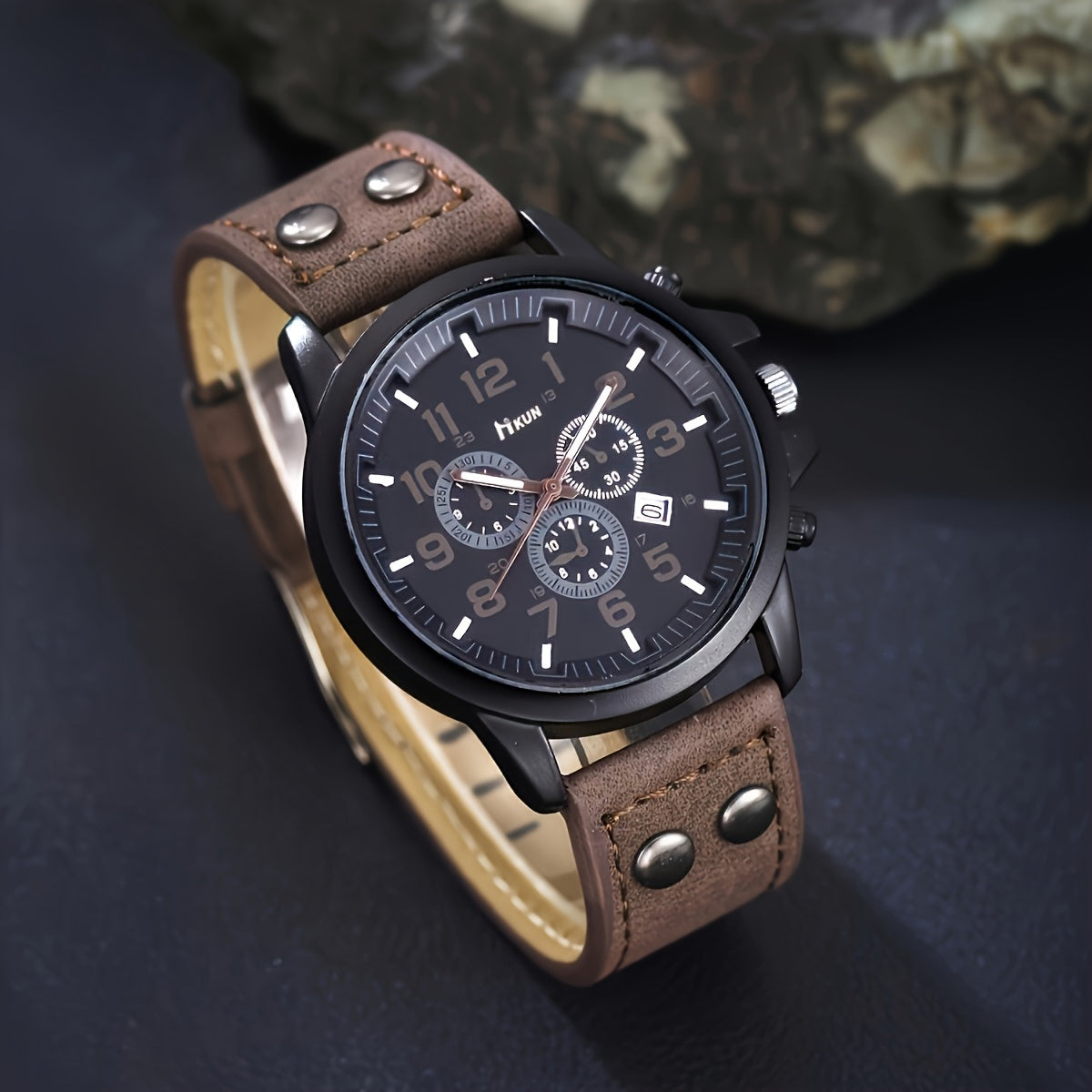 Classic 5pcs Men'S Fashion Casual Luxury Business Watch Set + Cool Fashion Glasses + Simple Wallet Belt Keychain, Perfect Party Holiday Gift