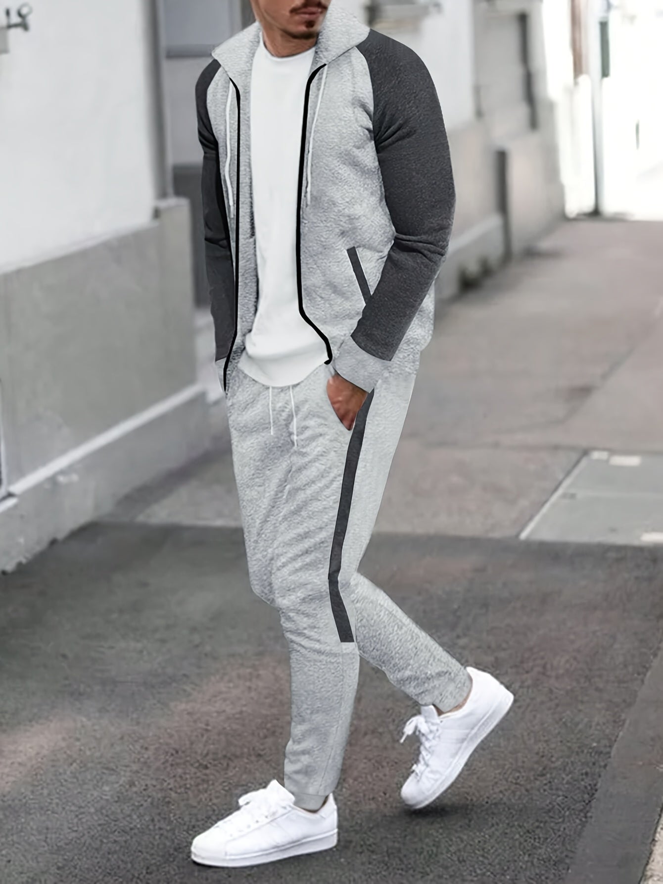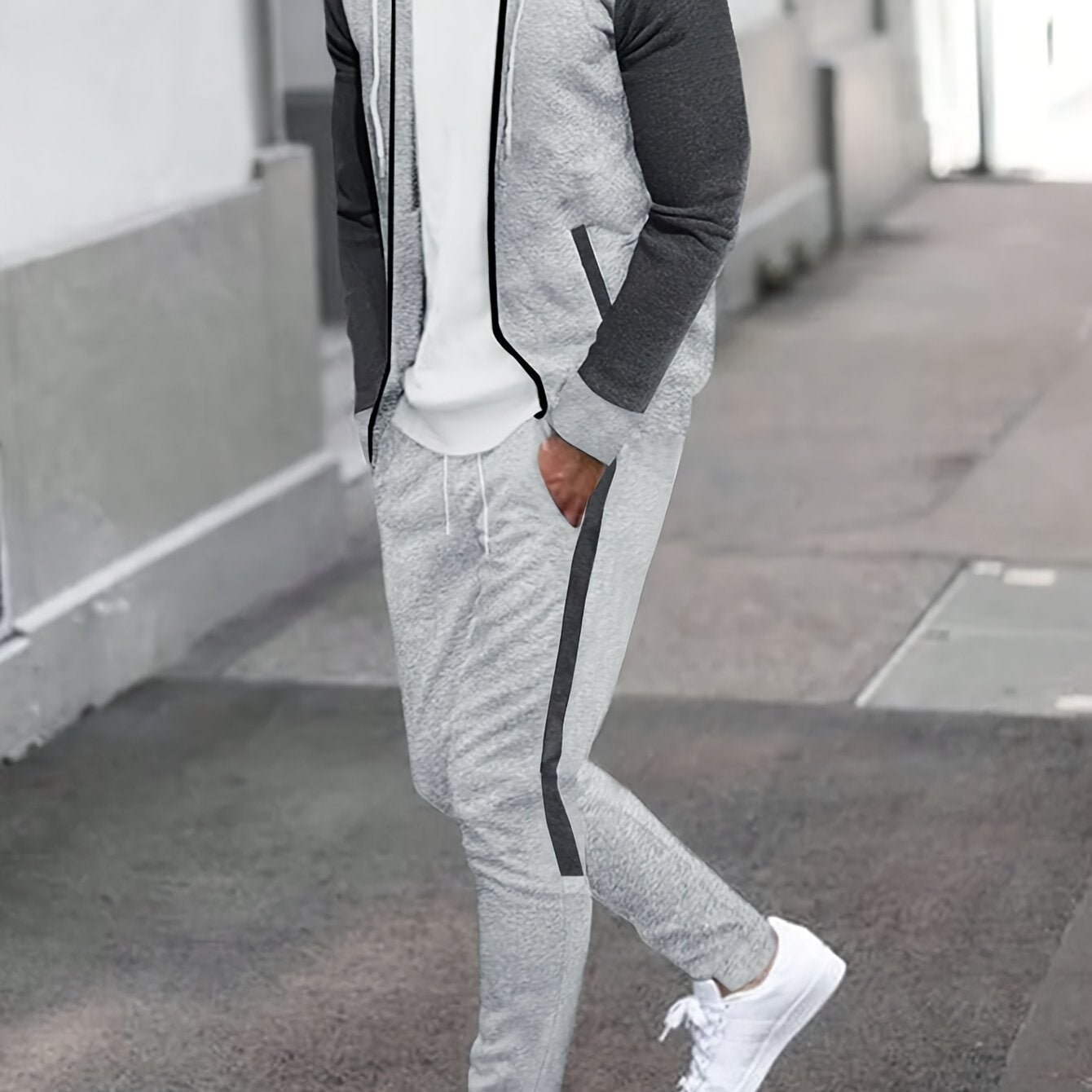 Classic Men's Athletic 2Pcs Color Block Tracksuit Set Casual Full-Zip Sweatsuits Long Sleeve Hoodie And Jogging Pants Set For Gym Workout Running