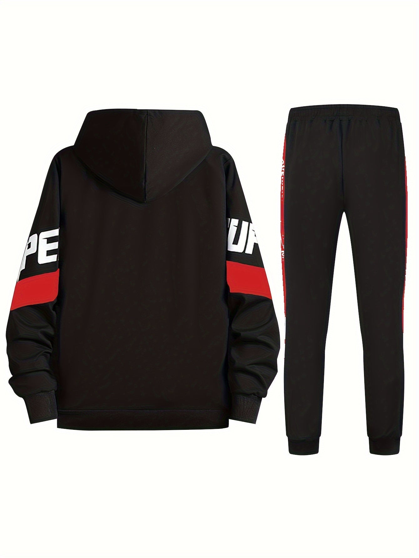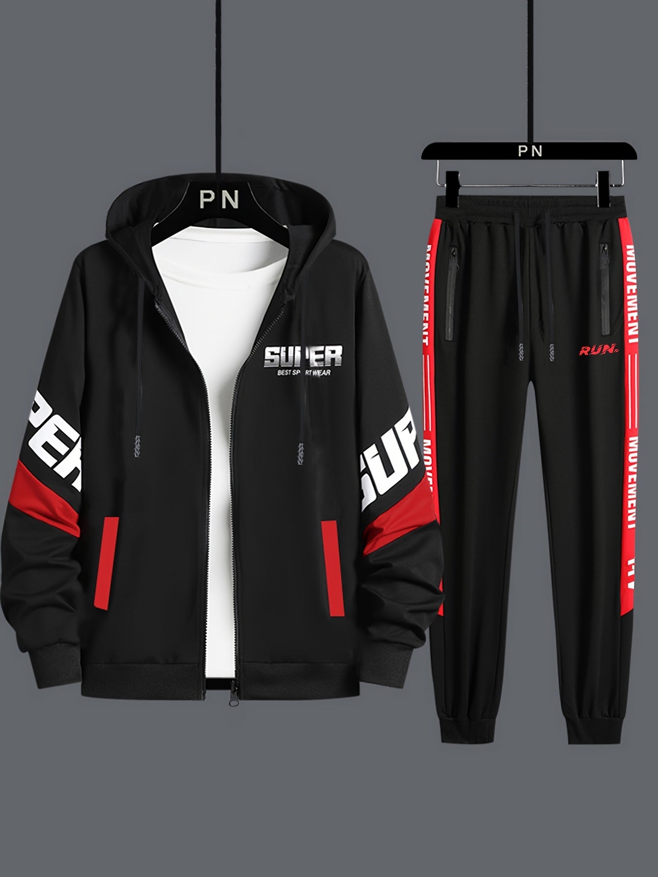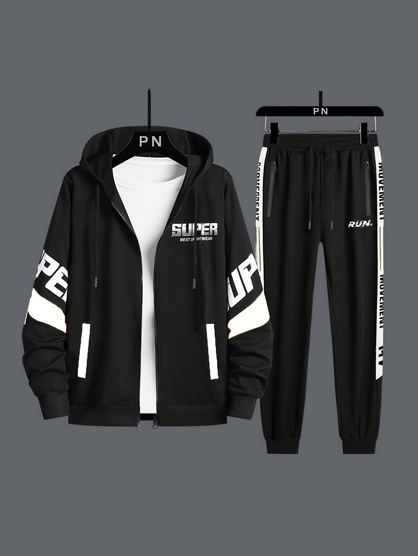 Classic Men's Athletic 2Pcs Tracksuit Set Casual Full-Zip Sweatsuits Long Sleeve Hoodie And Jogging Pants Set For Gym Workout Running