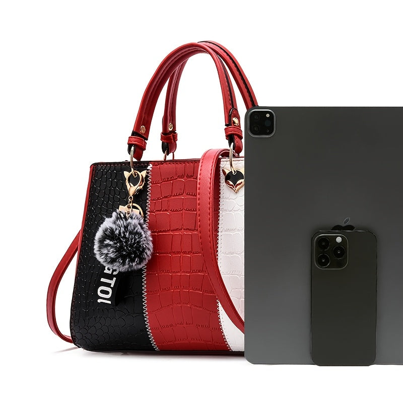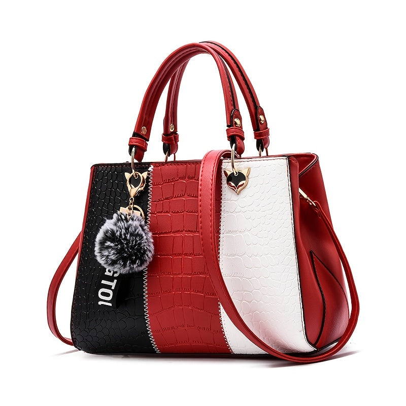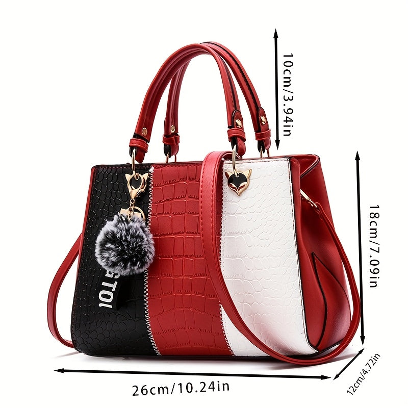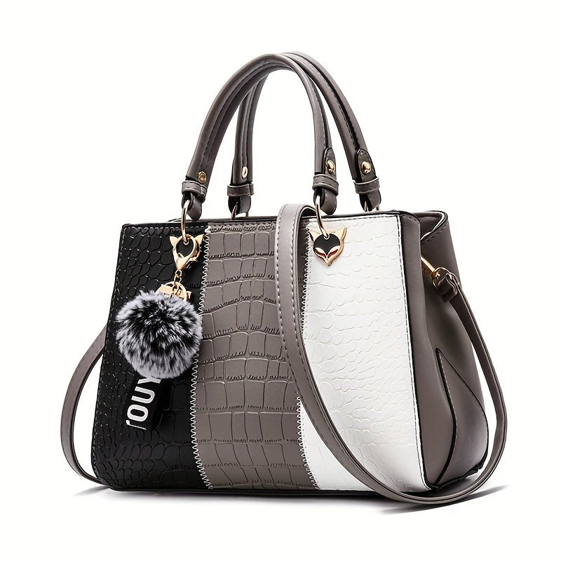 Cocogigi Elegant Women'S Crocodile Pattern Handbag with Removable Strap, Large Capacity, Black & White Design, Stylish Handbag for Mom, Friend, Or Gift, Crocodile Texture