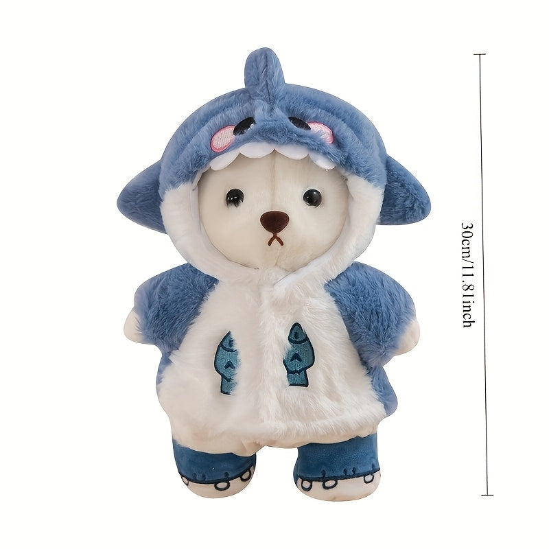 Cute White Teddy Bear Plush Toy with Blue and White Outfit | Soft Stuffed Doll with Coat and Shoes, Creative Gift, Home Decor, Game Filled Animal Series
