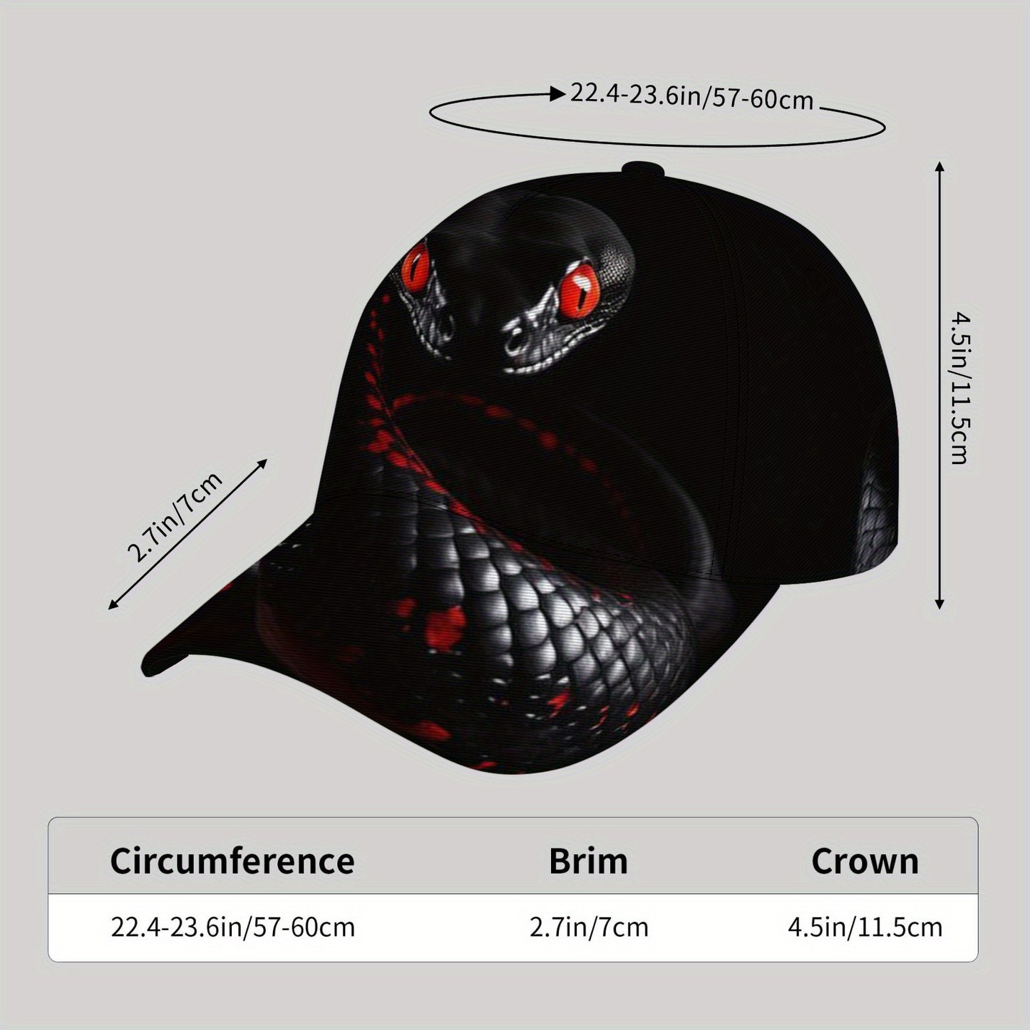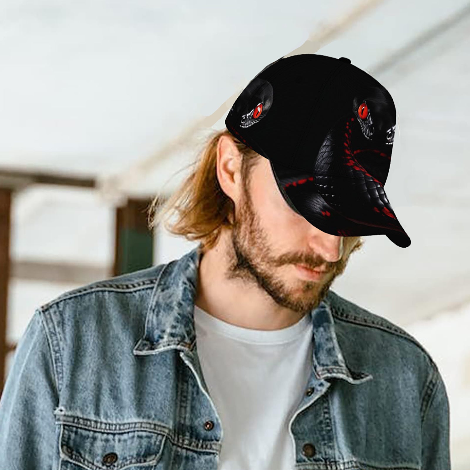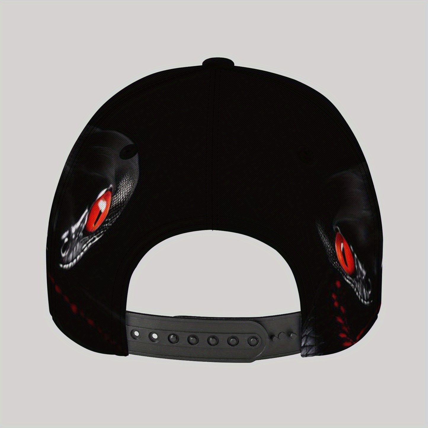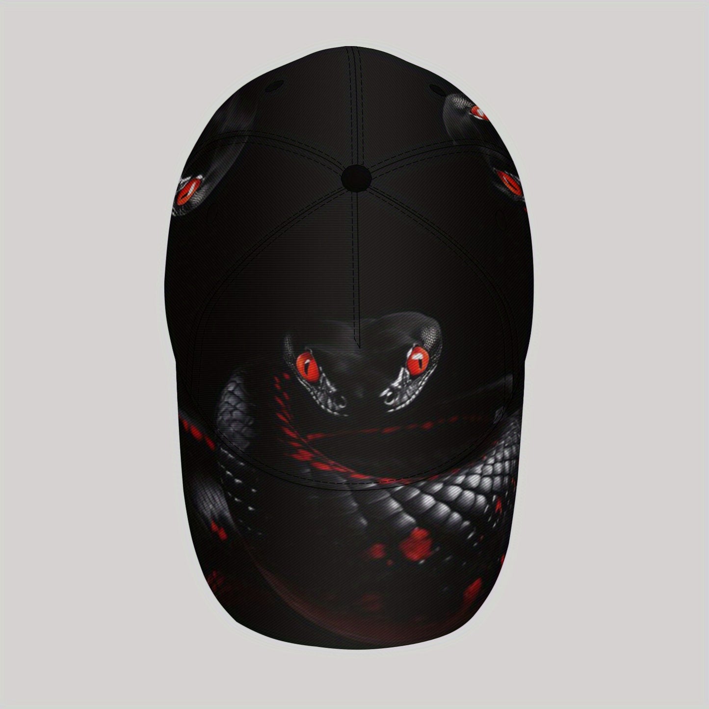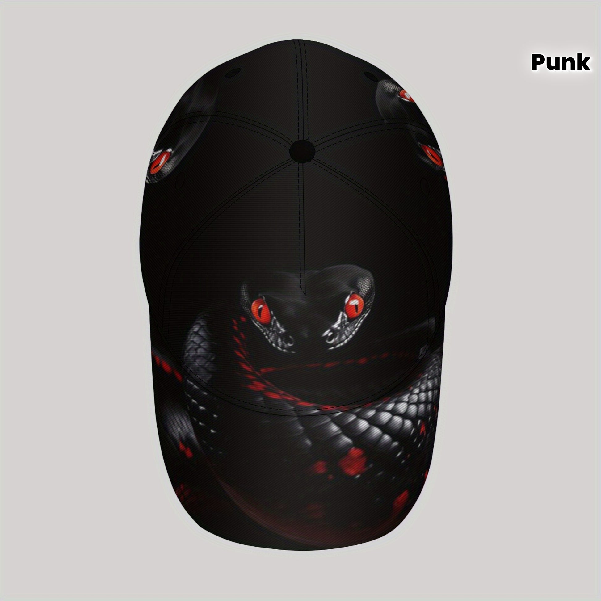 CUTEHSJ Men's Punk Rock Baseball Cap - Lightweight Adjustable Sun Hat with Red Snake Graphic, Black & Red Contrast Design for Beach, Fishing, Outdoor Activities & Vacation, Stylish Headgear