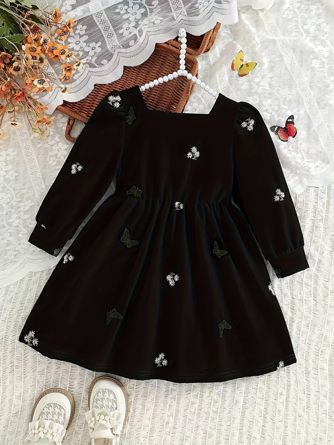 Dreamy Party Dress for Girls - Sweet 3-D Bow with Playful Embroidered Accents, Long Sleeve Spring/Fall Holiday Gathering Outfit