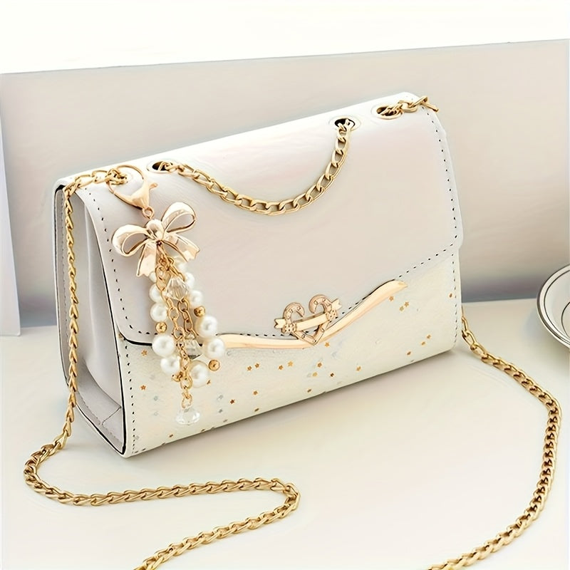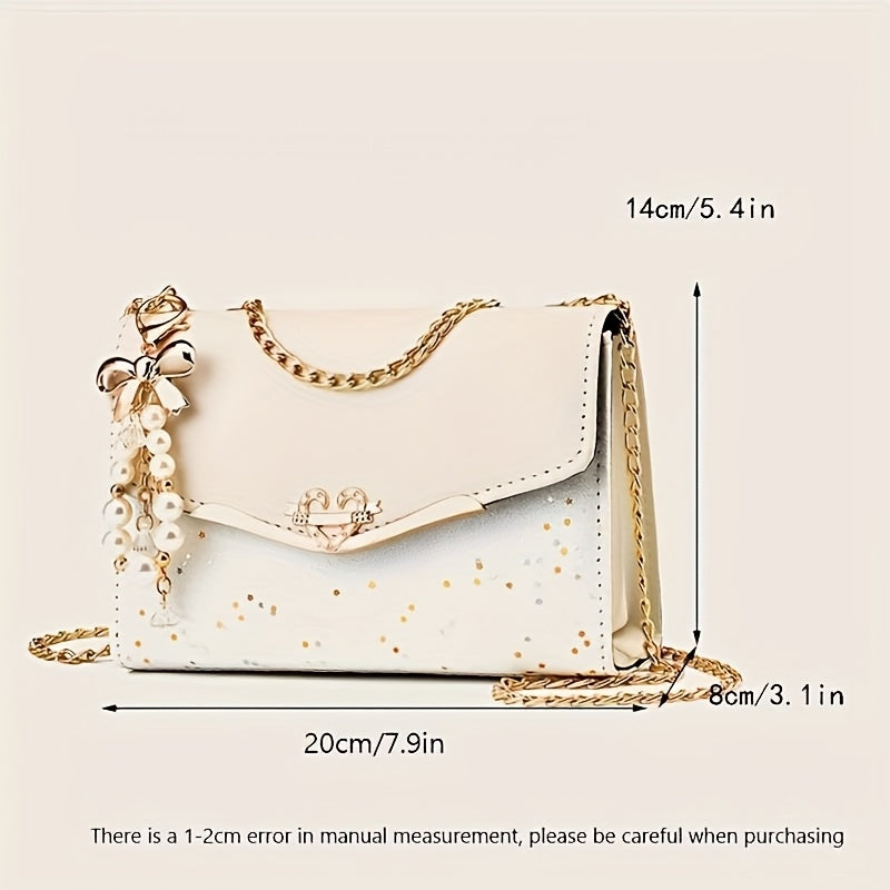 Elegant Bohemian Beige Crossbody Bag with Tassel Charm - Chic Urban Flap Shoulder Bag with Golden Chain Strap, Lightweight & Portable for Shopping, Office, College, Travel - Perfect Gift for Women, Occasion Theme, Valentine'S