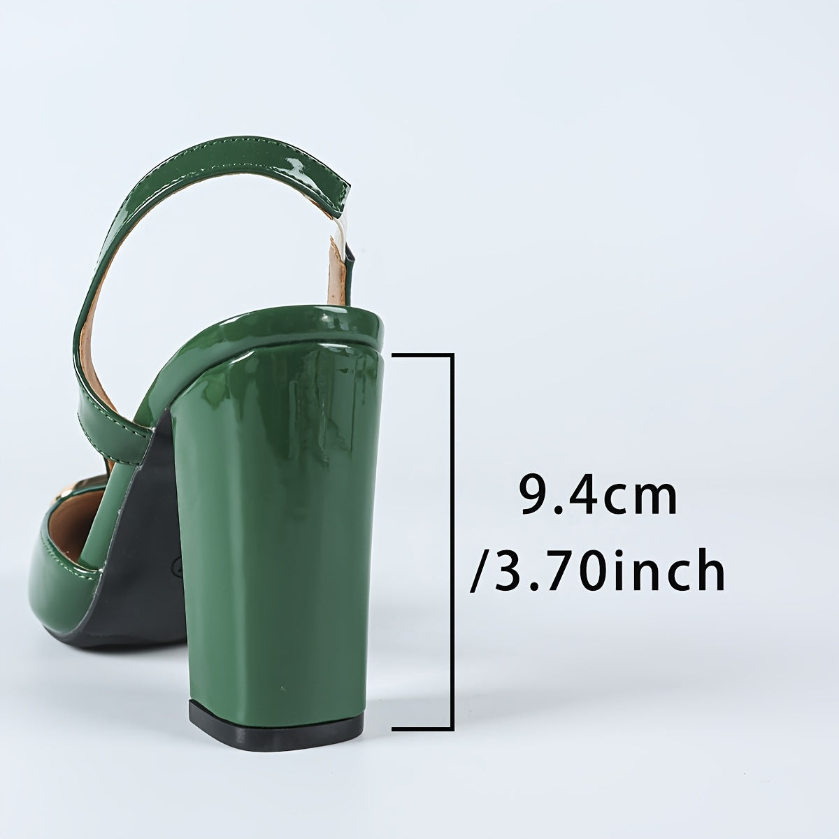 Elegant Green Pointed-Toe High Heels with Golden Buckle - Stylish Chunky Heel Pumps for Weddings, Parties Formal Events, Synthetic Cover TPU Sole, Summer Women'S Footwear