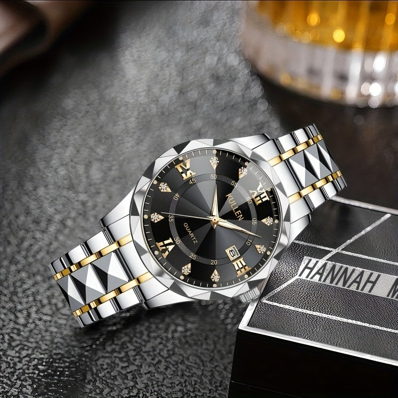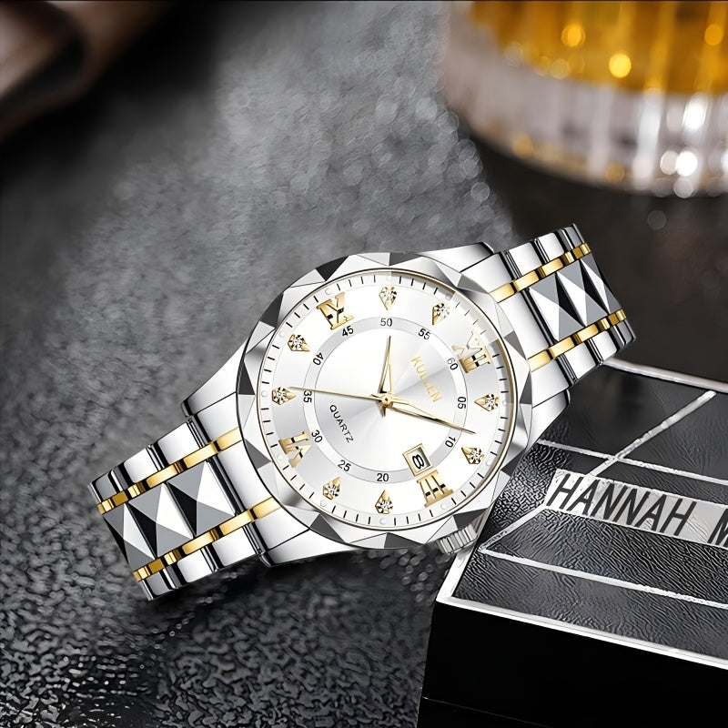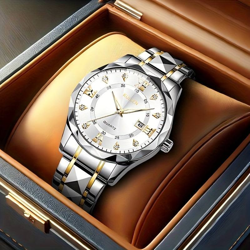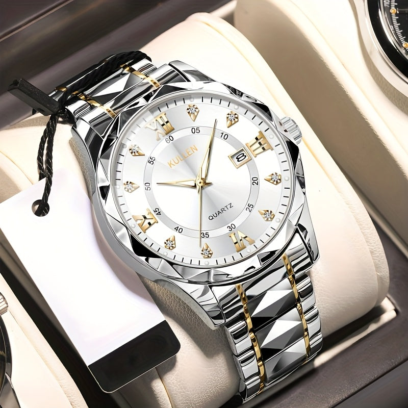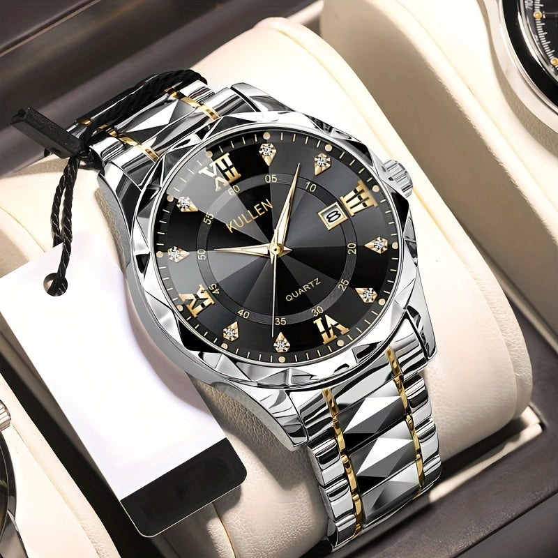 Elegant Men'S Quartz Watch with Stainless Steel Band, Alloy Case & Round Dial - Elegant Timepiece, Ideal for Business Professionals, Perfect Valentine'S Day & Thanksgiving Gift