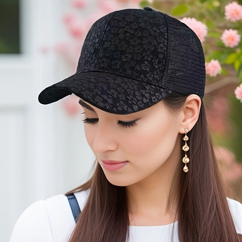 Elegant White Floral Women's Baseball Cap - Adjustable, Breathable Mesh Back, Stylish Duckbill Design for All Seasons, Perfect for Casual Outings and Beach Days, Outdoor Headwear, Adjustable Headgear