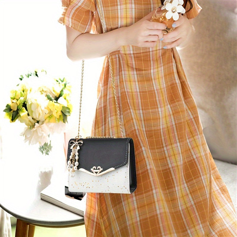 Elegant Women'S Sequin Chain Crossbody Bag - White Shoulder Purse with Golden-Tone Hardware & Decorative Pendant, Perfect for Festivals & Parties, Festival Shoulder Bag | Elegant Chain Strap | Decorative Pendant, Novelty Purs