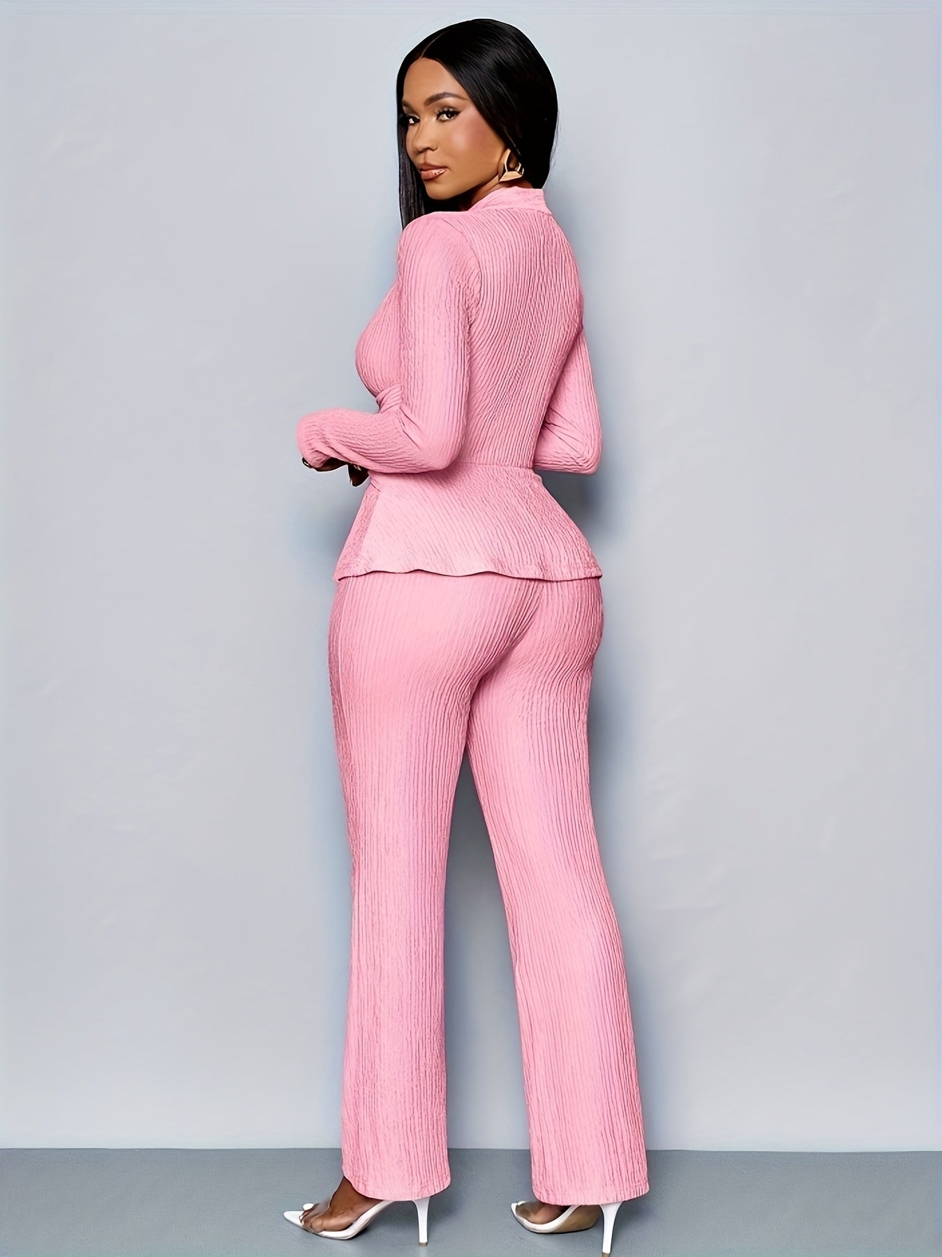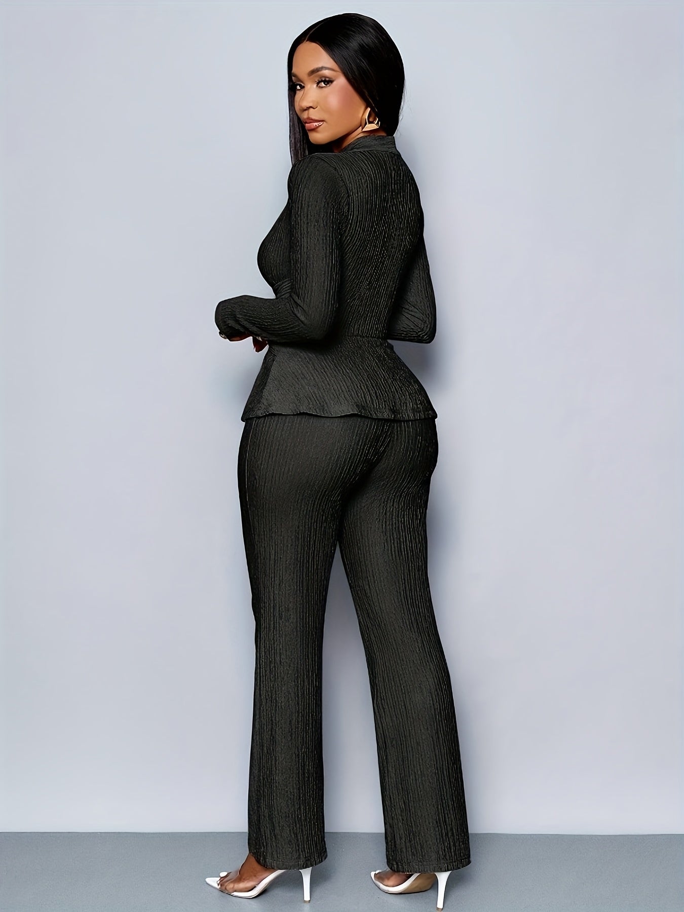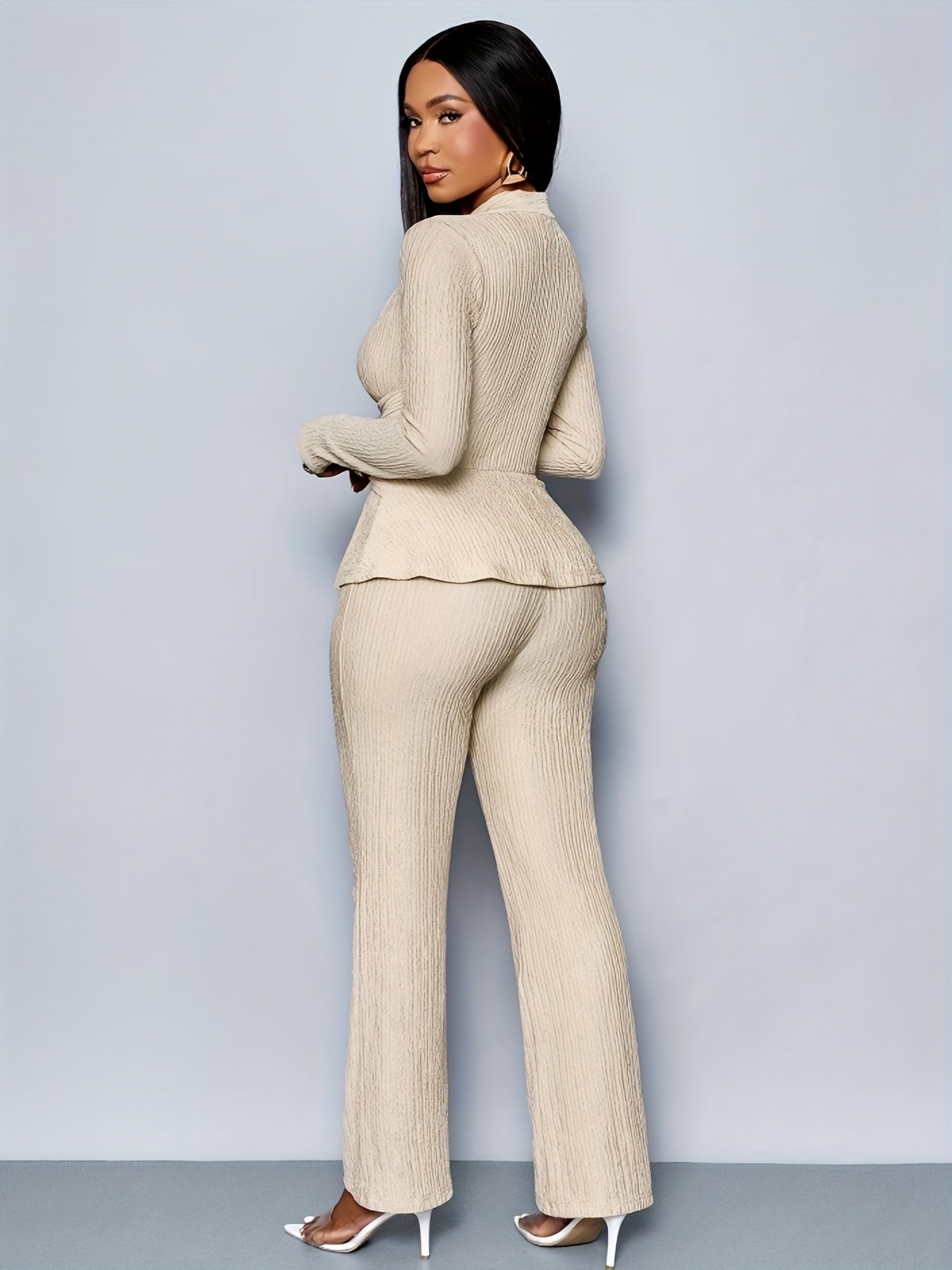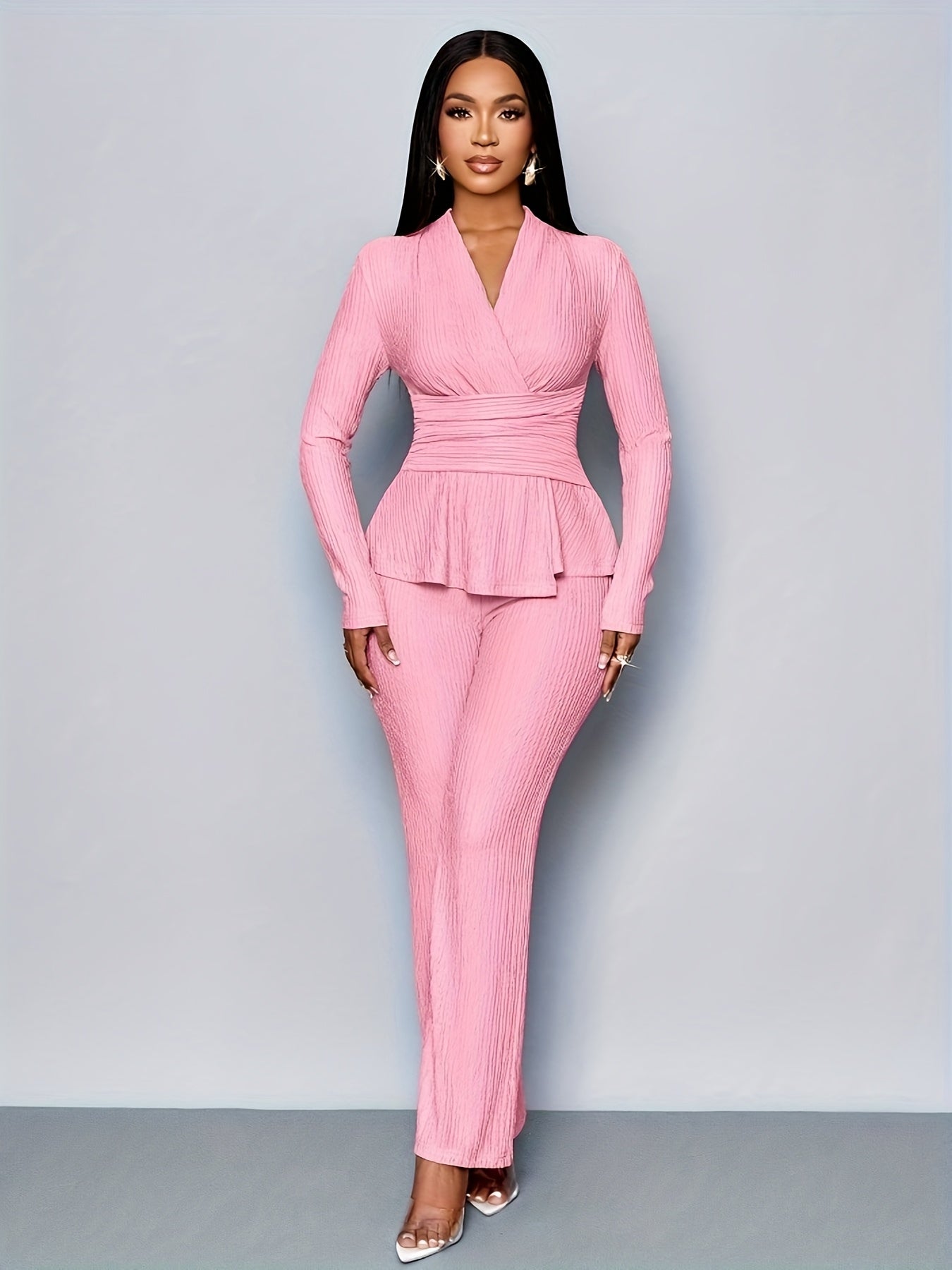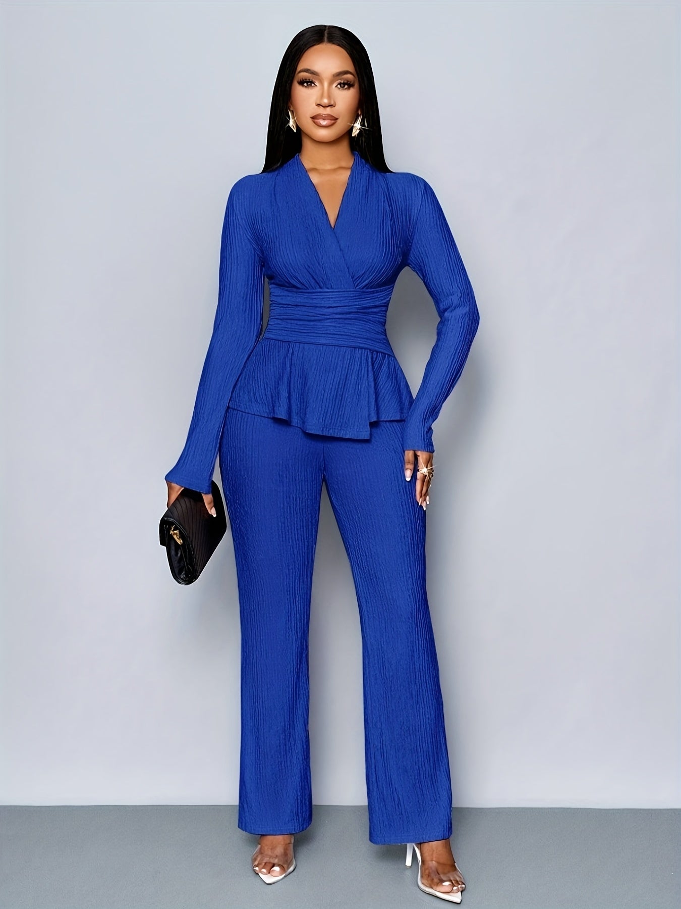 Elegant Women'S V-Neck Long Sleeve Top and Wide Leg Pants Two-Piece Set, Asymmetrical Hem Two-Piece Outfit for Casual Daily Wear, Winter Women'S Clothing