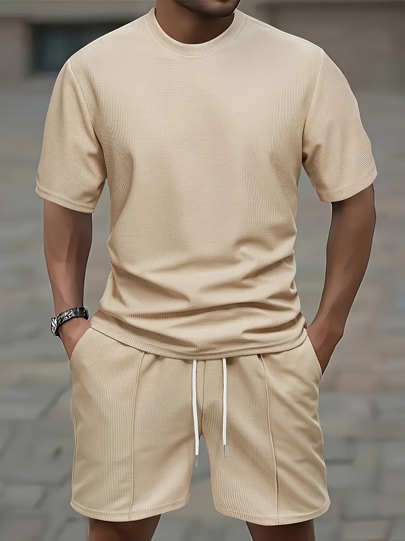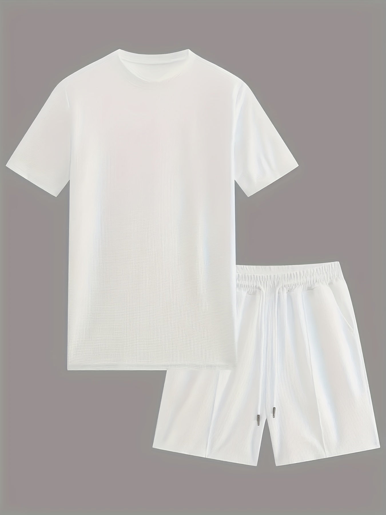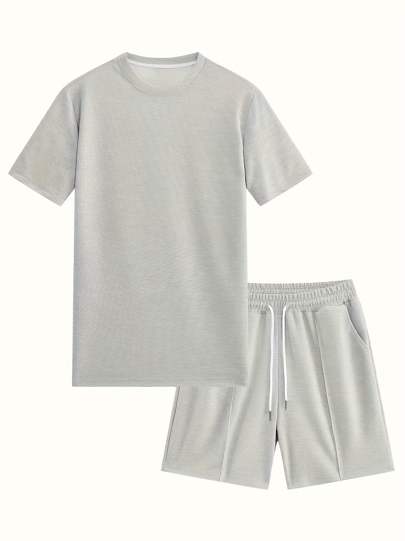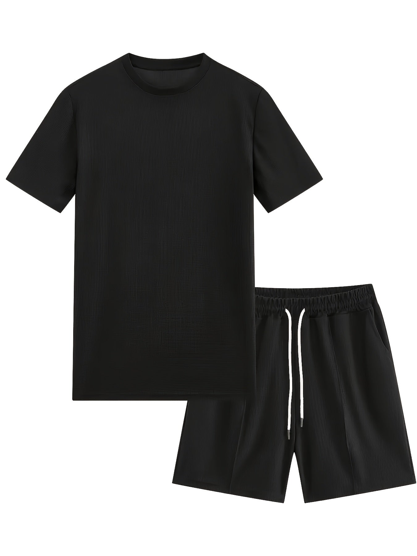 European and American Style Men's Basic Solid Color Set Round Neck Short Sleeve T-Shirt + Shorts Two-Piece Suit