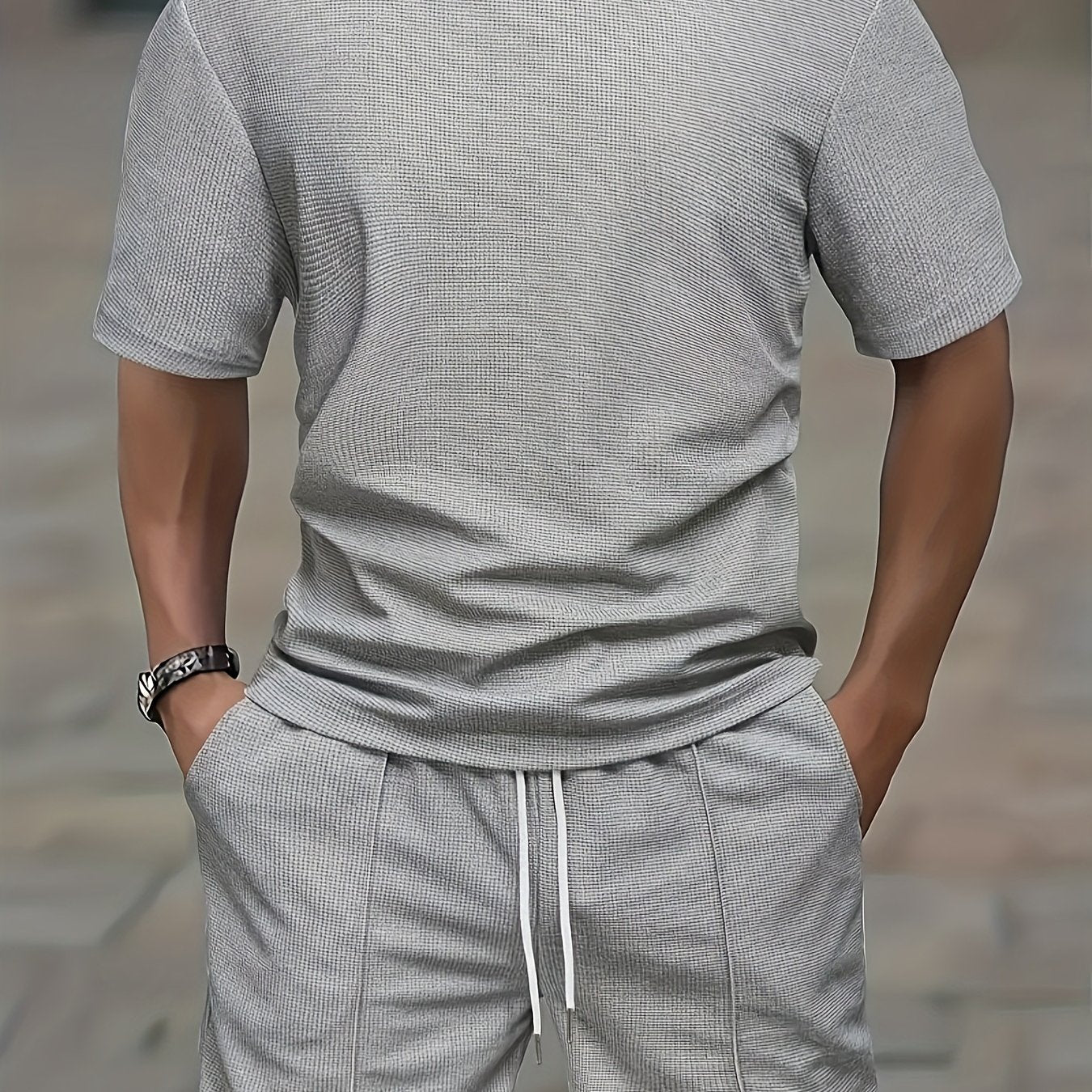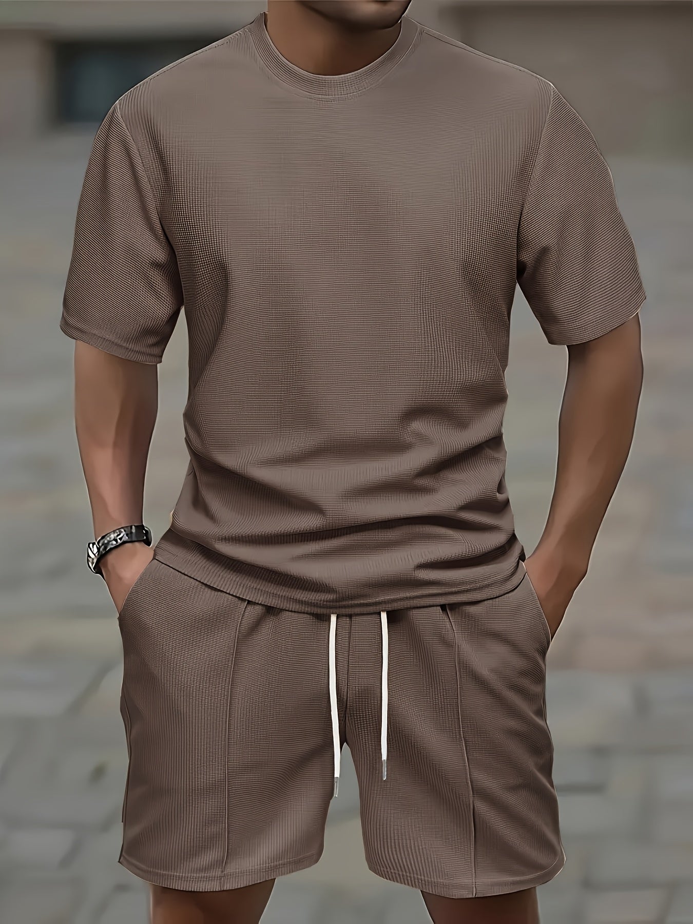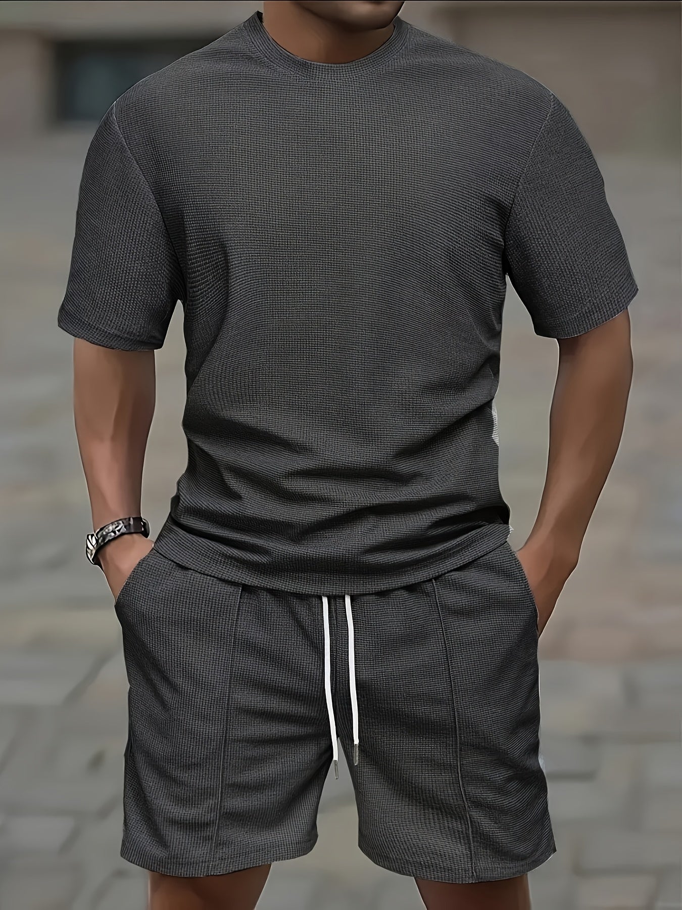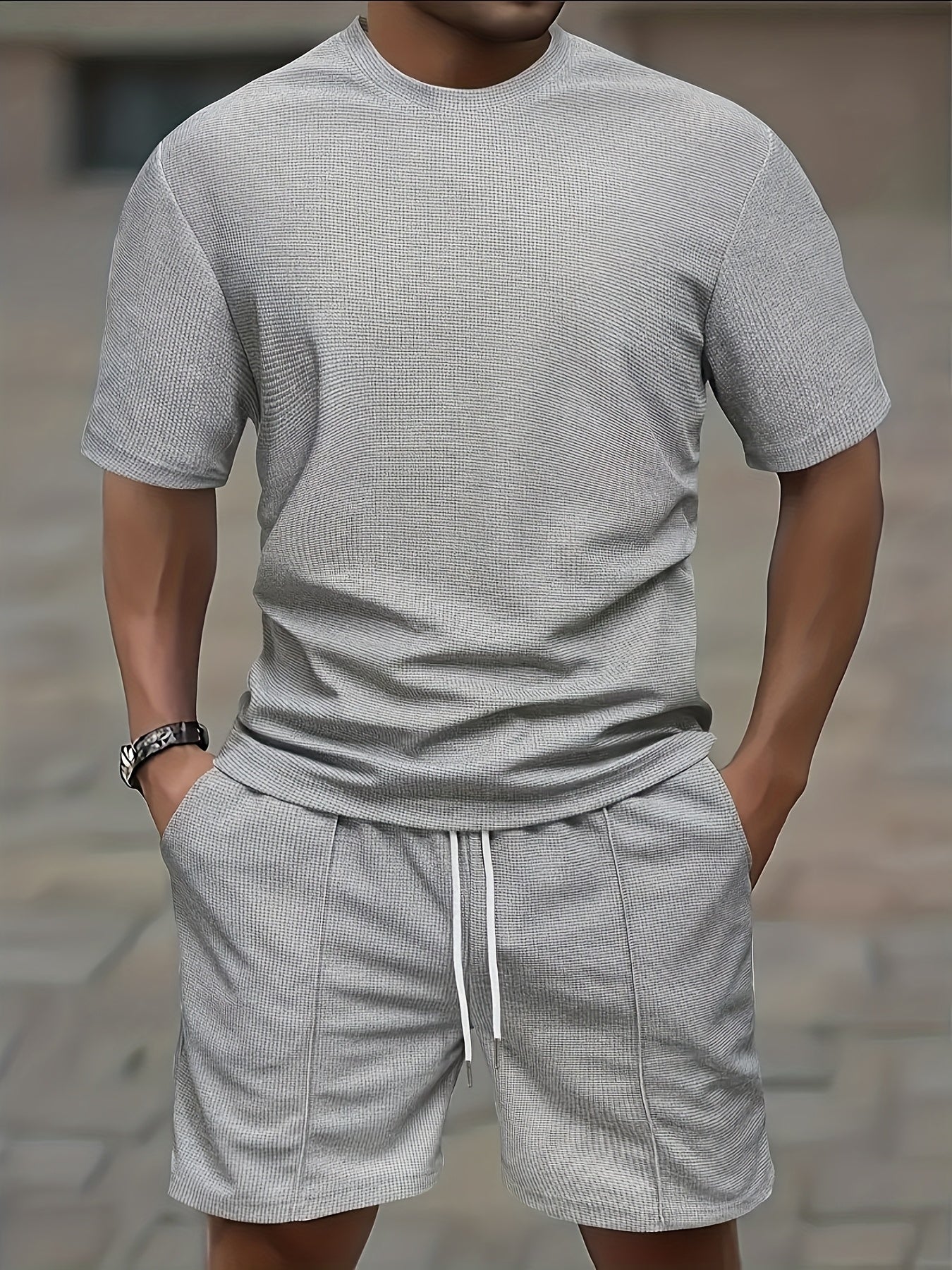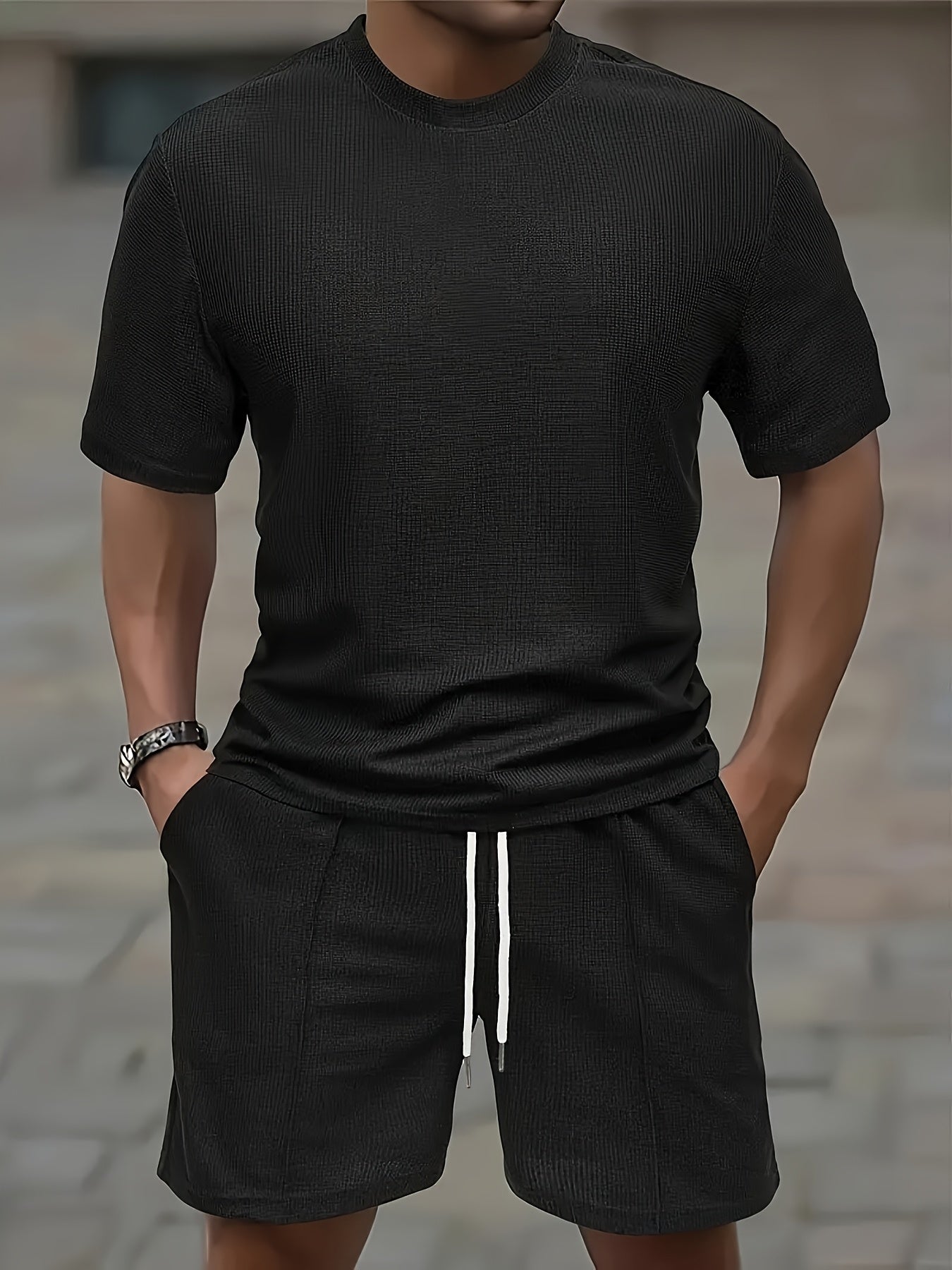 European and American Style Men's Basic Solid Color Set Round Neck Short Sleeve T-Shirt + Shorts Two-Piece Suit
