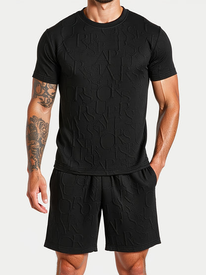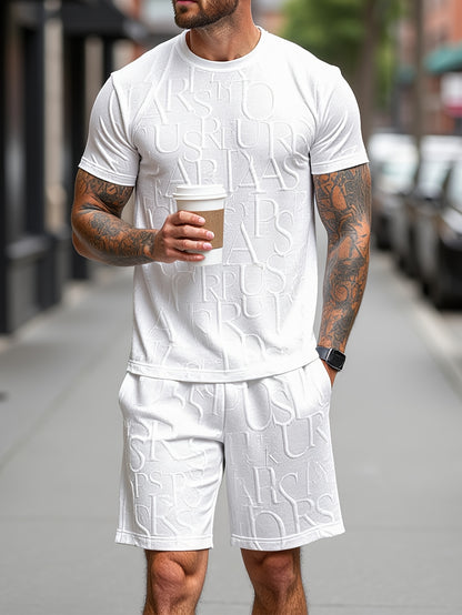 European and American Style Men's Fashion Set with Letter Pattern Round Neck Short Sleeve T-shirt + Shorts