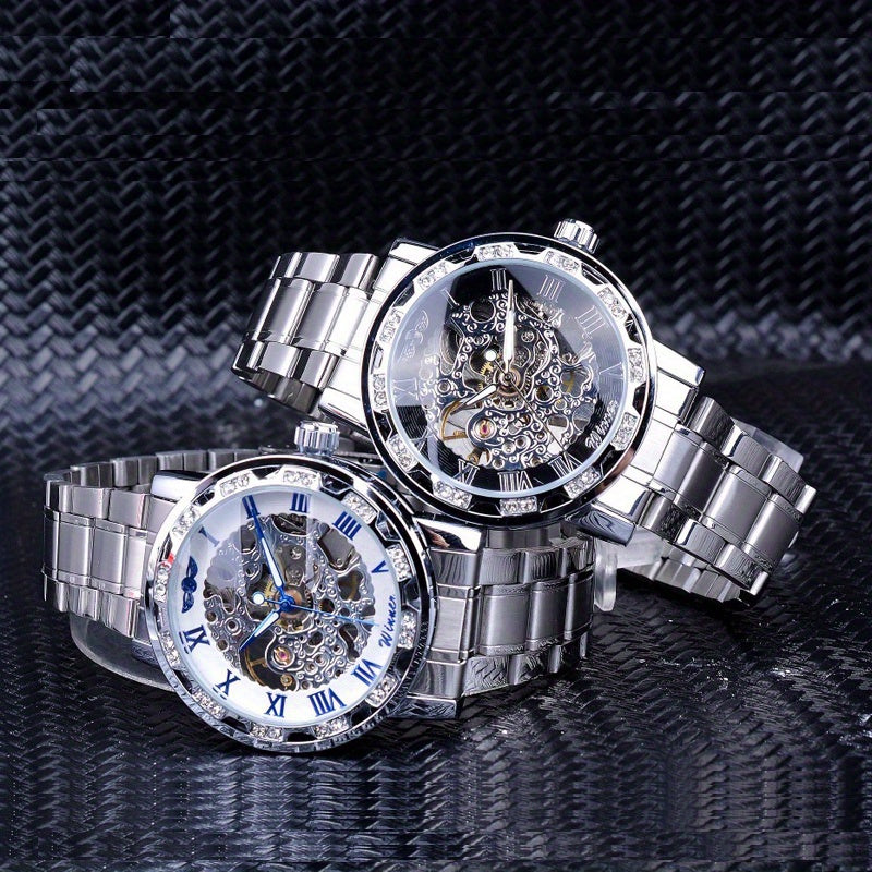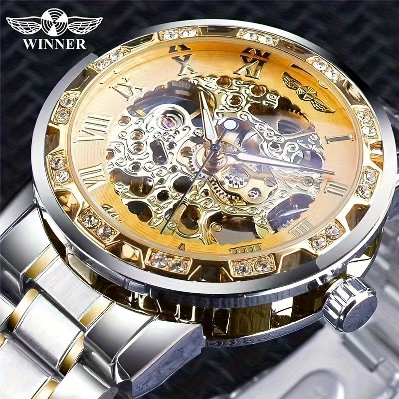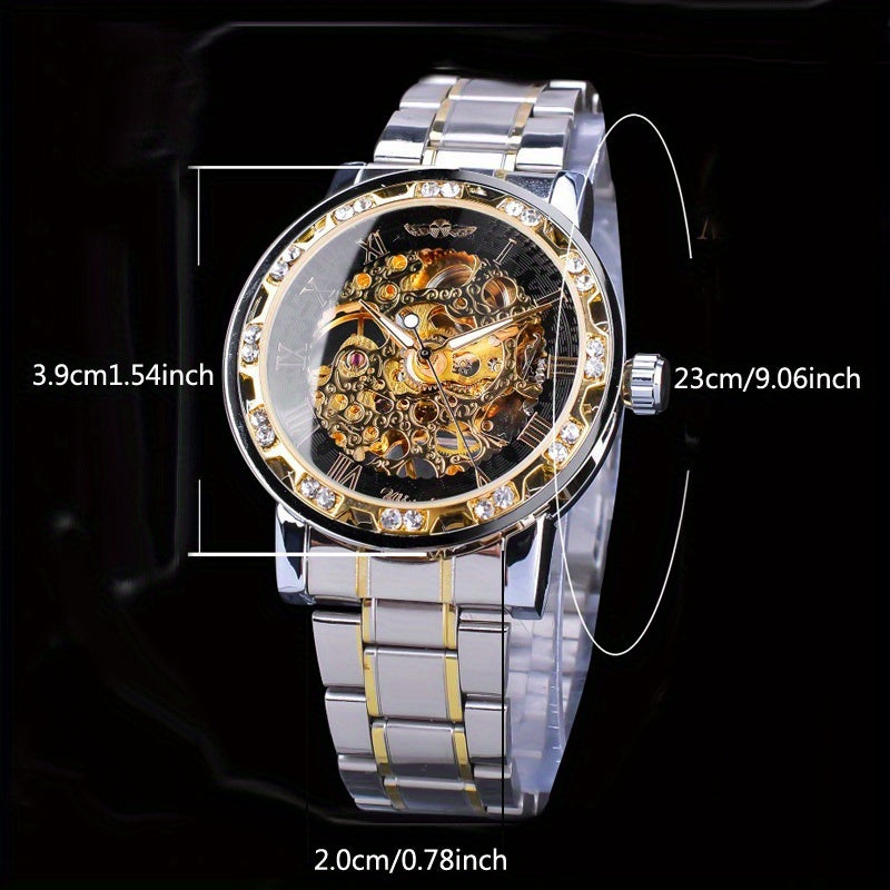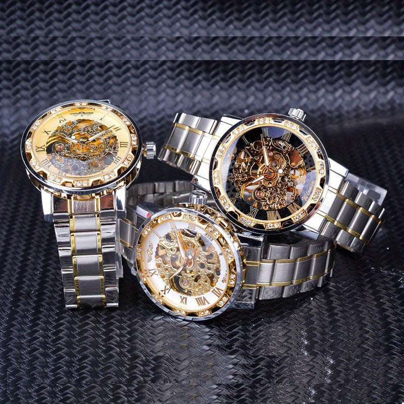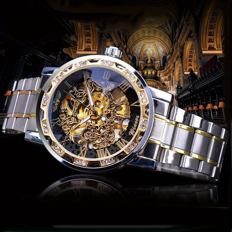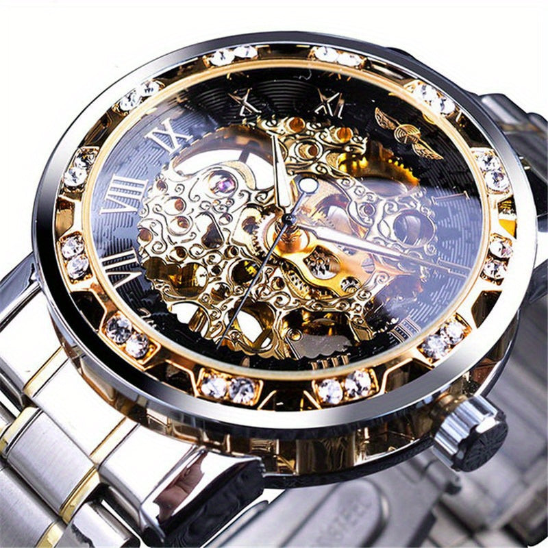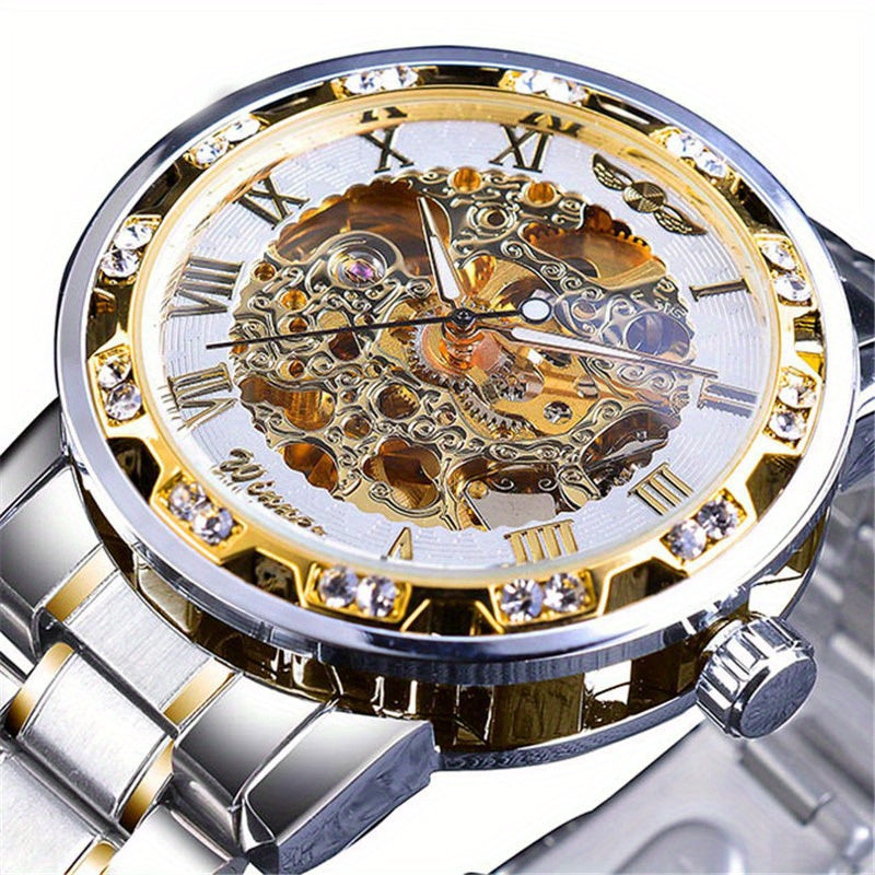Fashion Classic Roma Watch Men Luxury Golden Skeleton Mechanical Hand Watches Casual Business Wristwatches Men Blue & Golden Accents, Casual Yet Versatile, Best Seller, Ideal Gift, Mechanical Movement, Watch Accessories, With
