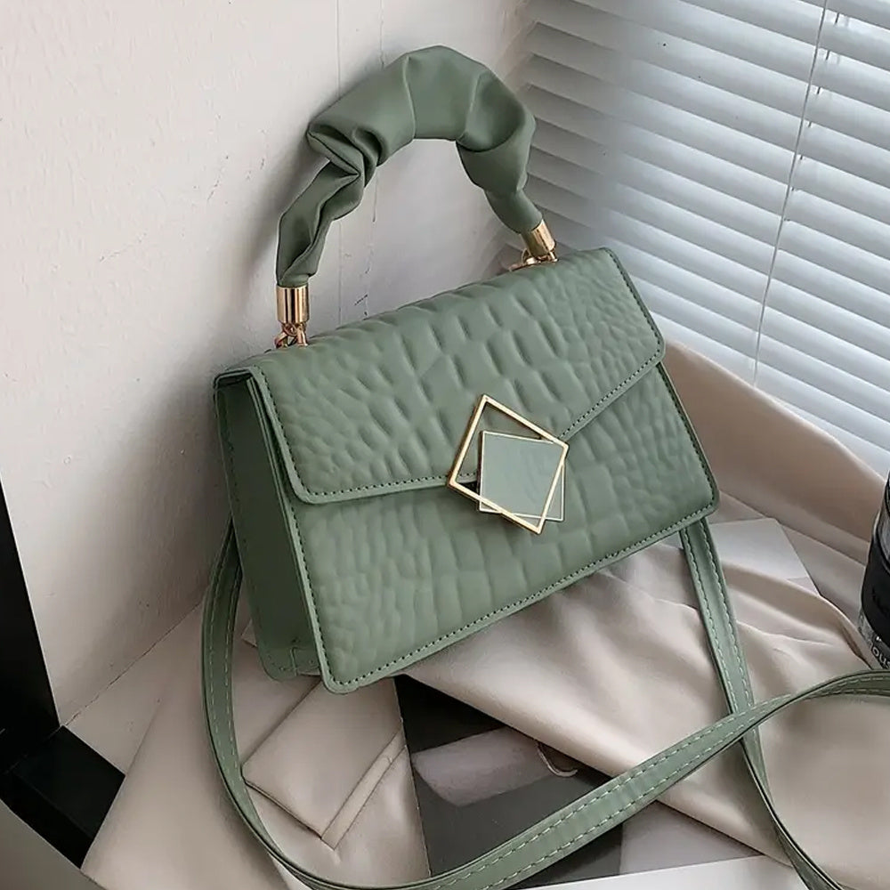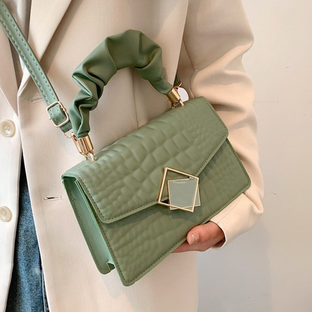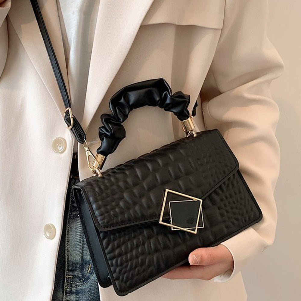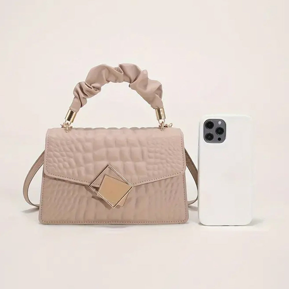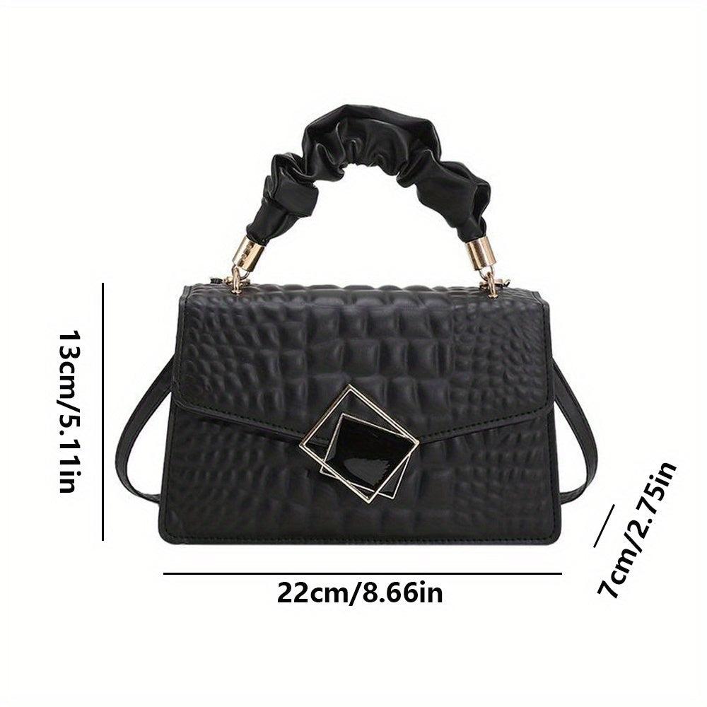 Fashion Embossed Crossbody Bag with Pleated Handle - Women'S Solid Color Stylish Shoulder Bag, Plain Crossbody Bag with Pleated Handle, Small Square Bag in Stone Pattern.