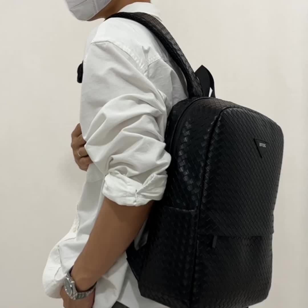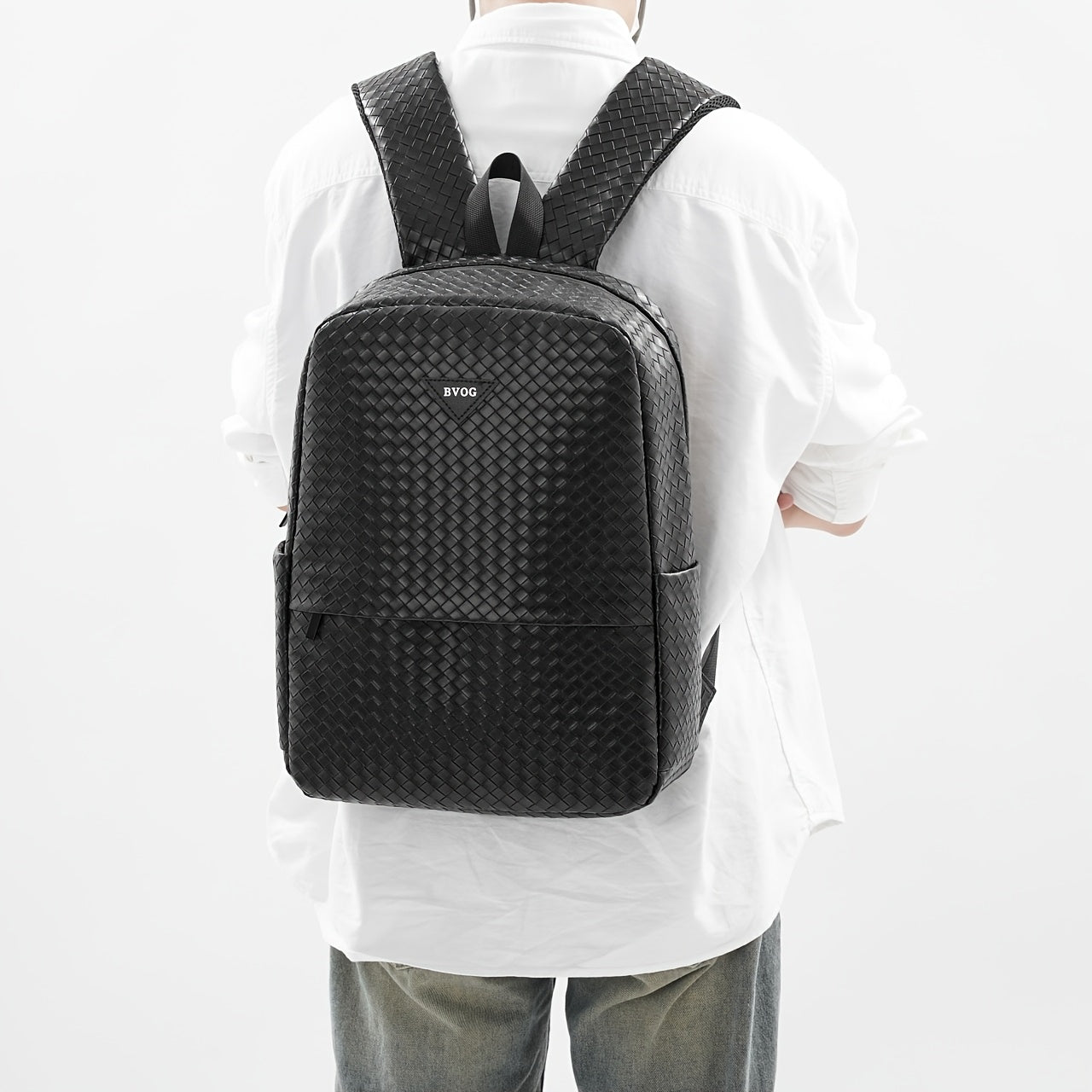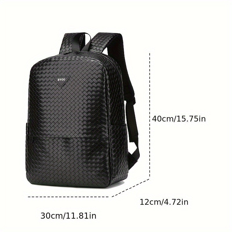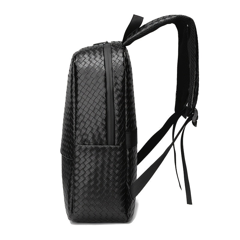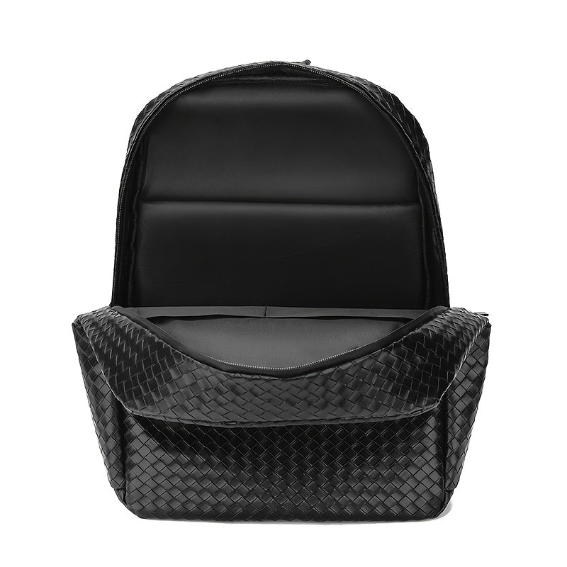 Fashionable Black Woven Backpack with Adjustable Shoulder Straps - Stylish Short Trip Storage Bag, Durable Polyester Lining, Secure Zip Closure, Casual Daypack for Outings, Travel Backpac