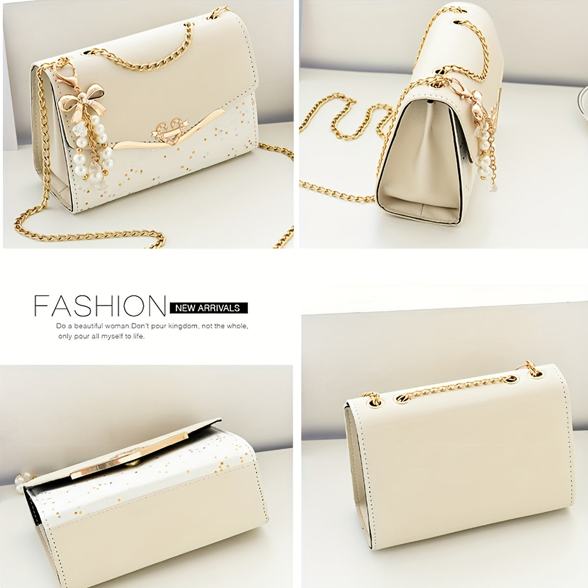 Fashionable Bohemian Beige PU Crossbody Bag with Tassel Charm - Urban Style Flap Shoulder Bag with Metal Chain Strap, Lightweight and Portable for Shopping, Office, College, Travel - Ideal Gift for Women, Occasion Theme, Vale