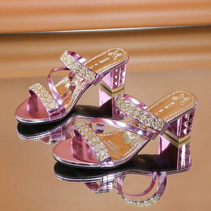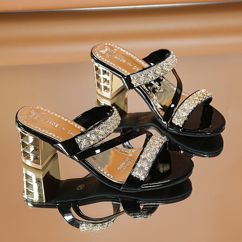 Fashionable Chunky Heel Sandals With Rhinestones