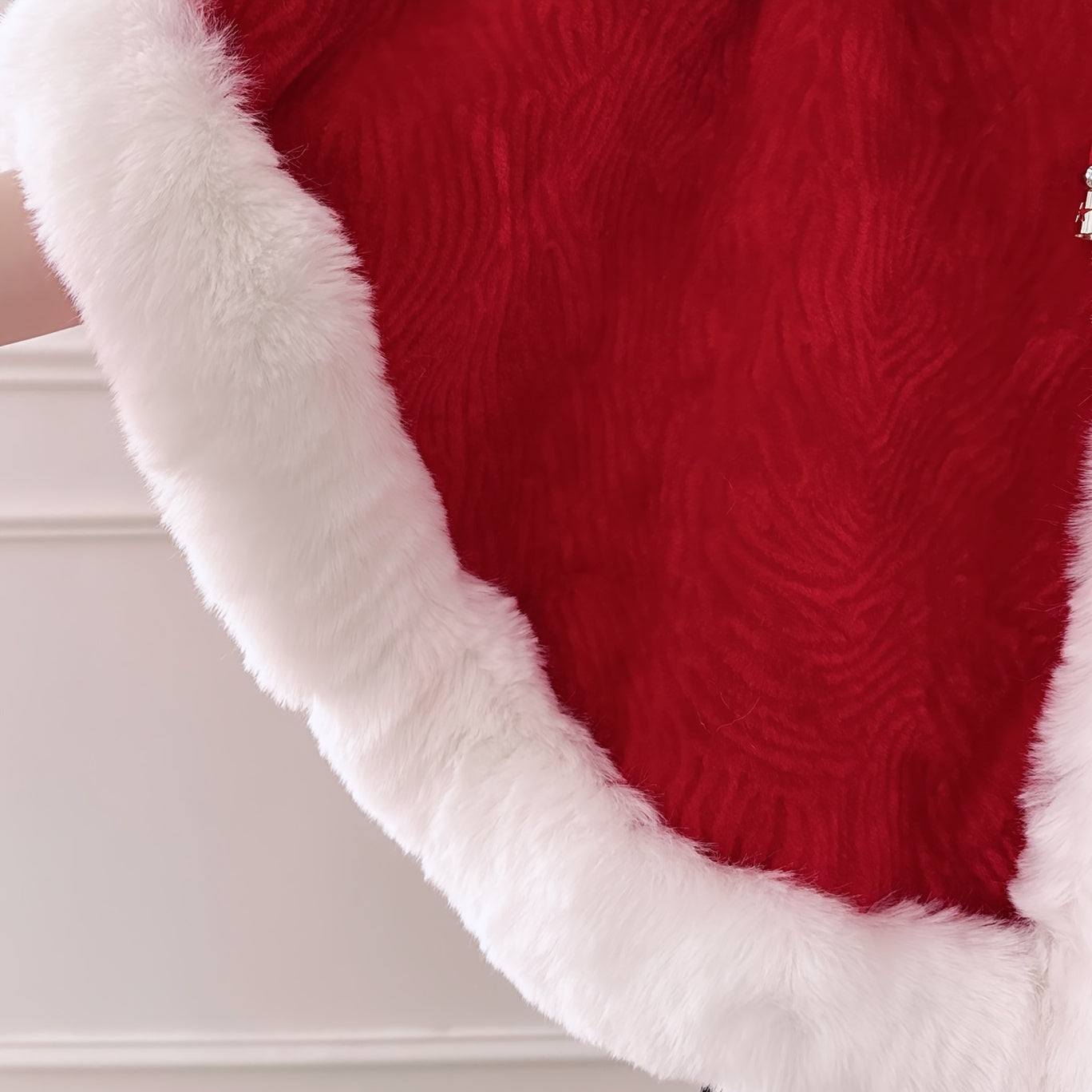 Festive Shawl Wrap with Faux Fur Trim and Pearl Accents - 100% Polyester Christmas Poncho Cape for Party and Wedding, Warm Decorative Inelastic Shawl for Winter, Hand Washable