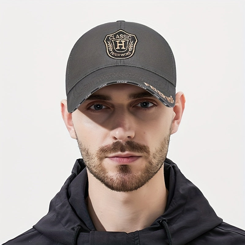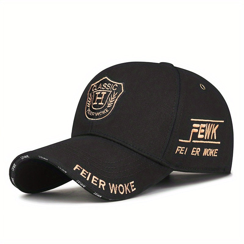 FEWK Unisex Baseball Cap | Breathable Polyester | Adjustable Fit | Embroidered Logo & Golden Badge | Stylish Streetwear for Spring/Autumn, Outdoor Headwear | Golden Badge Design | Durable Cap