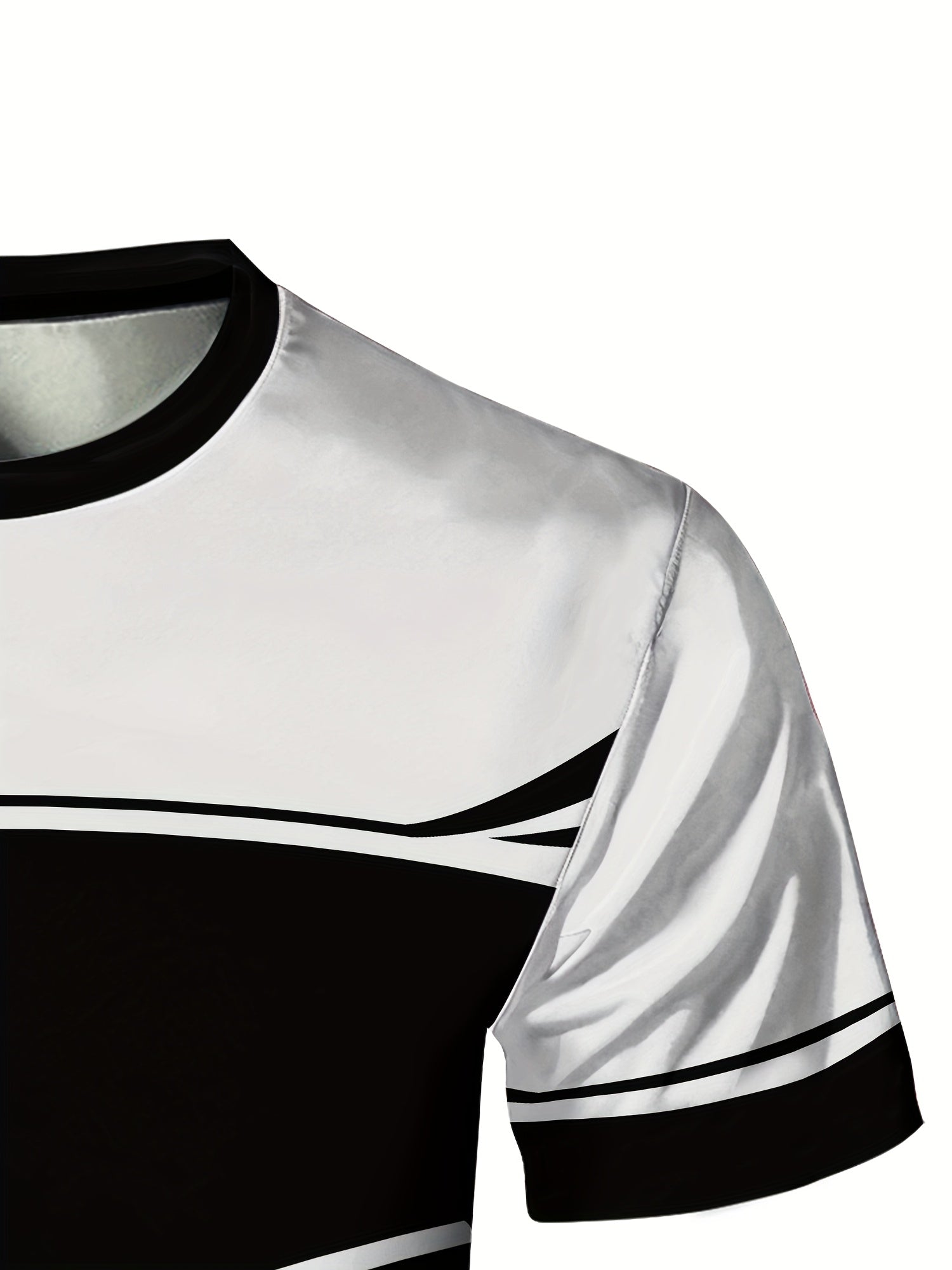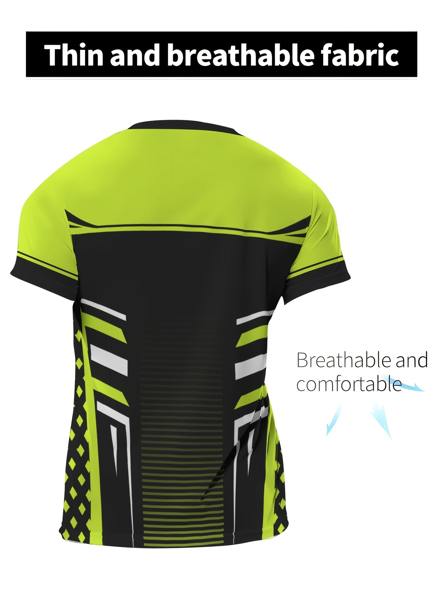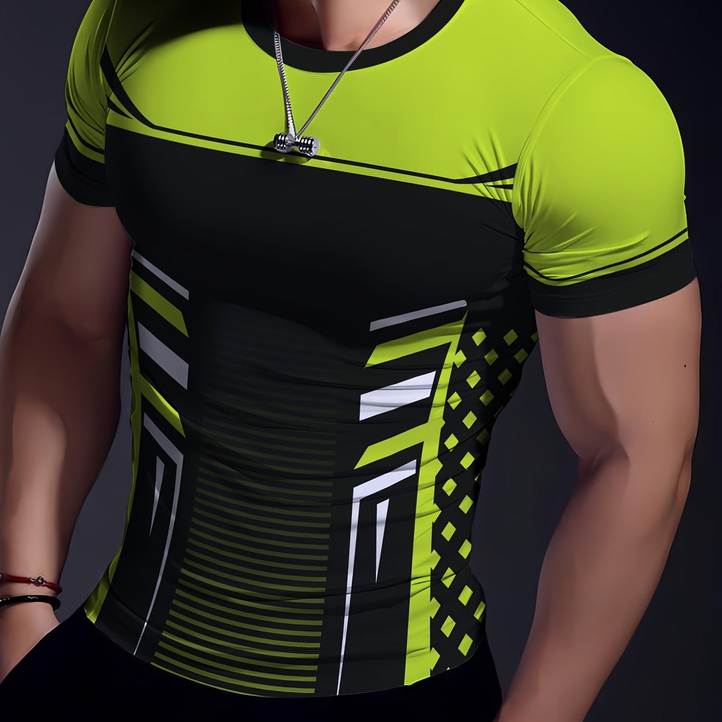 Geometric print high stretch skinny fit short sleeve crew neck T-shirt, quick-drying sports top for summer fitness, training and gym wear