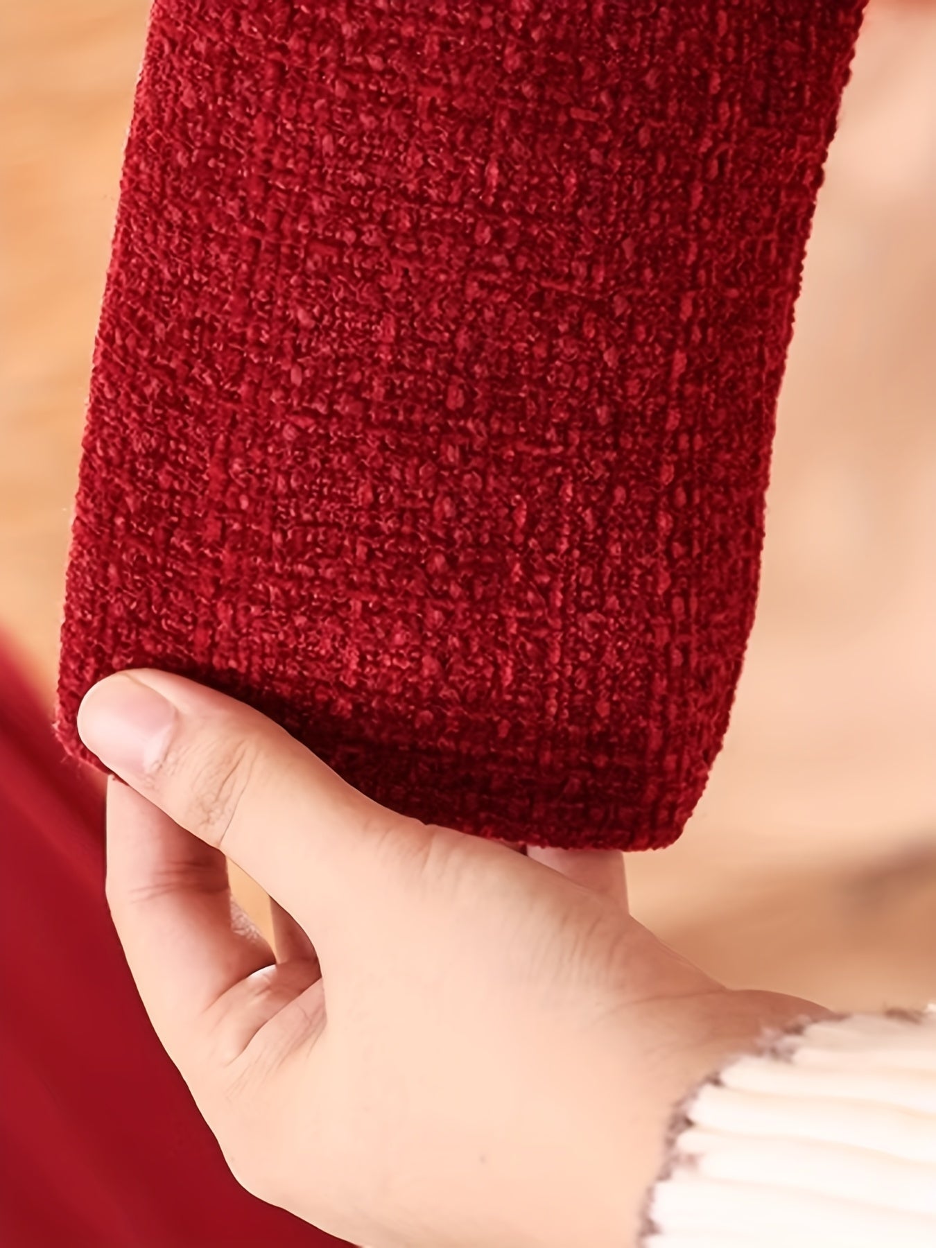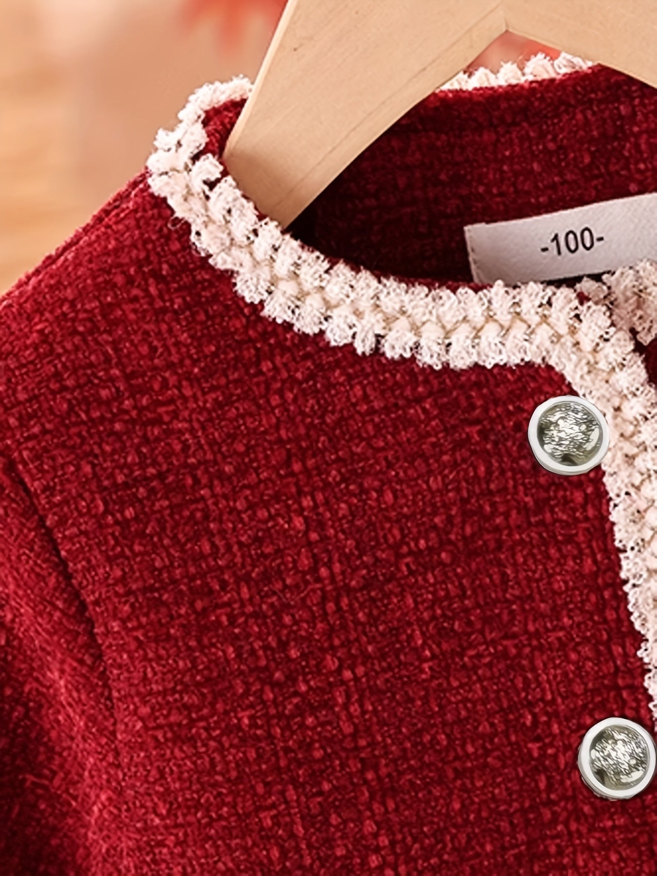 Girls' Elegant Red & Ruffled Skirt Set - Long Sleeve, Button-Up, Non-Stretch Fabric, Loose Fit, Perfect for Fall/Winter, Casual Style, Casual Attire, |elegant Girls' Set|buttonup Skirt Set, For Outdoor