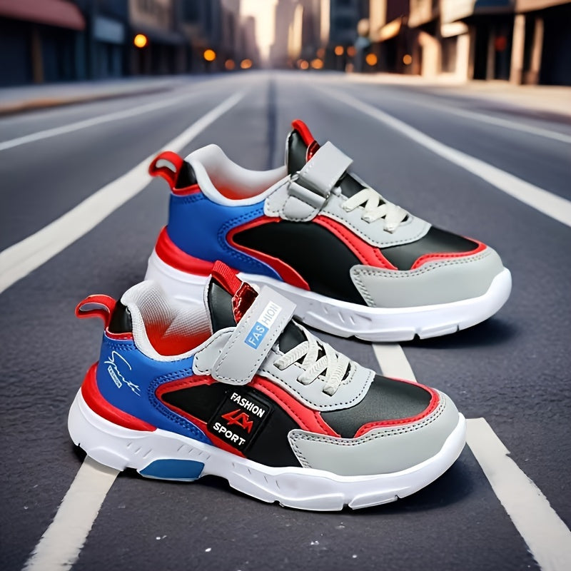 Girls' Stylish Sneakers - Casual Street Fashion, Mid-Top Design with Red & Blue Accents, Slip-On Style, Perfect for Running & Workout, Running Shoes|Stylish Casual Shoes|Elastic Strap Sneakers