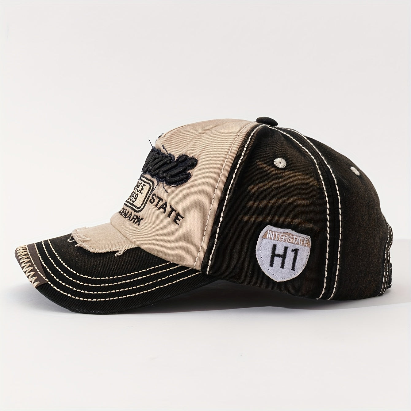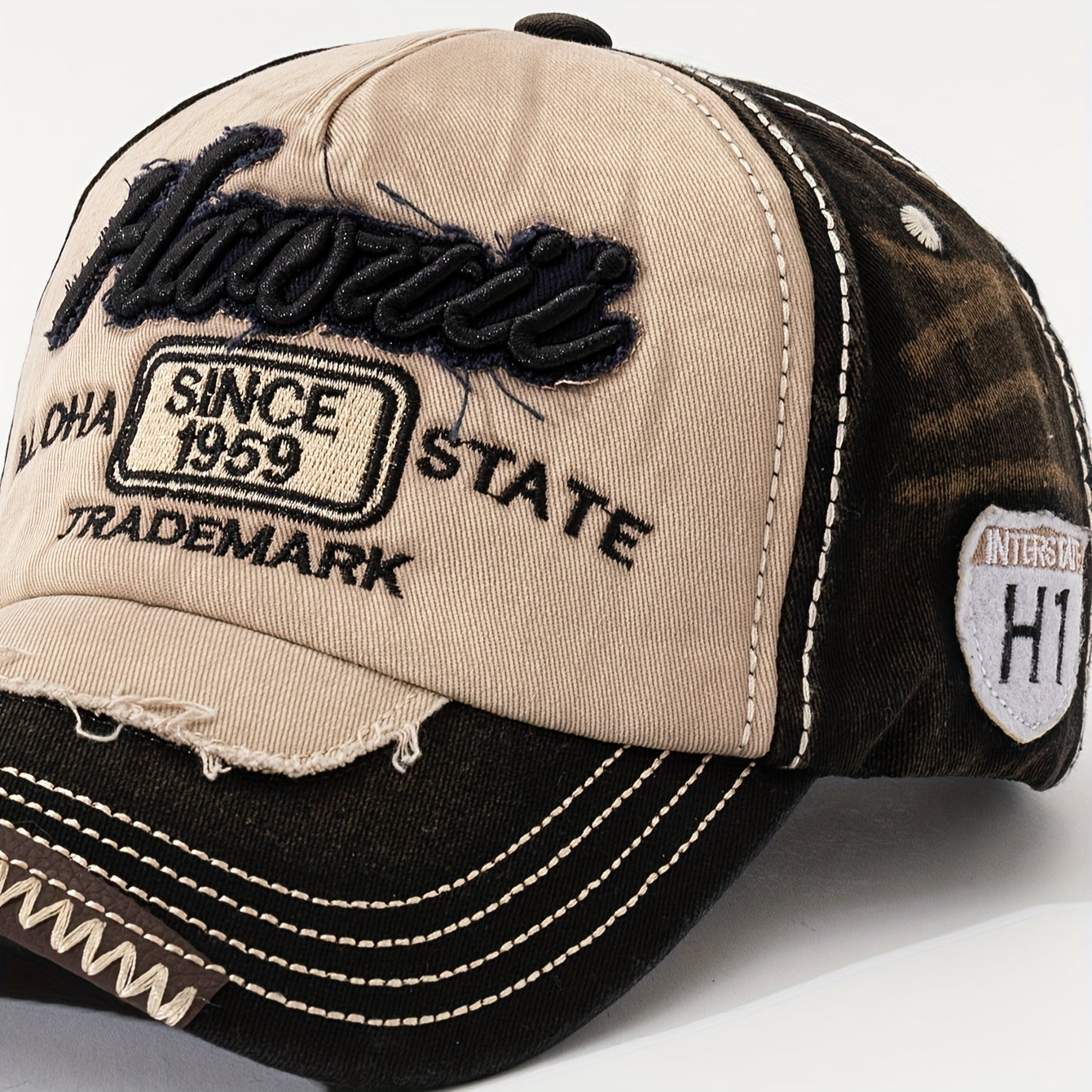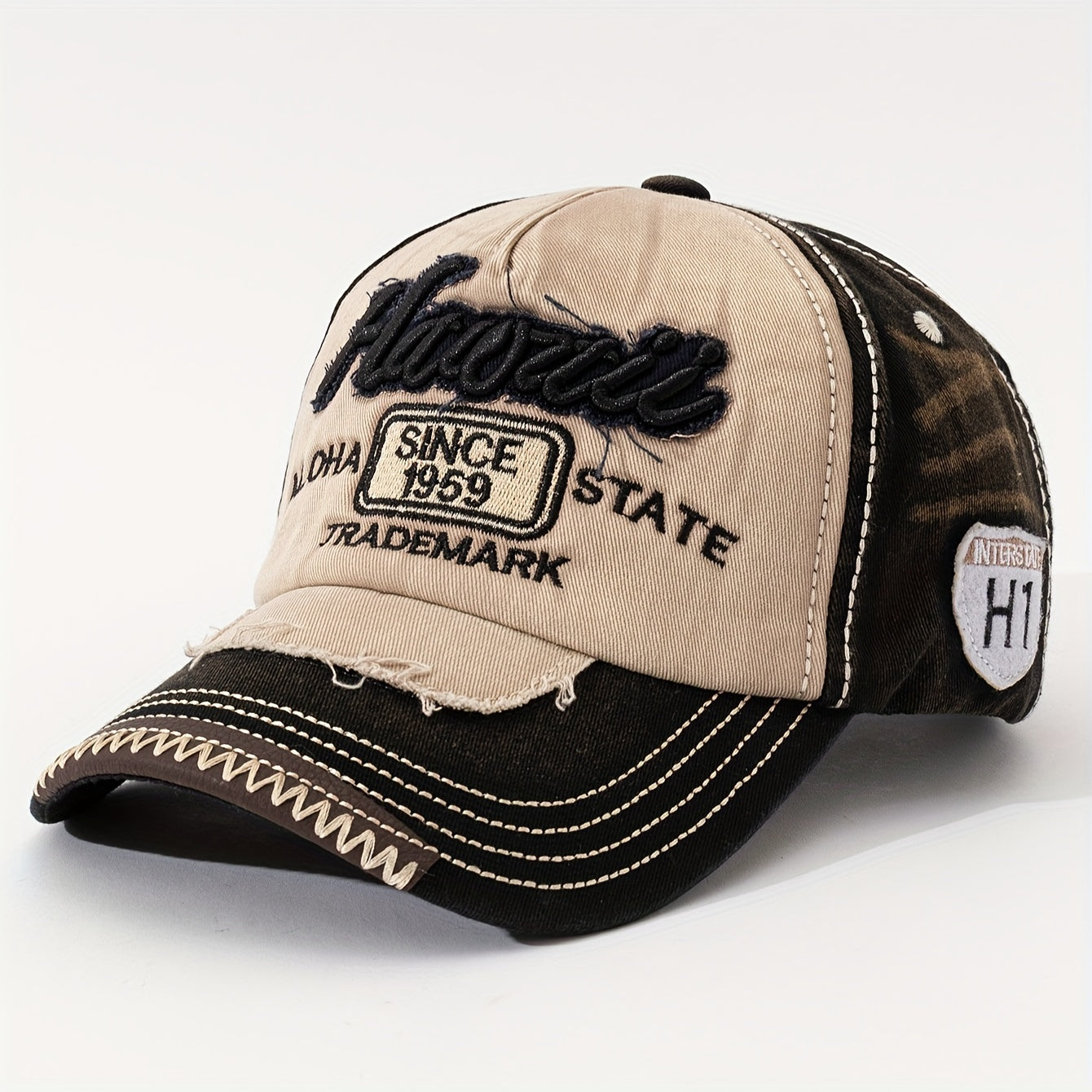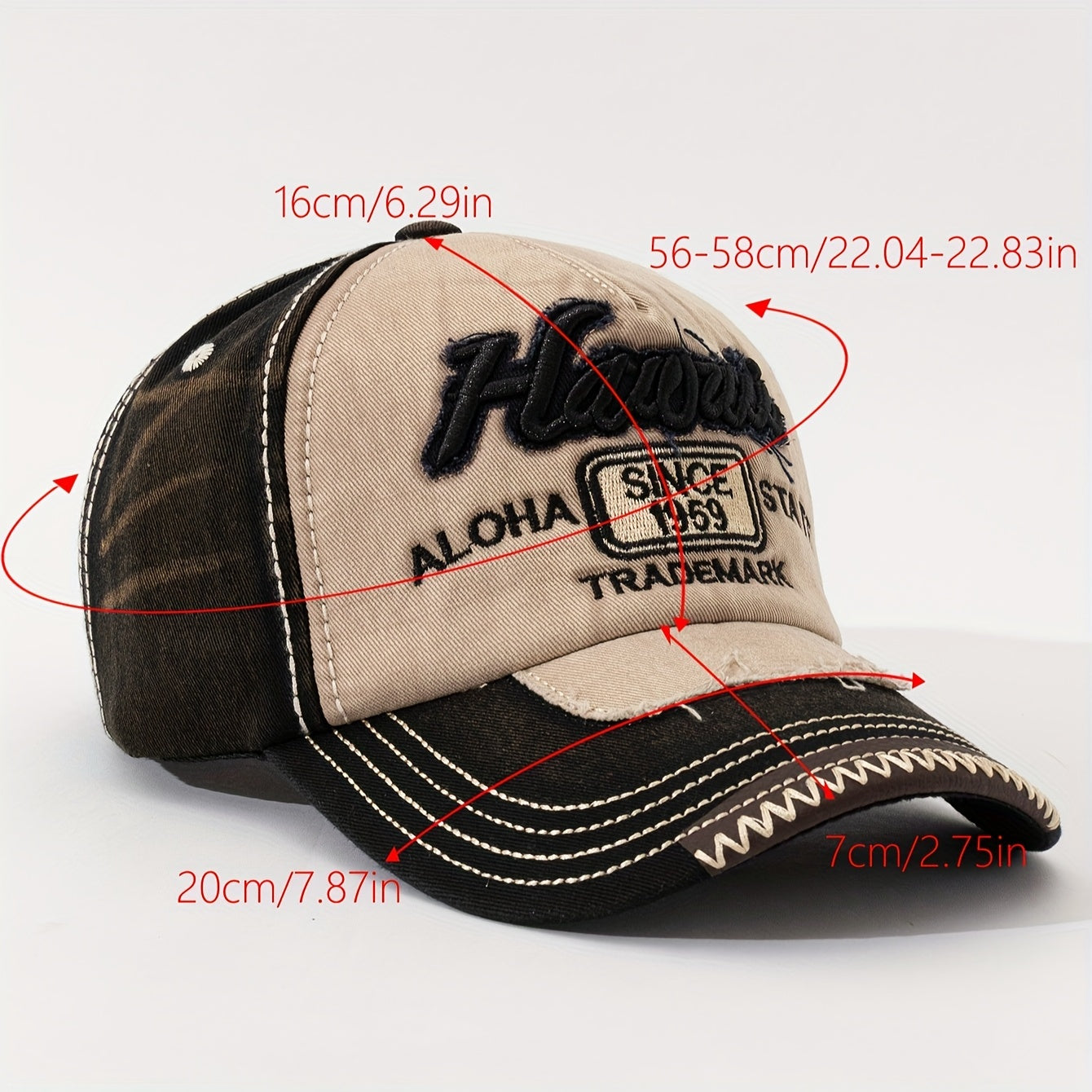 HAWAII Vintage Distressed Baseball Cap - Adjustable Lightweight Unisex Hat with 3D Embroidered Aloha Text, Dual-Tone Beige & Brown, Breathable Design for Men & Women, Daily Use & Vacation, Hawaiian Accessories, Casual Headwea