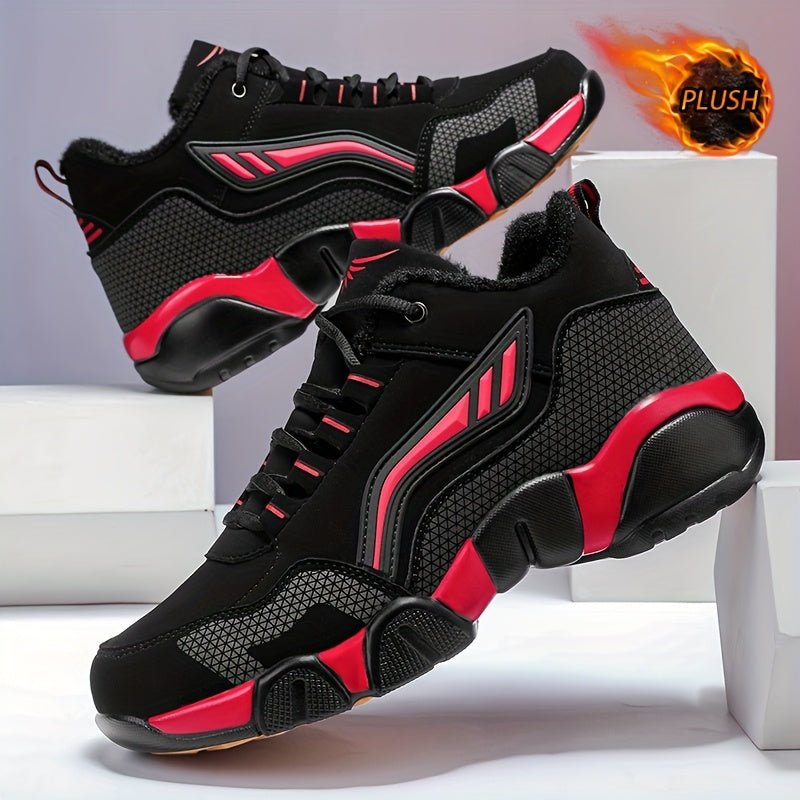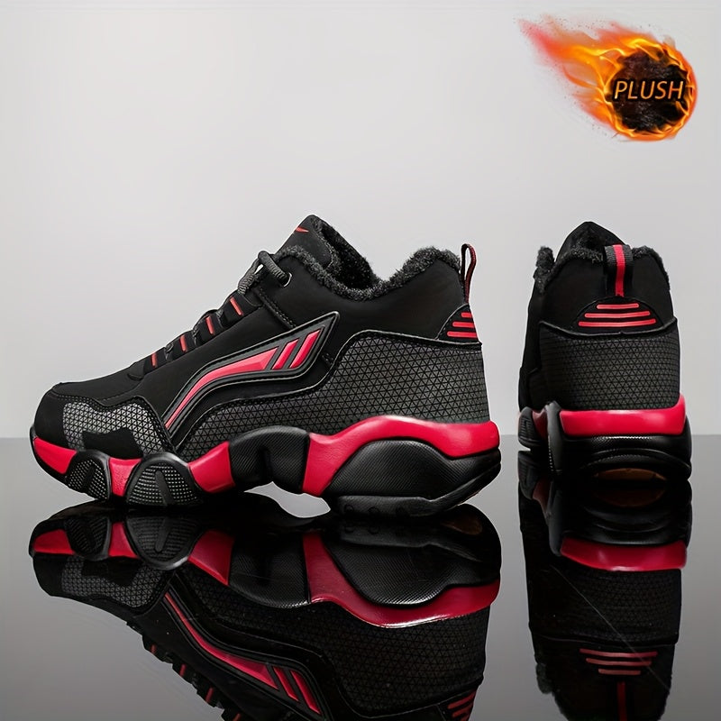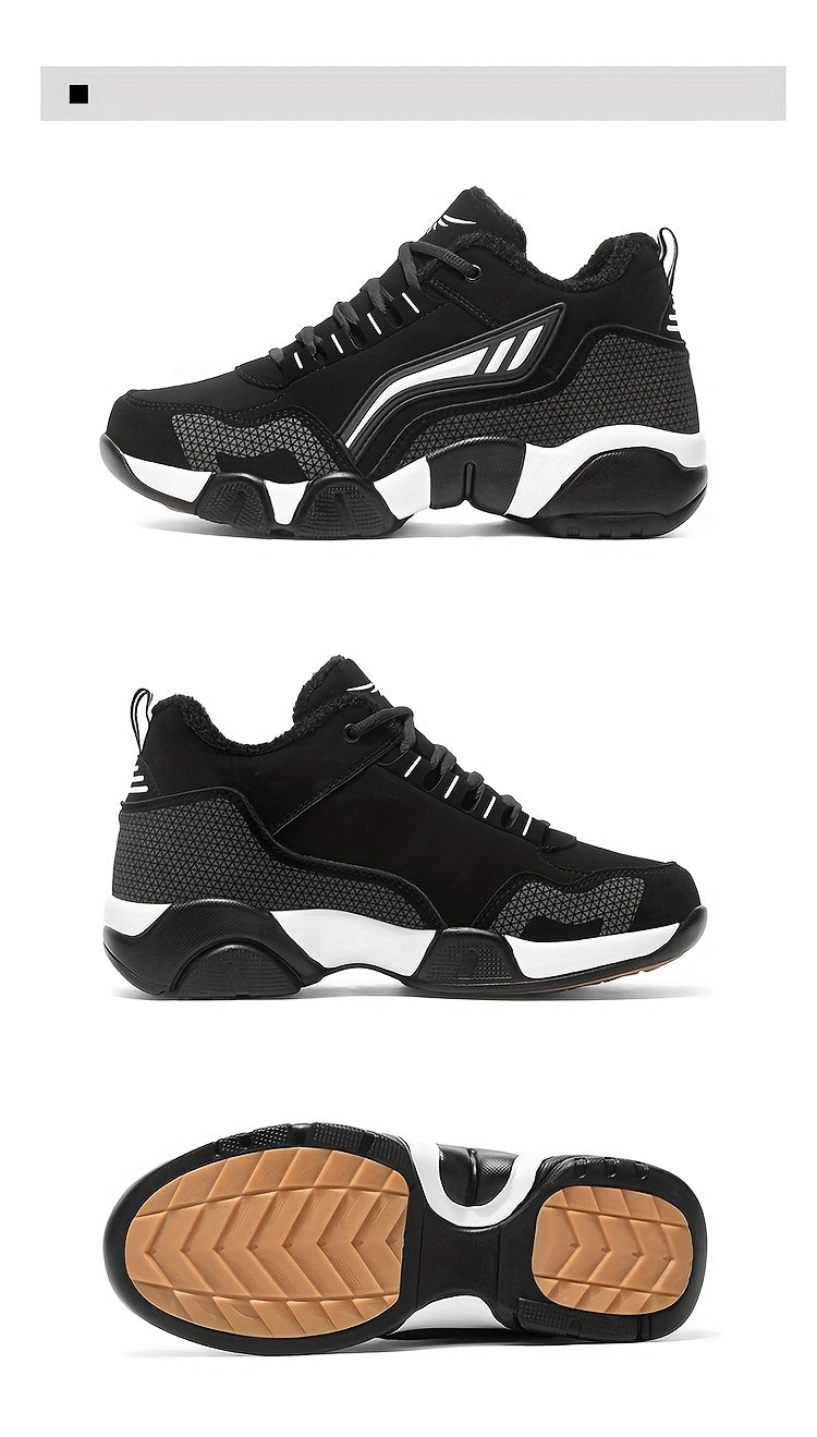HIDEDUGO 's Heavy-Duty Winter Boots-like Sneakers - Warm Mid-Top Traction Tires, All-Terrain TPR Sole, Lace-Up Outdoor Shoes for Ice & Snow, Large Size Available (Black/White) - Cold Weather Casual & Sports