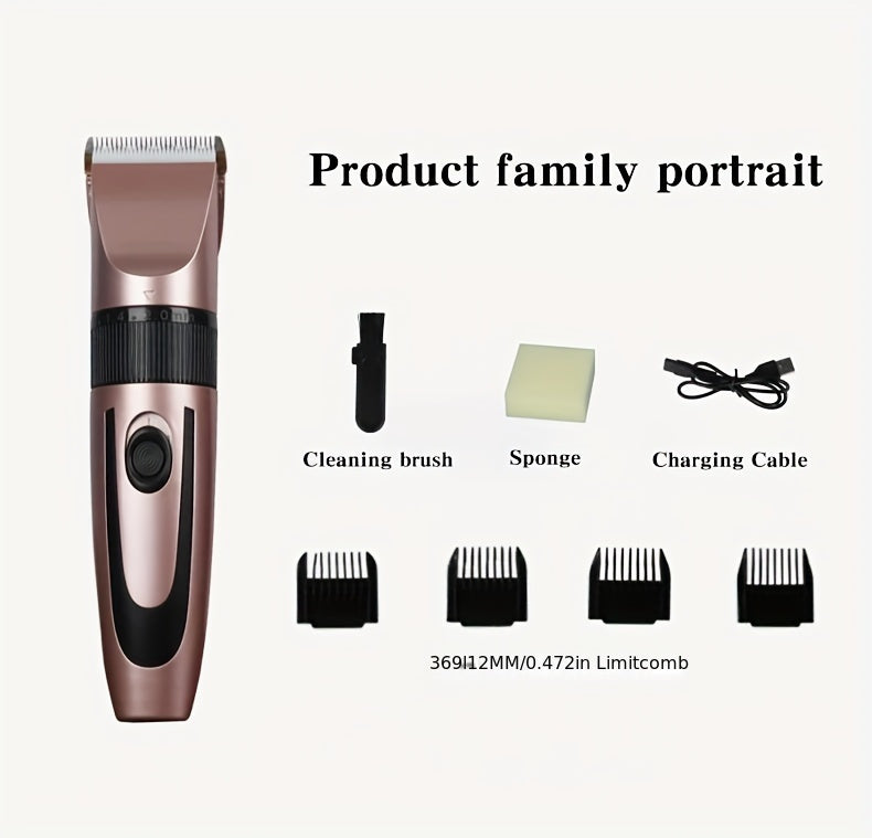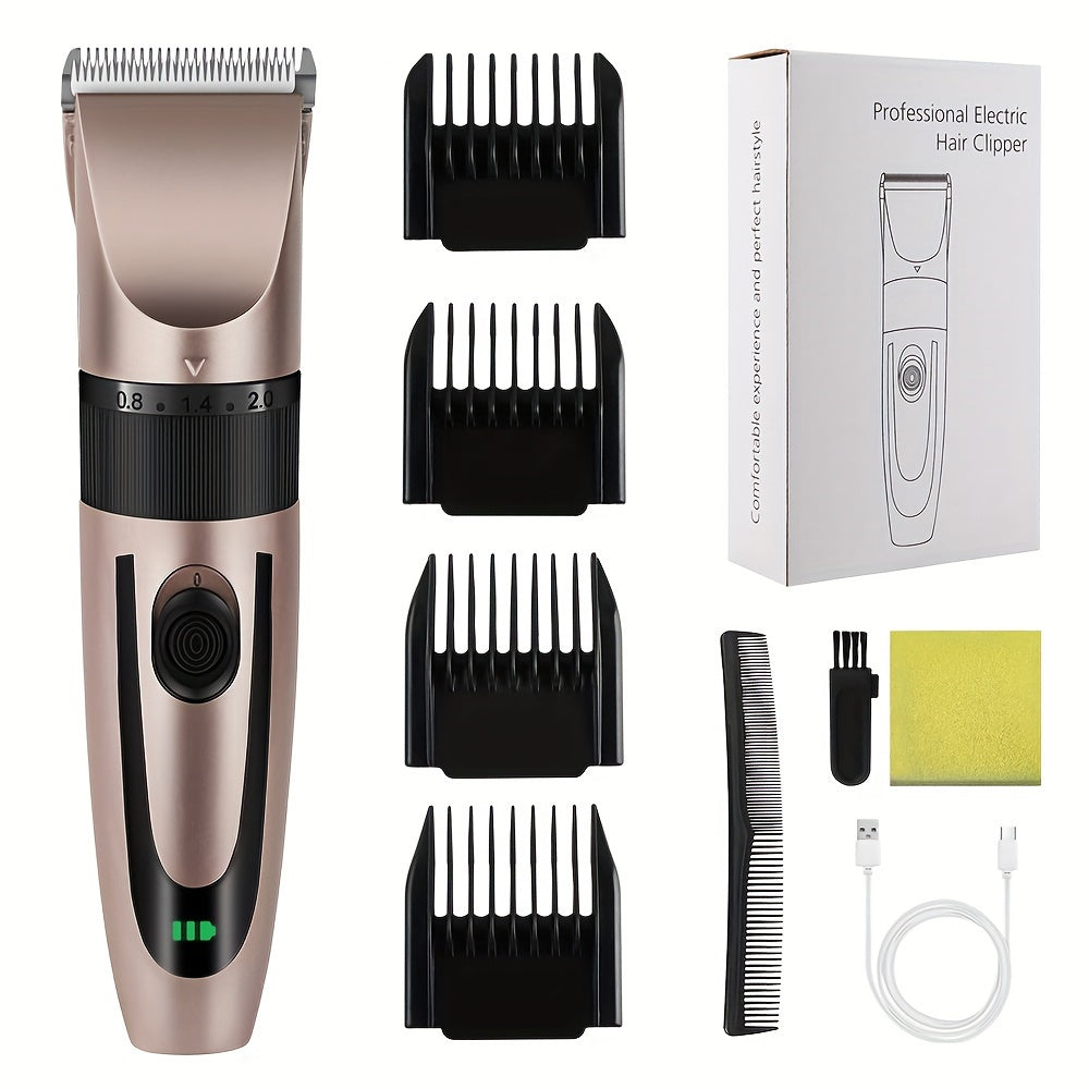 HIENA Multi-Purpose Electric Hair Clipper Kit - Sleek Metallic Finish, USB Rechargeable with 320mAh Lithium Battery, Includes 4 Combs & Cleaning Brush, Ideal for Body, Leg & Private Grooming, Personal Grooming Kit|Professiona
