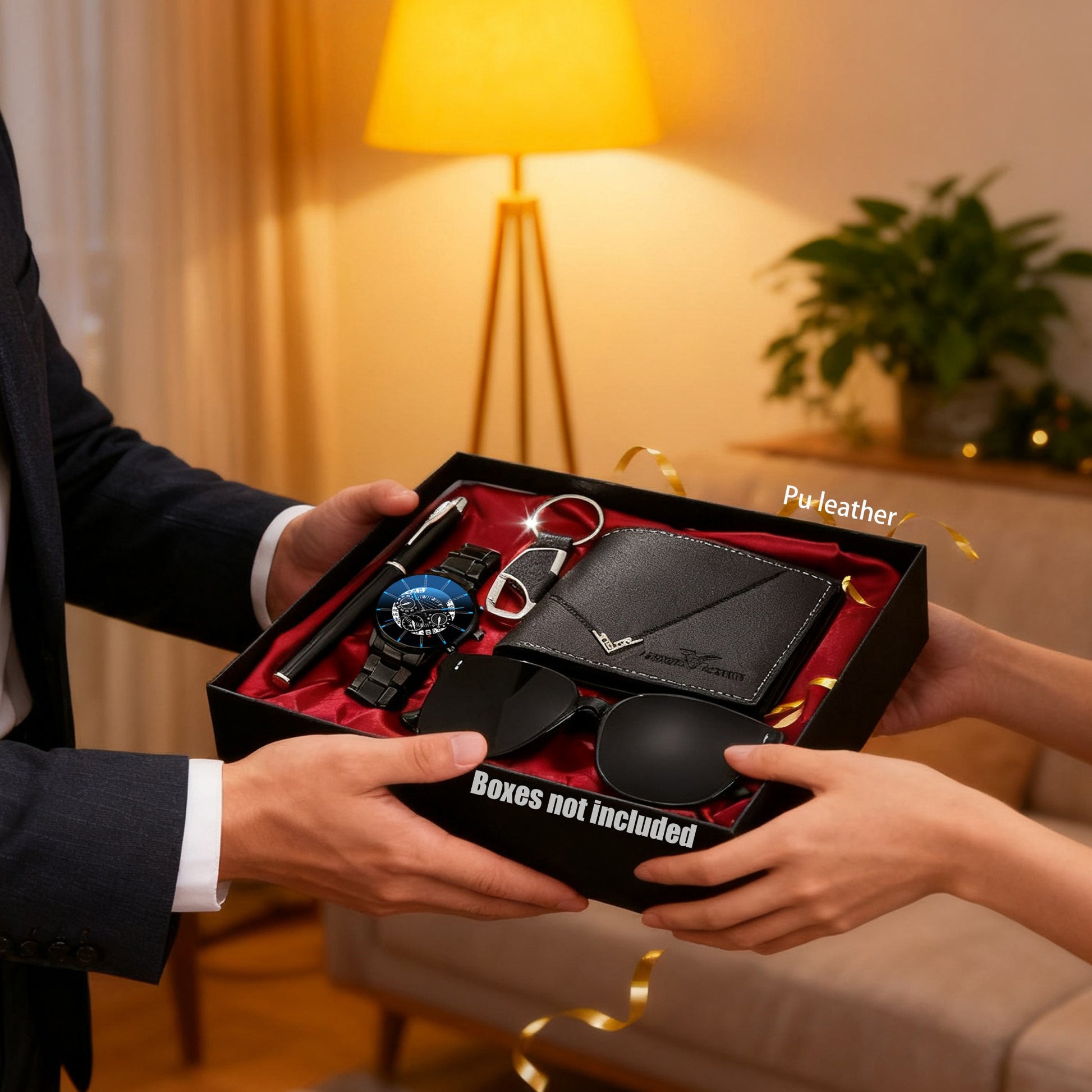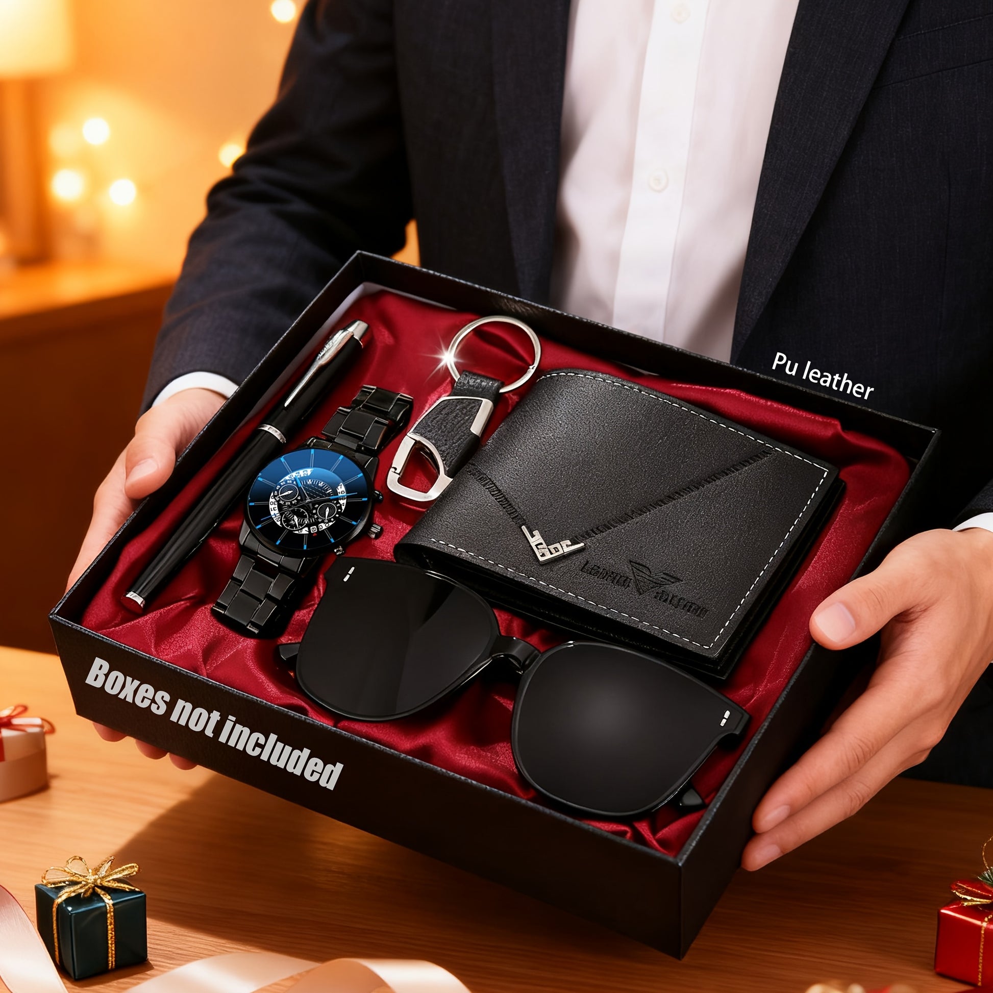 HIKUN 5pcs Men's Luxury Accessory Gift Set - Watch, Wallet, Keychain, Fashion Glasses, Pen Bundle with Zinc Alloy Strap & Quartz Movement Watch - /Anniversary Gift for Him, Dad, Boyfriend (Complete Surprise Set)