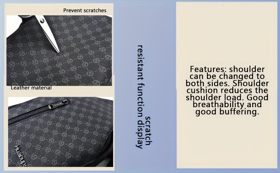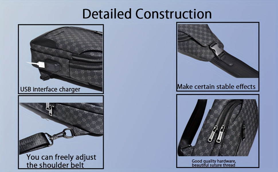 HUABUPS Men'S Crossbody Backpack - Black PVC Business Commuter Bag with USB Charging, Adjustable Strap, Multiple Compartments Durable Design for Travel, Hiking, Daily Use - Ideal Gift for Men, Hiking Gear, Stylish Accessory