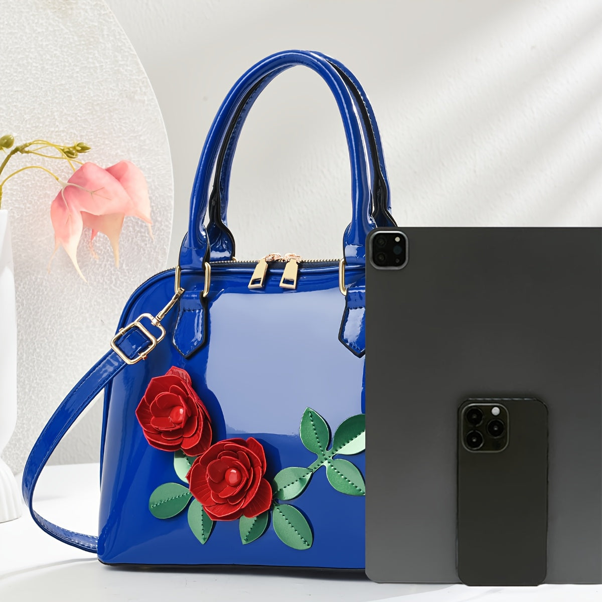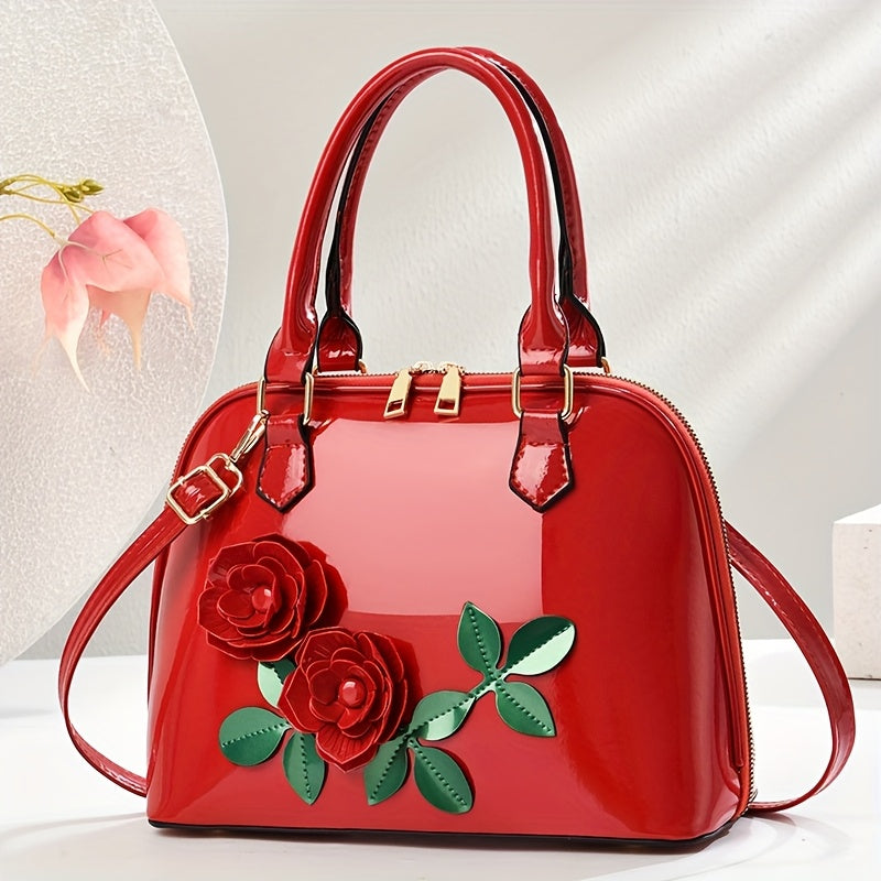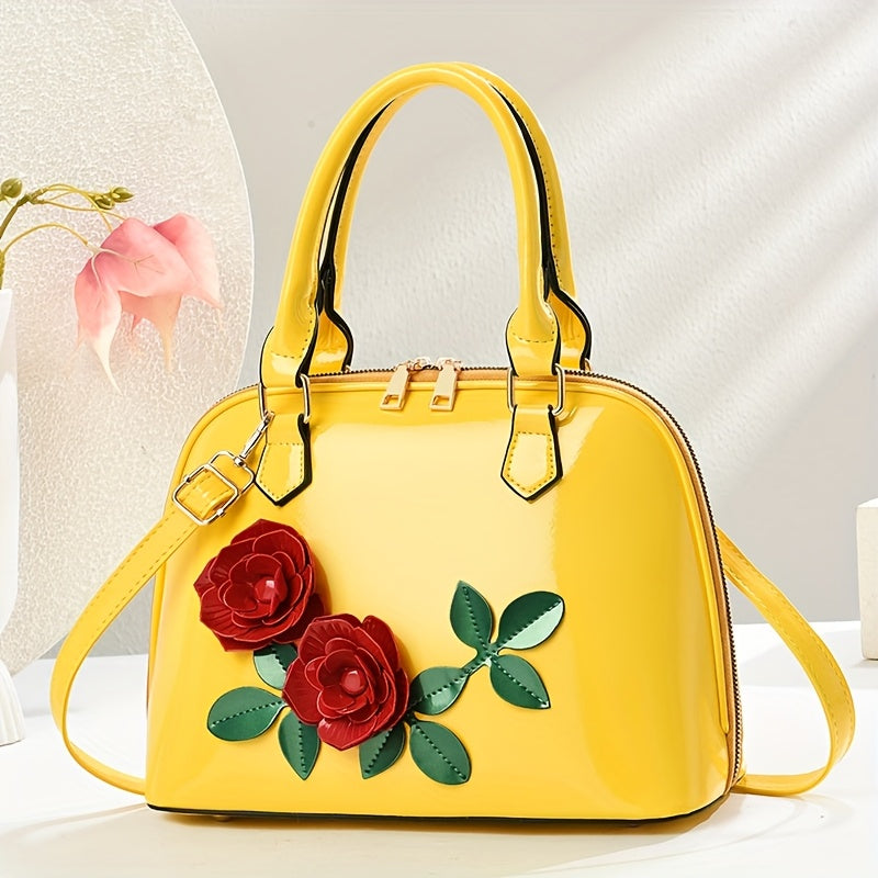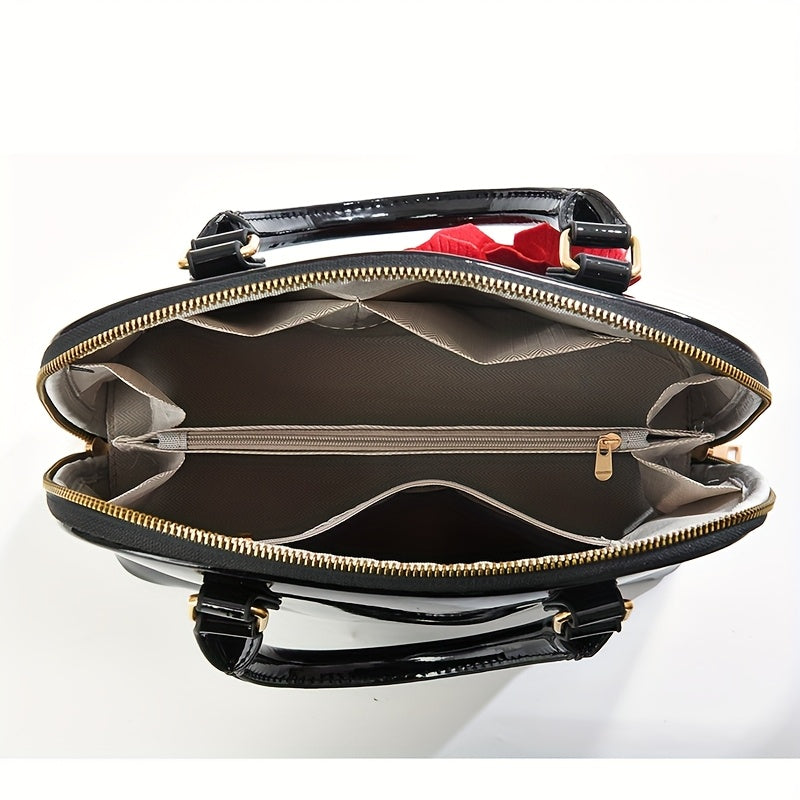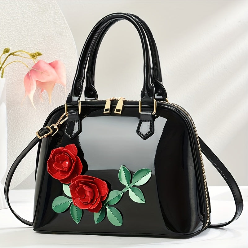 INCK KMCRK Women'S Elegant Black Tote Bag with Golden-Tone Hardware & Floral Embellishments - Large Capacity, Removable Shoulder Strap, Zipper Closure, Polyester Lining - Perfect for Spring/Summer, Casual & Formal Occasions,