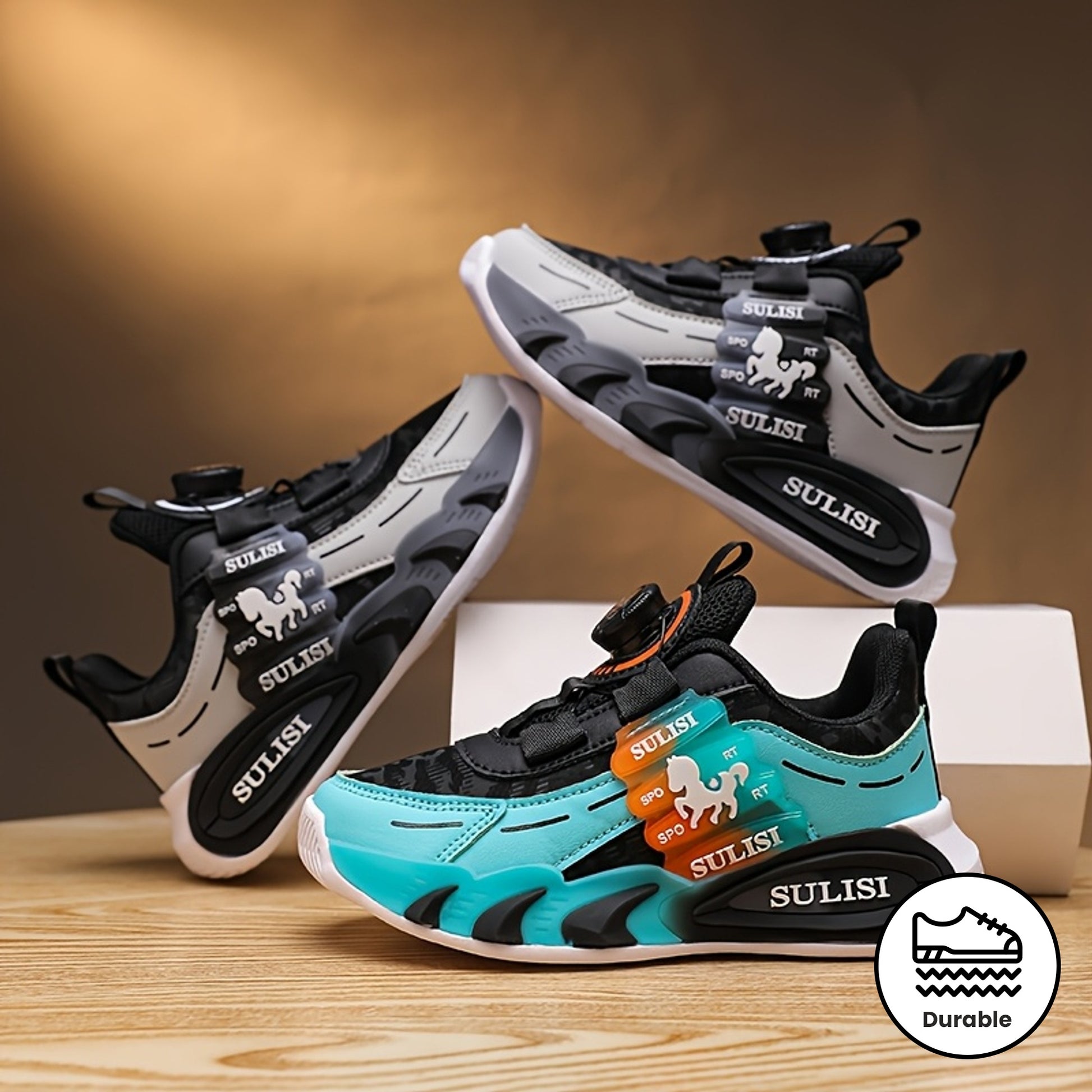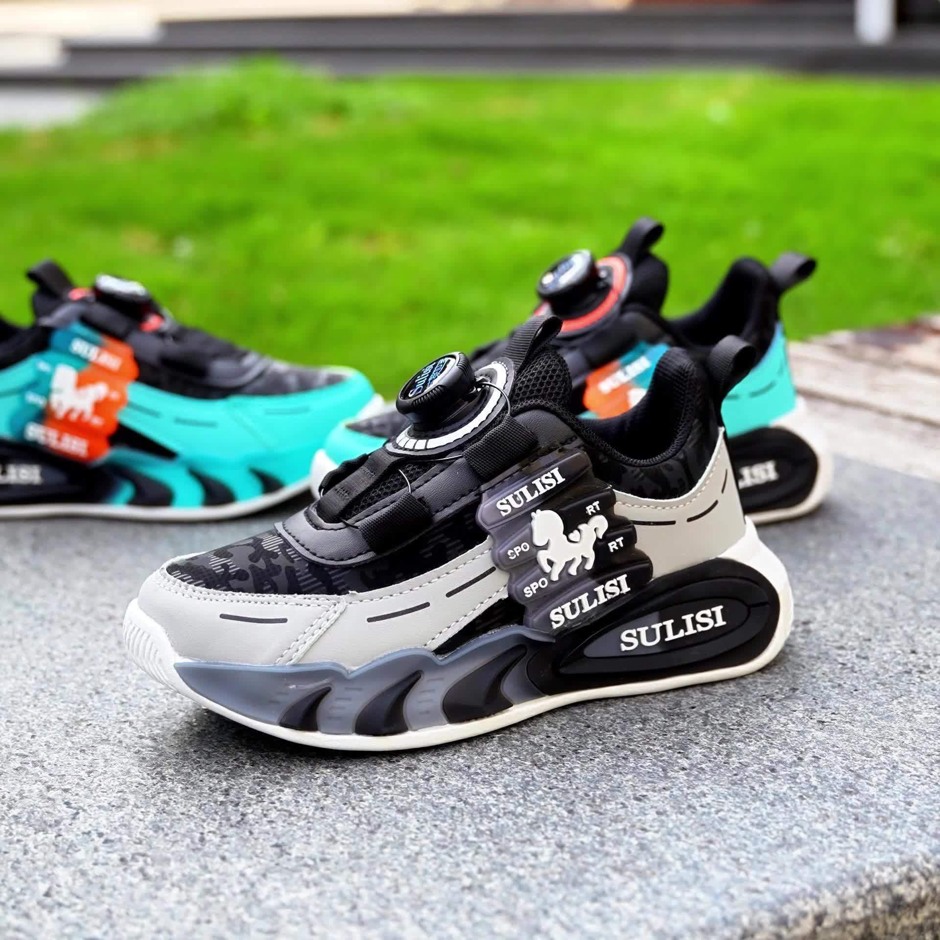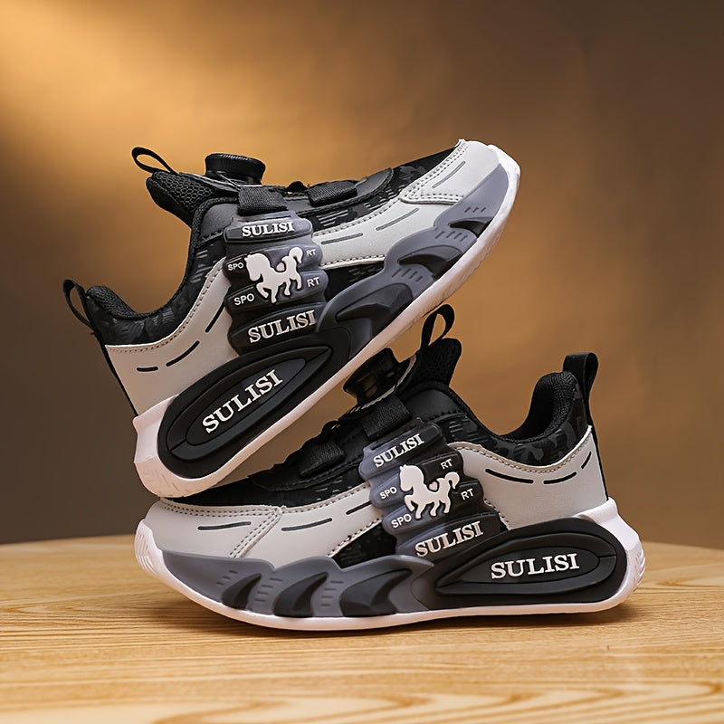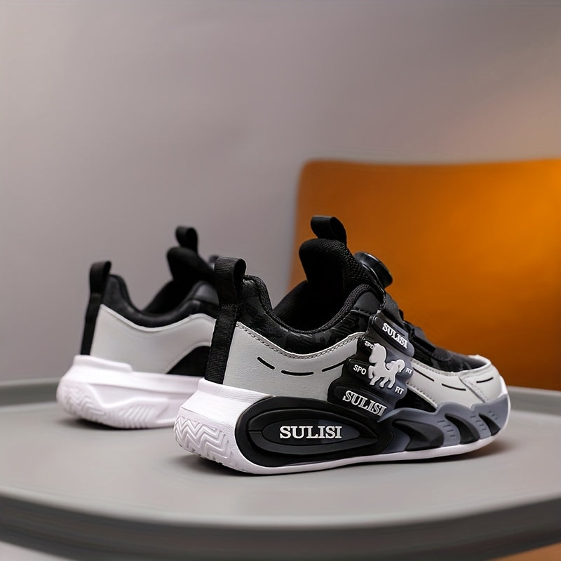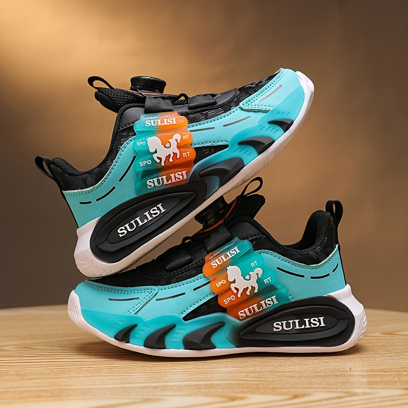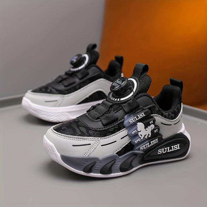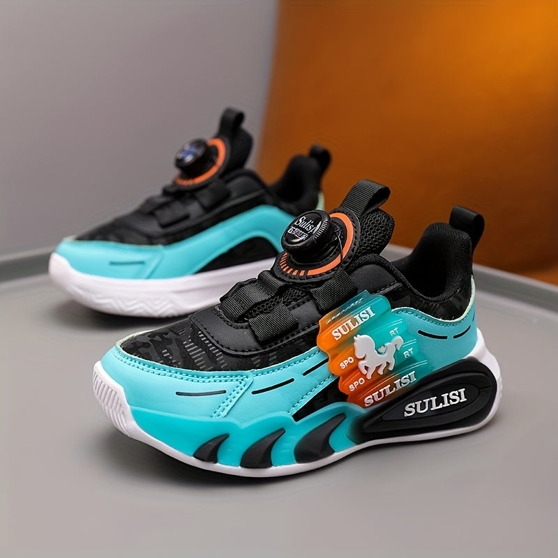 Kid's Trendy Colour Block Sneakers with Rotating Buckle, Comfy Non Slip Durable Shoes for Boy's & Girl's Outdoor Activities