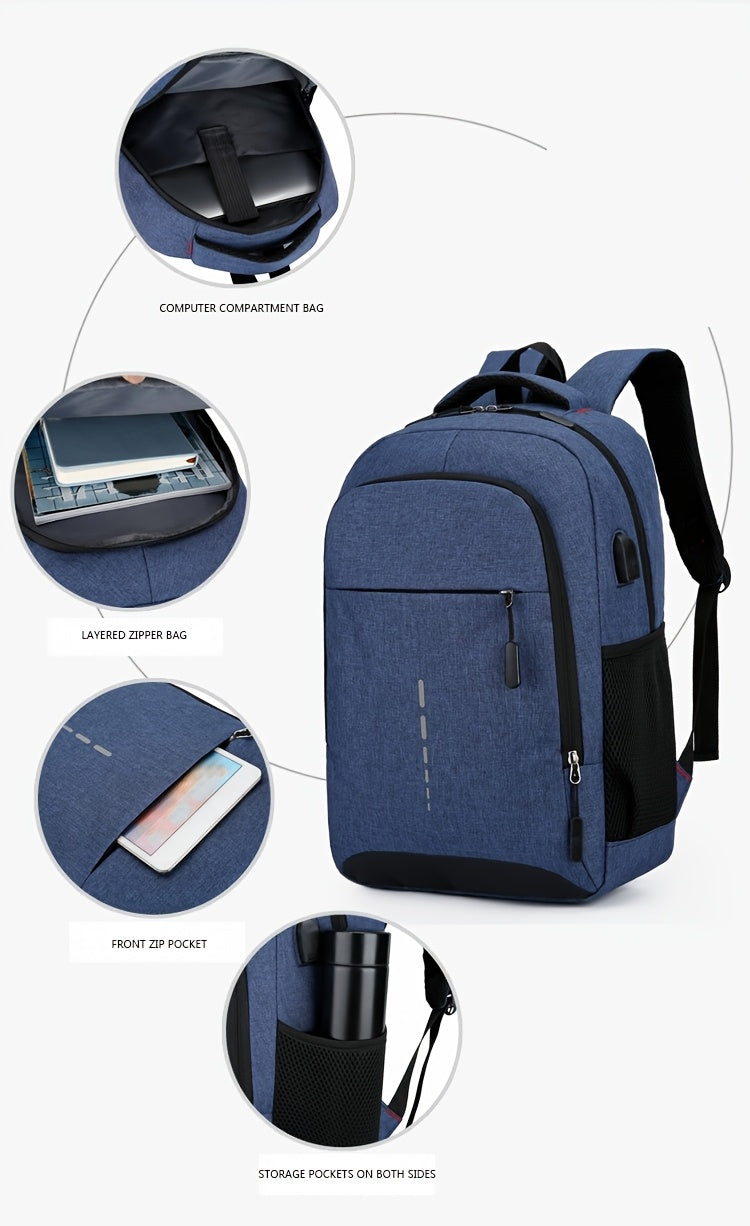 Large Capacity Reflective Oxford Cloth Backpack - Durable College & High School Student Bag with Adjustable Straps, Multiple Compartments, and Padded Laptop Area for Daily Commute & Business Use, Business Backpack | Sporty De