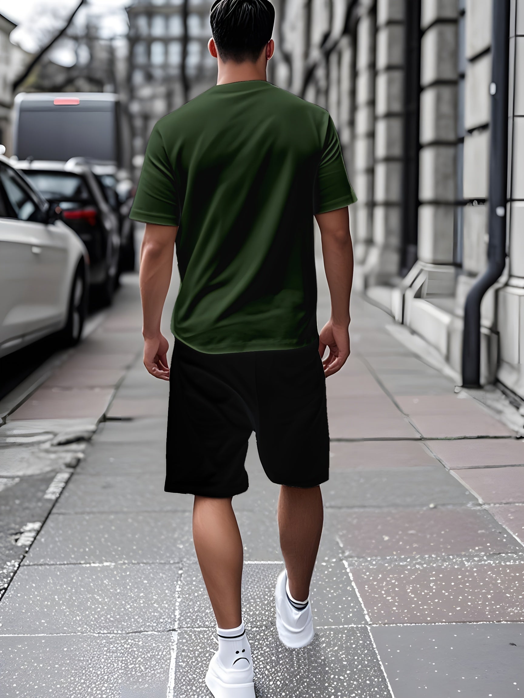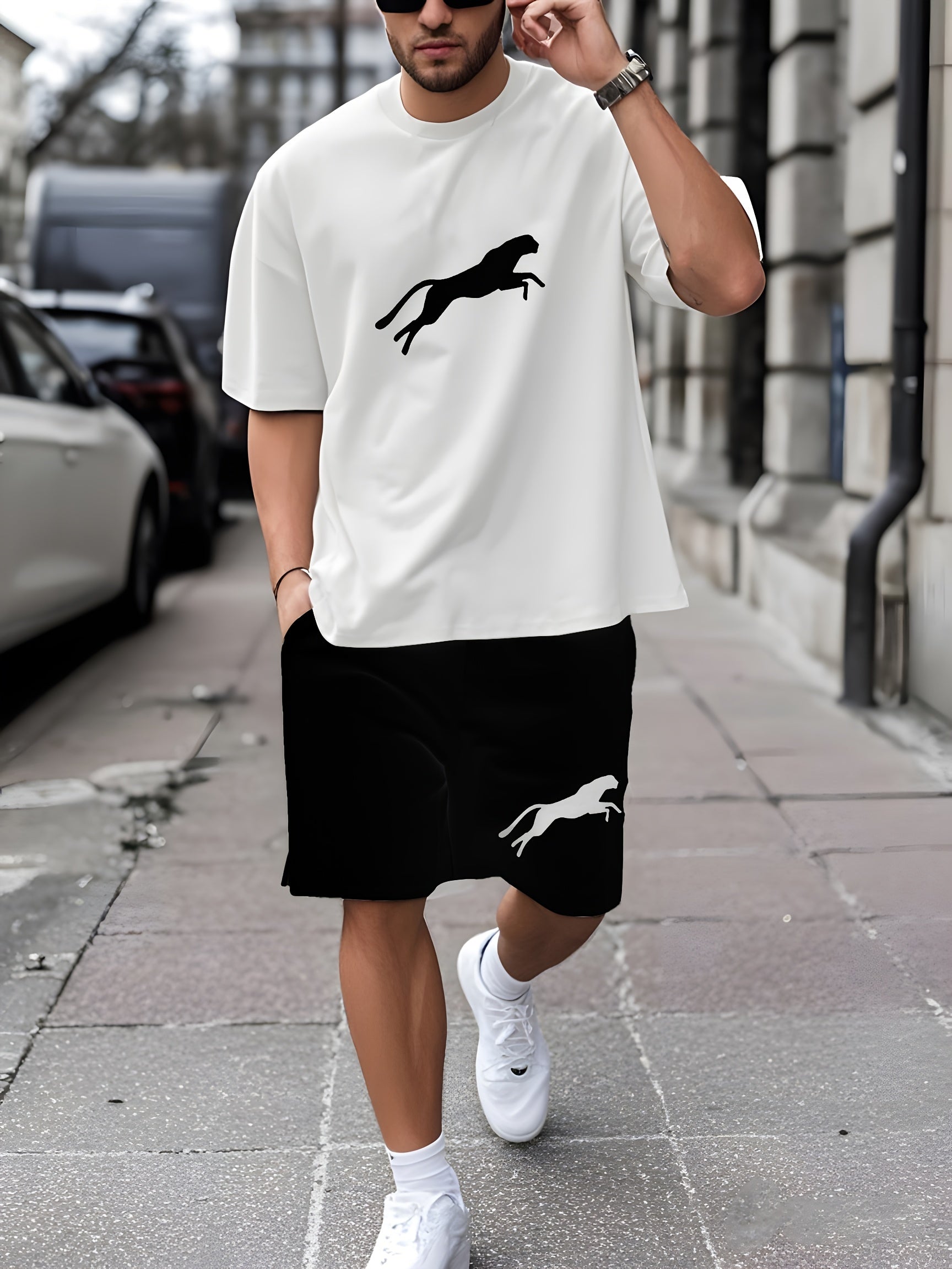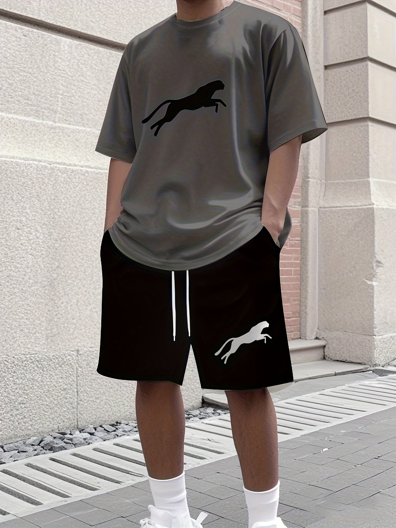 Leopard Print 3D Printed Men's Casual Sportswear Set - Breathable Polyester Knit Fabric, Crew Neck Short Sleeve T-Shirt and Shorts Combo, Regular Fit for All Seasons