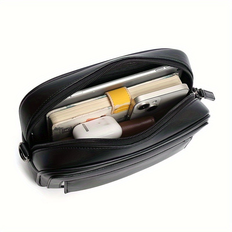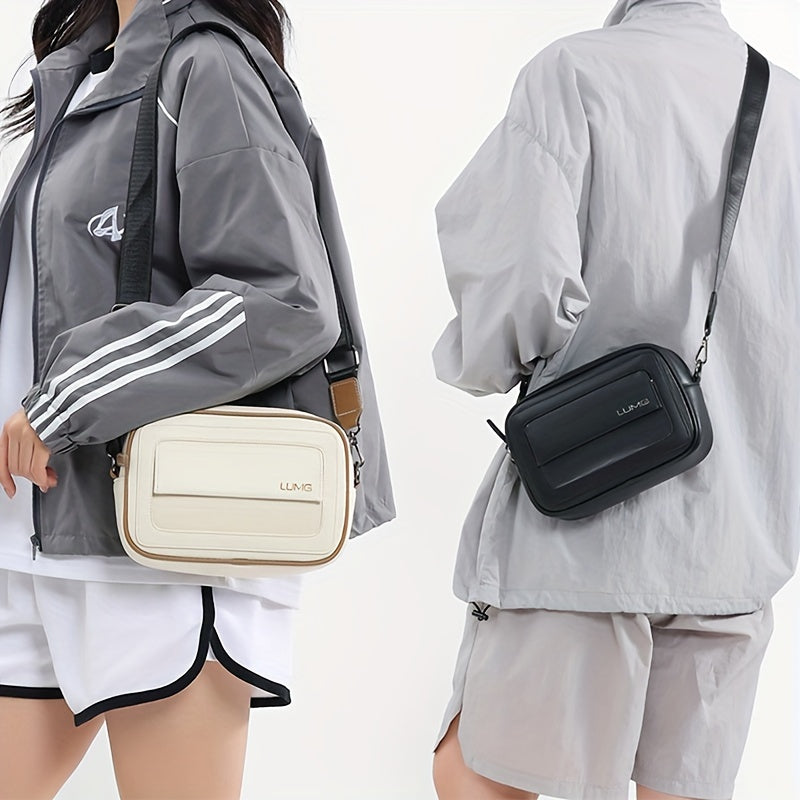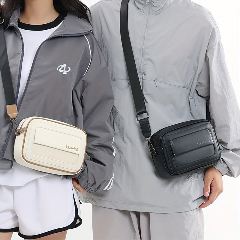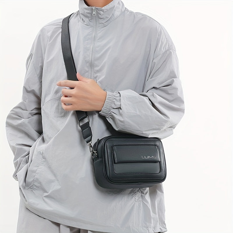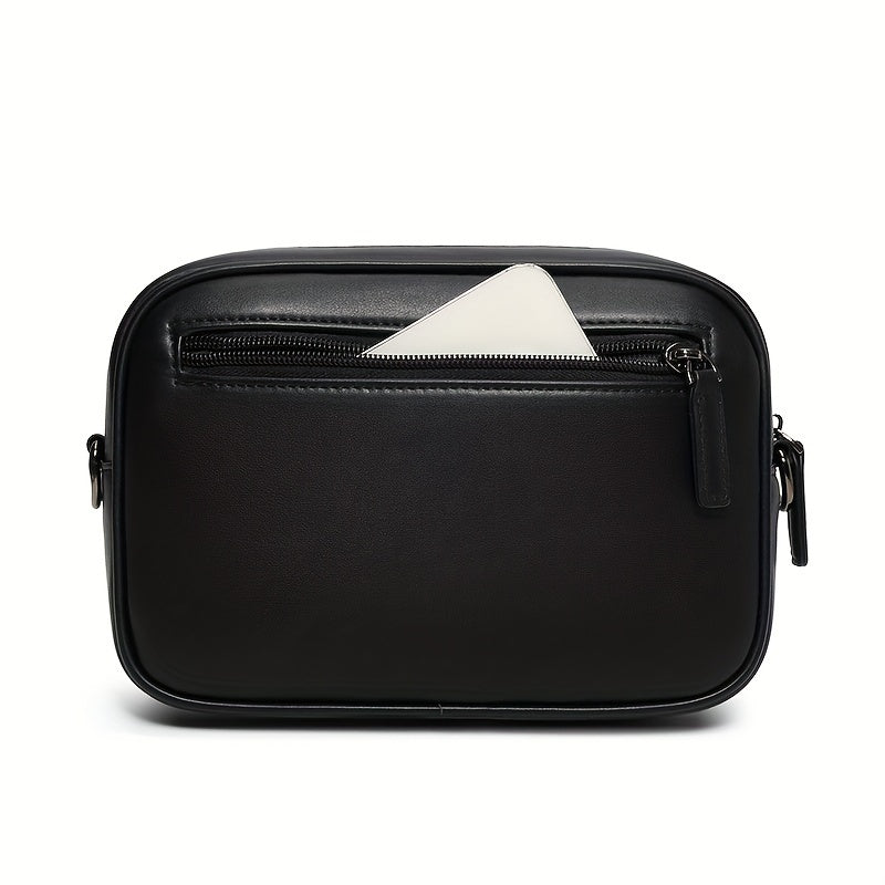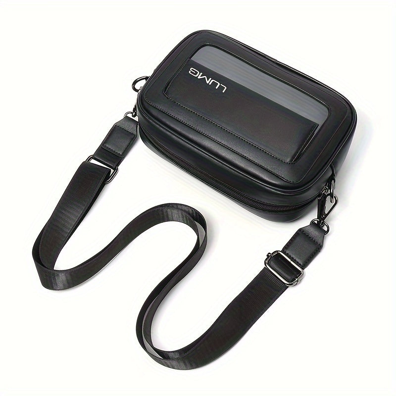 LUMG Fashion Faux Leather Crossbody Bag, Small Square Sling Shoulder Bag, Casual Messenger Chest Pack, Ideal for Valentine's Day Gift, Adult Birthday Present, Daily Commute - Adjustable Strap - Black
