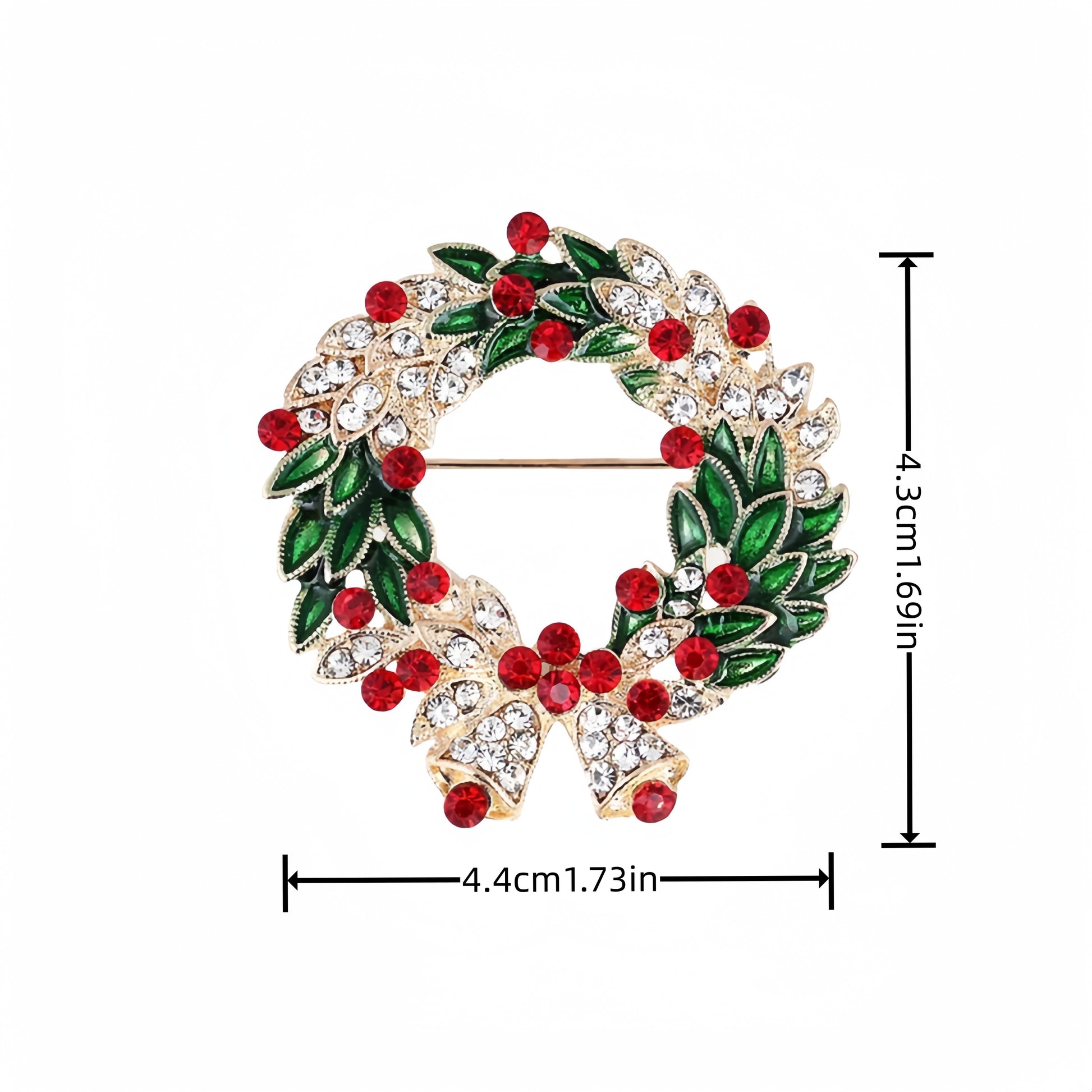 Luxury Christmas Bell Brooch with Rhinestone and Green Enamel Leaf, Alloy Golden-Plated, Fashionable Shiny Pin for Party and Banquet Accessories, Special Occasion Pin, Vintage Brooch, Elegant Design, Rhinestone Embellishment,