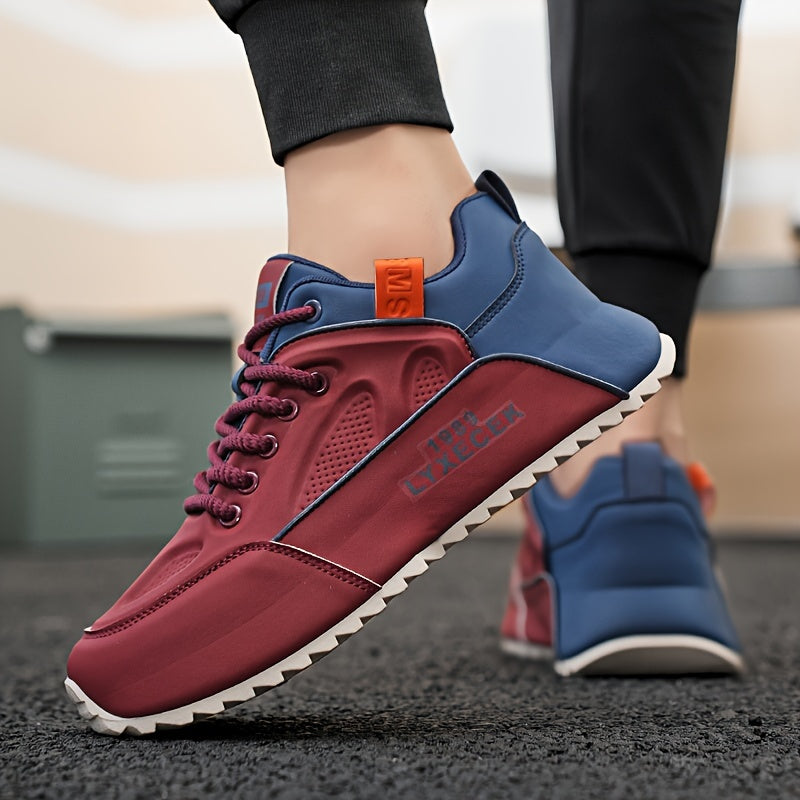 LYXCEK Men's Summer Casual Running Shoes - Trendy Chunky Sneakers with Height Boost, Black Beige, Lace-Up, Breathable Fabric Lining, Non-Slip PVC Sole, Fit