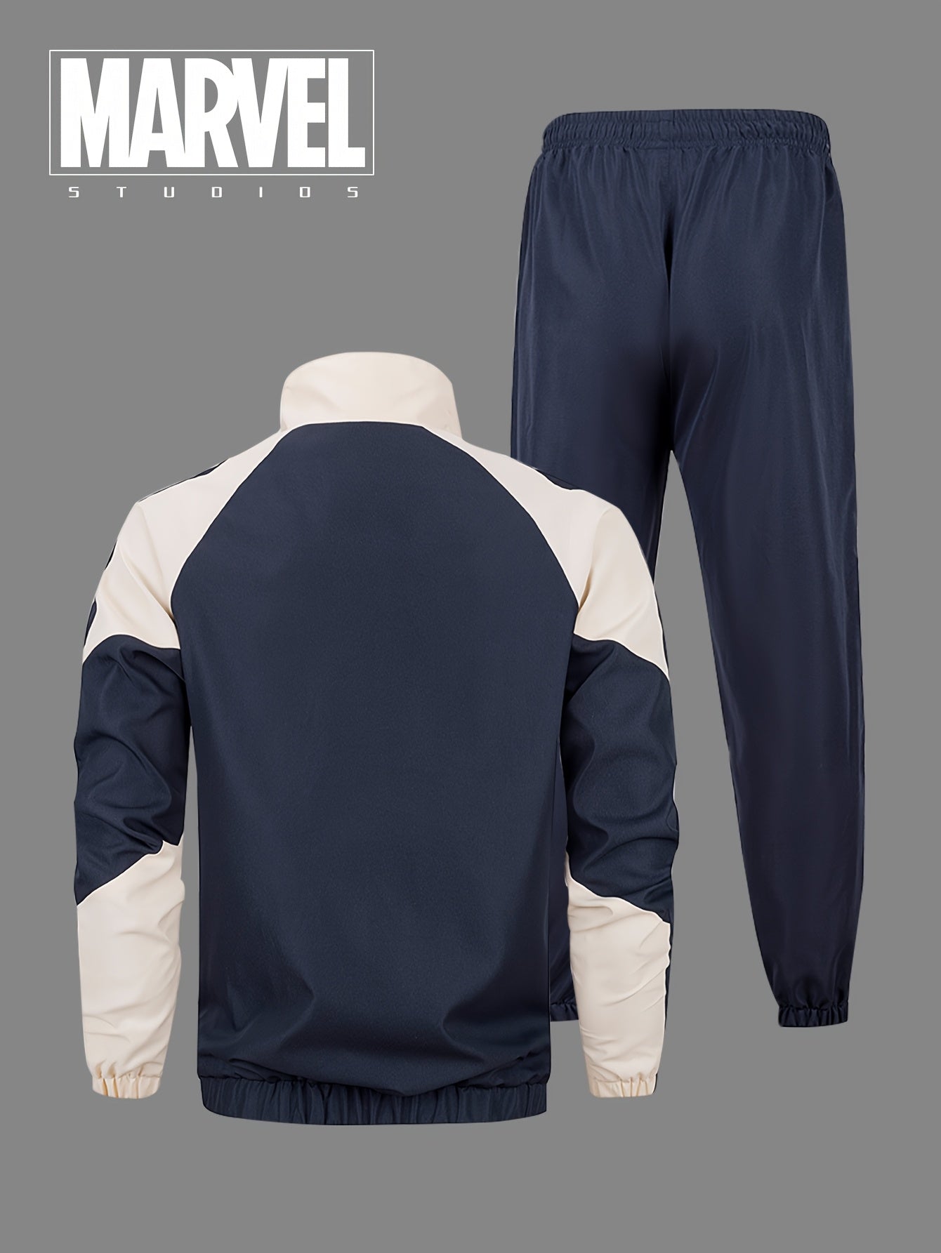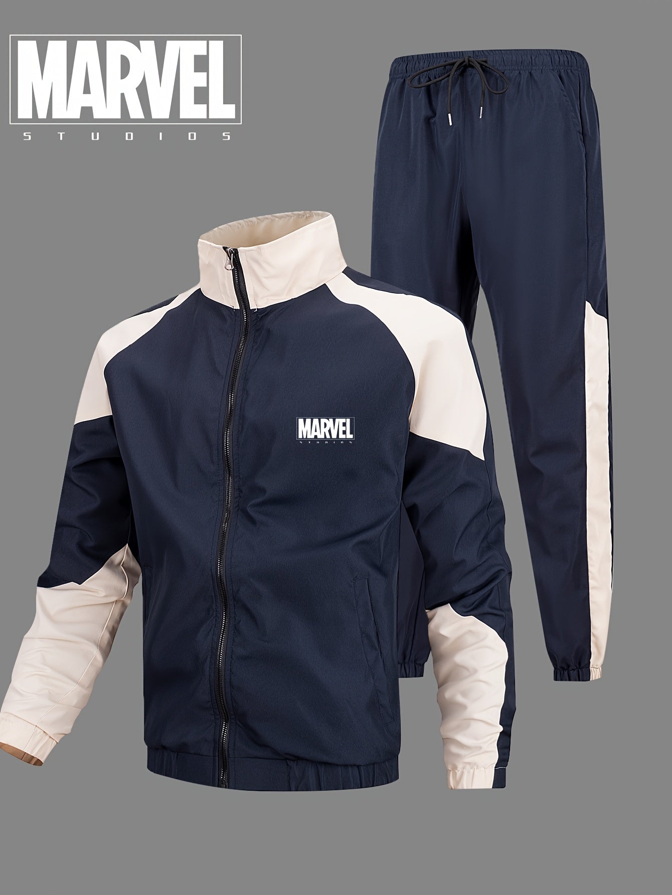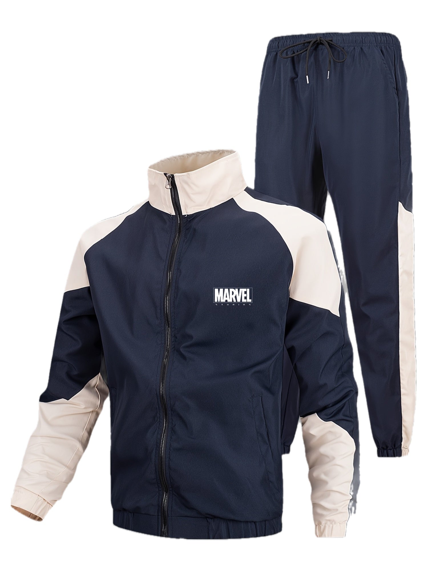Marvel Men'S Outdoor Sports Set, Full Set with Long Sleeve Jacket and Elastic Waist Pants, Marvel Letter Print, Basic Training Suit, Breathable Fabric, Suitable for Sports, Fitness, Casual Wear