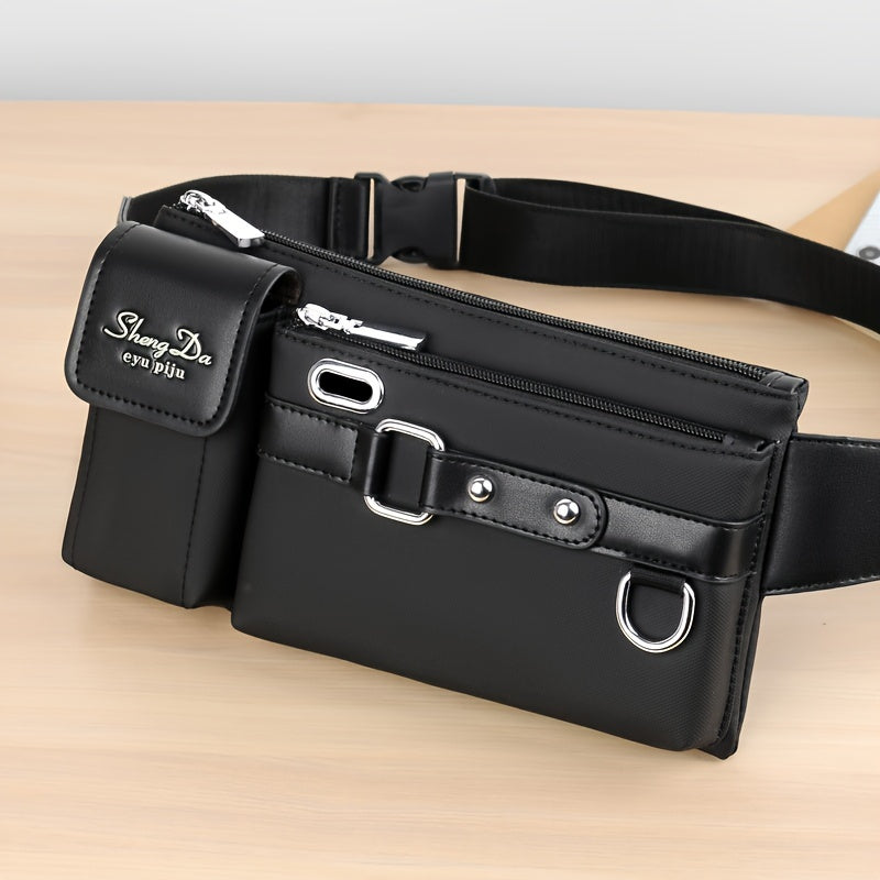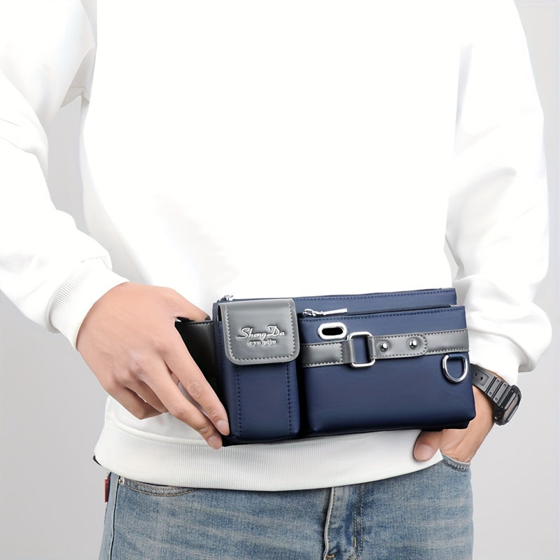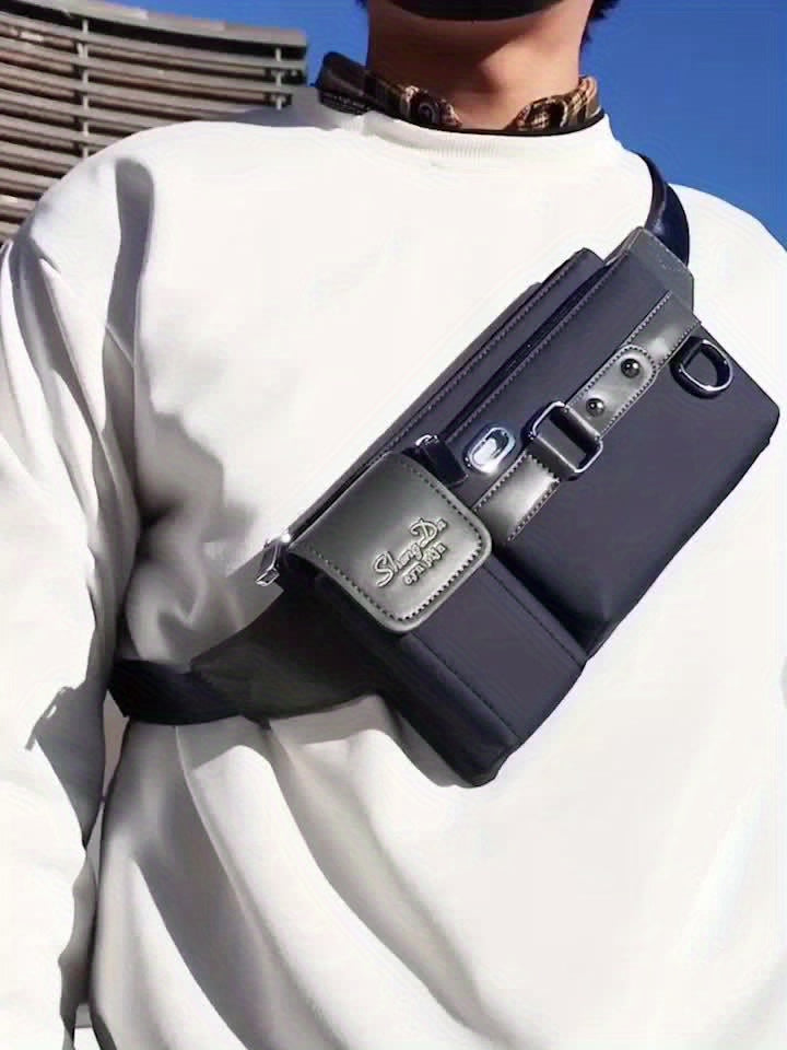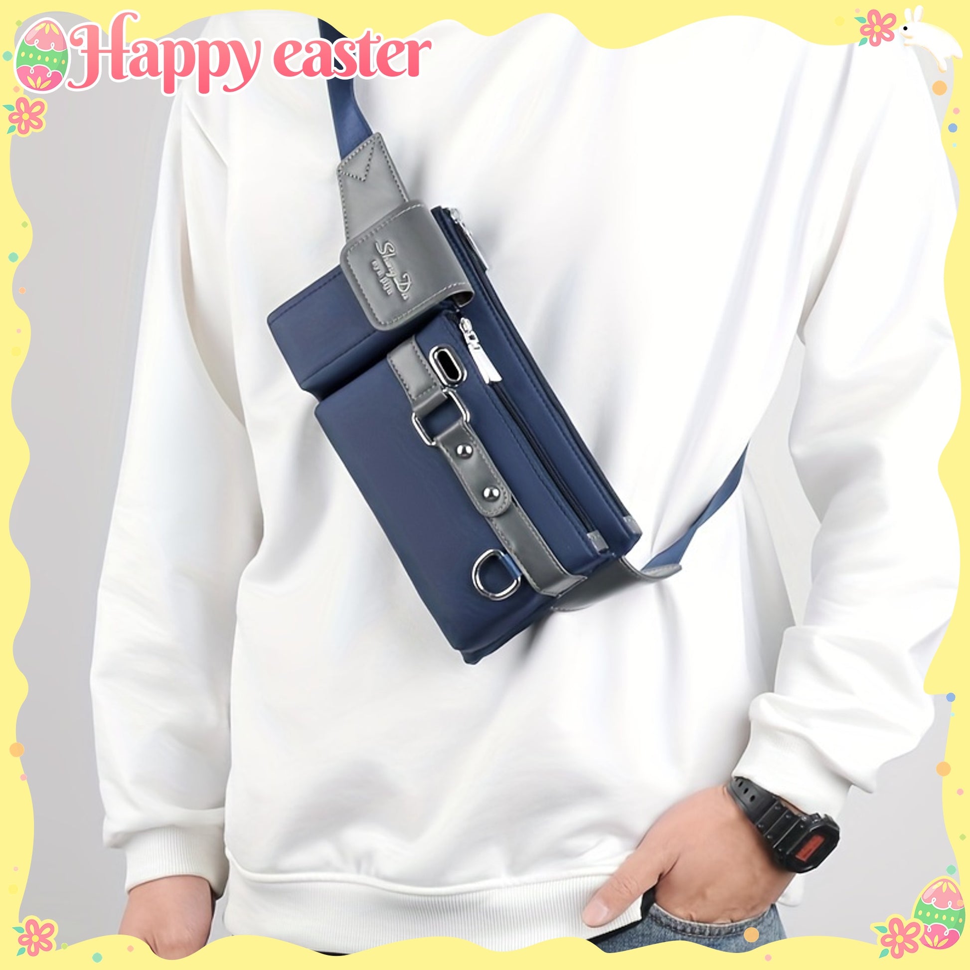 Men‘S Casual Oxford Chest Bag – Multi-Function Phone Bag with Zip Closure, Daily Commute Hollow Design Shoulder Bag with Adjustable 100Cm Strap (No Print)