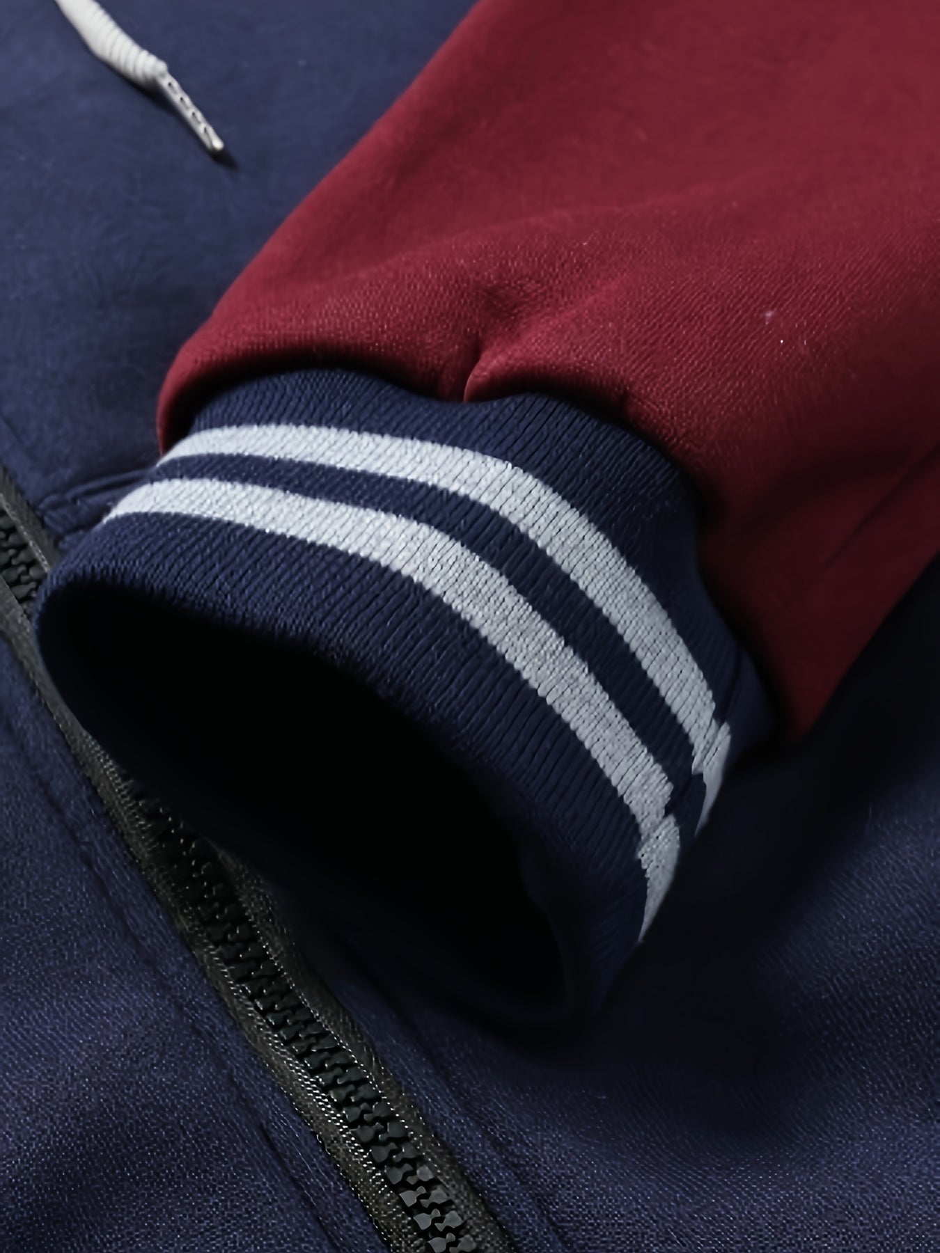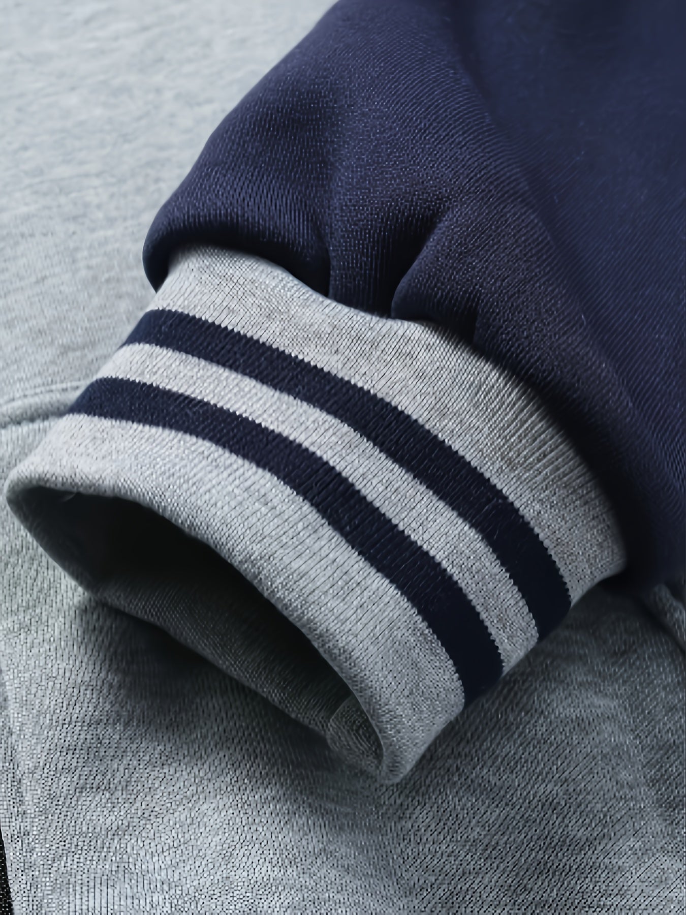 Men's 2025 Autumn East New Zipper Hoodie - Black & Grey Color-Block Contrast with White Piping, Full-Zip Closure, Chest Pocket & Adjustable Hood, Casual Streetwear for Teen Boys & Young Men, Durable Everyday Outerwear